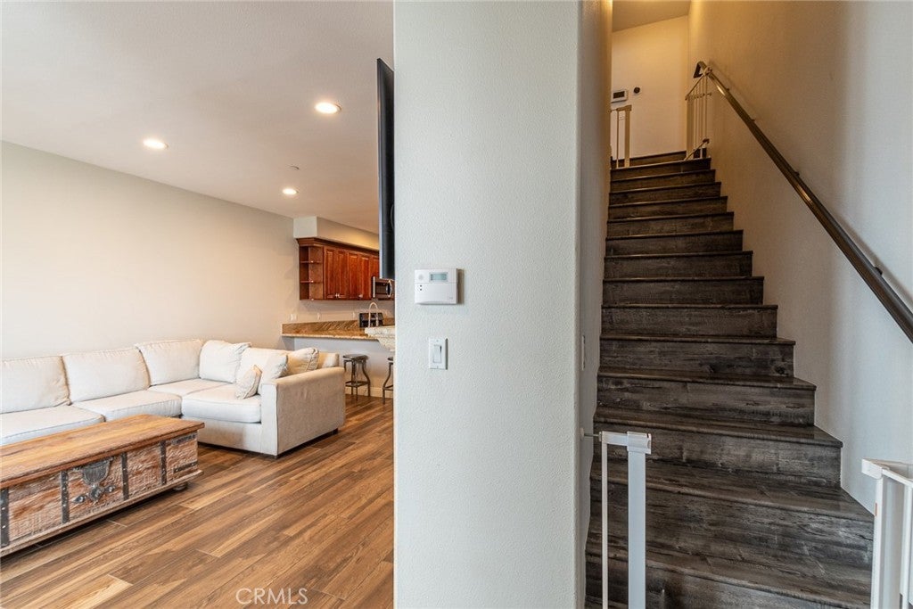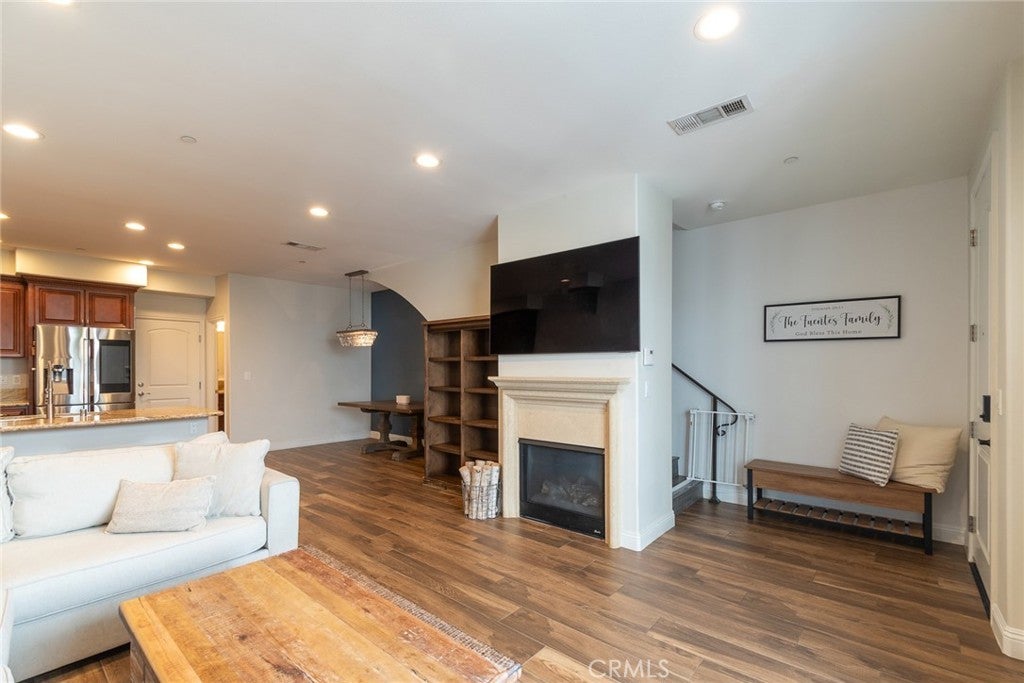 BACK ON THE MARKET!! Buyer could not perform. Stunning Mediterranean Condo - 3 bedrooms , 3 bathrooms (1 downstairs), 1,473 sq. ft. in a gated community. Built in 2015, this home boasts upgraded flooring, a gourmet kitchen with stainless steel appliances, and a cozy fireplace in living room. STOVE, REFRIGERATOR, WASHER, DRYER AND BEVERAGE COLLER INCLUDED with no warranties. Two balconies in upstairs bedrooms. The primary suite features an enclosed balcony with great view of the pool and dual walk-in closets. Built in cabinets in laundry closet. SOLAR PANELS (Seller Owned) keeps electrical bills low. TANKLESS WATER HEATER and attached two-car garage. 11 miles to Downtown LA. Prime location near parks, shopping, and freeways. This gem offers luxury and convenience. It’s perfect for families or single professionals. Great price for a great home.! See 3D tour.