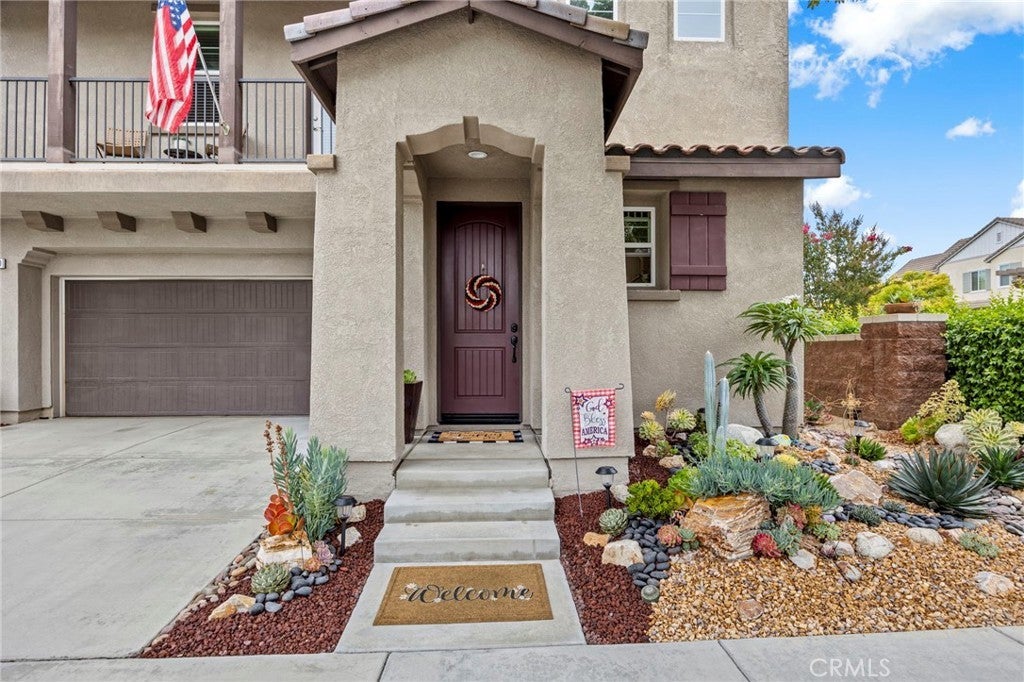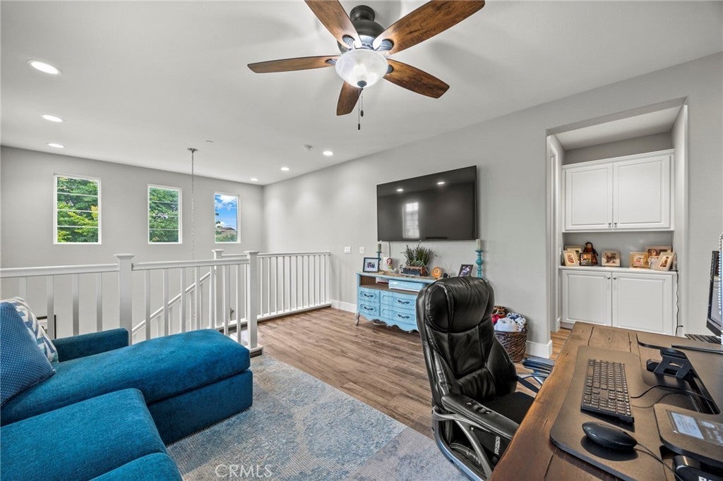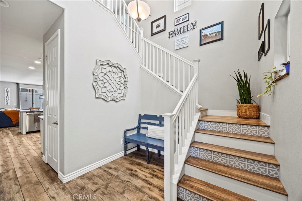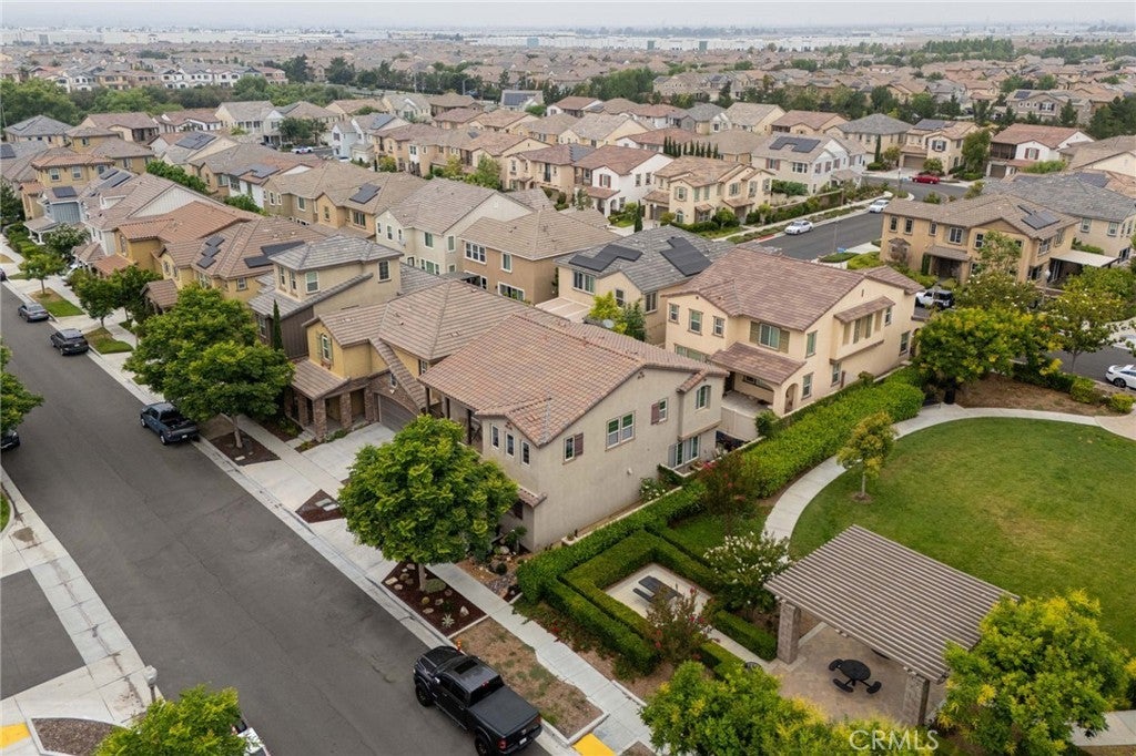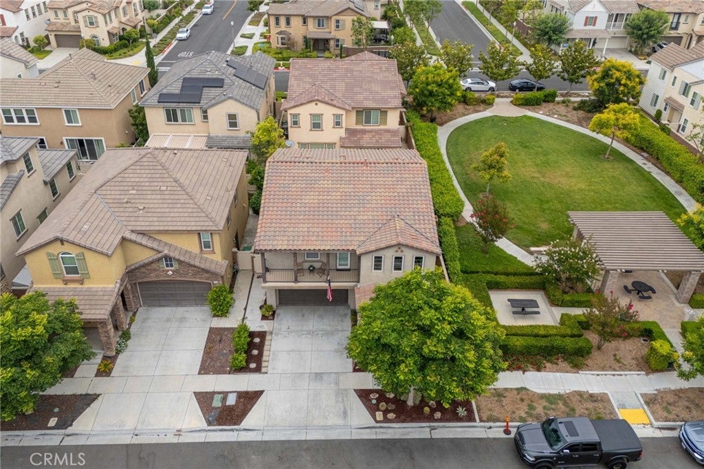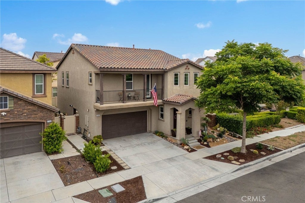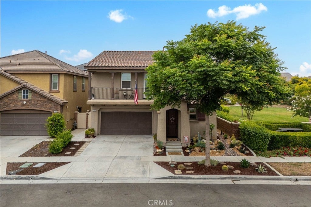 Welcome to this stunning 5 bedroom, 3 bath home nestled in the highly desirable Chino Preserve community. This light-filled, open-plan residence features vaulted ceilings and wood plank tile flooring throughout the main level. The gourmet kitchen is a chef's delight, boasting sleek granite countertops, stainless steel appliances, a sprawling bar style countertop and a walk-in pantry. A custom wood-paneled accent wall with built-in shelving flanks the cozy fireplace in living room, creating an elegant focal point. A versatile bedroom downstairs is perfect for guests, a home office or multi-generational living, while the upstairs laundry room adds daily convenience. Retreat to the generous master suite, complete with a private balcony, scenic views and a massive walk-in closet with custom shelving. Situated next door to a tranquil greenbelt park and just minutes from new schools and a recently developed shopping center. As part of the Preserve community, you'll also have access to resort style amenities including pools, tennis courts, parks, clubhouse and much more.