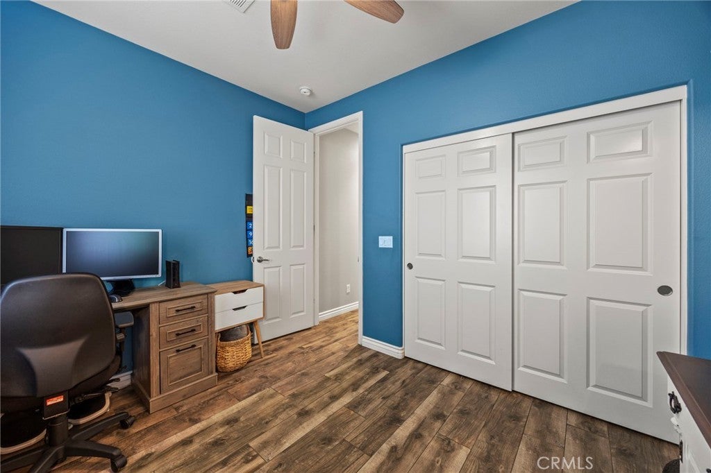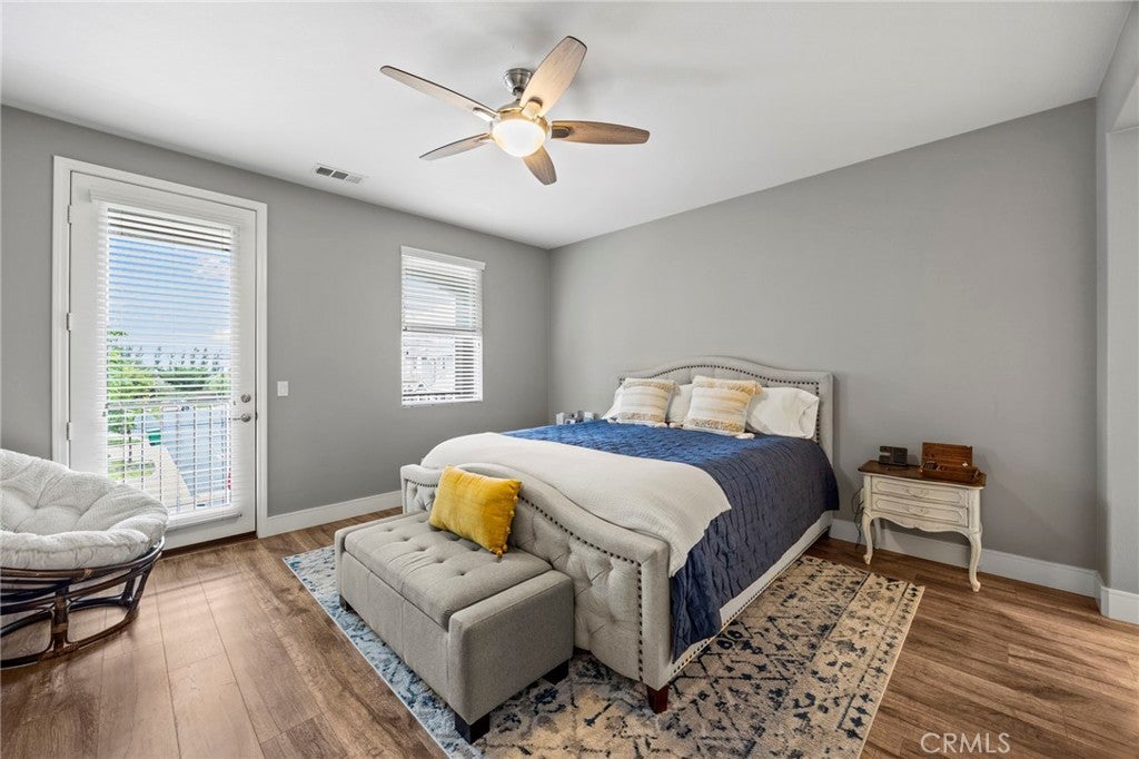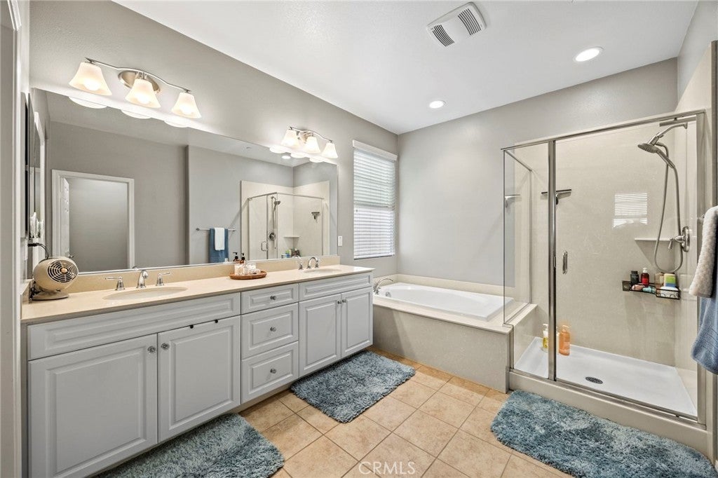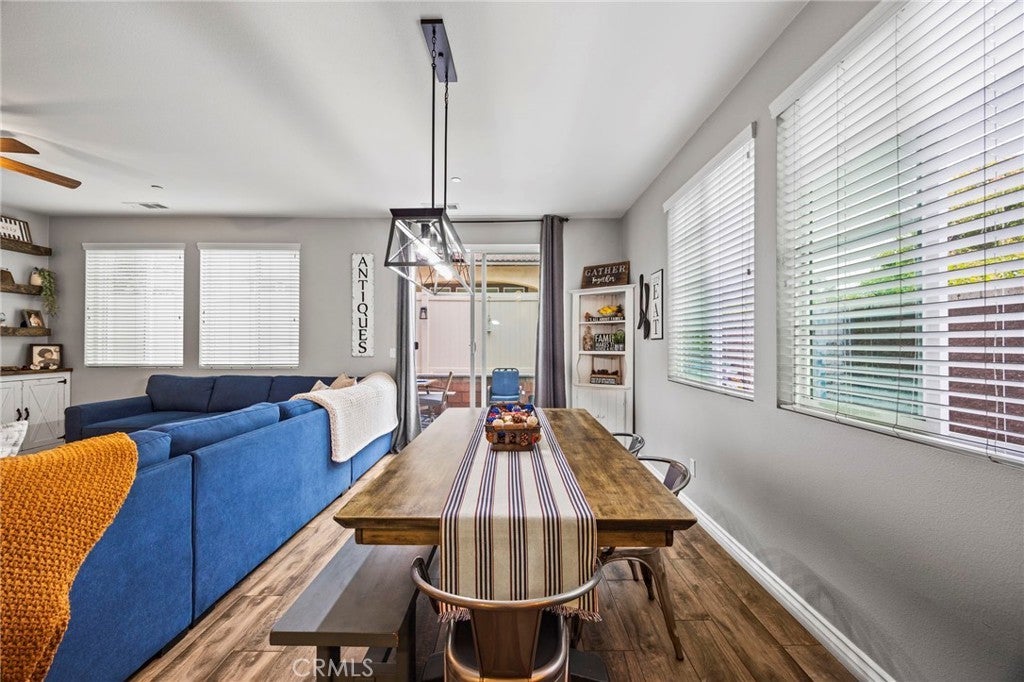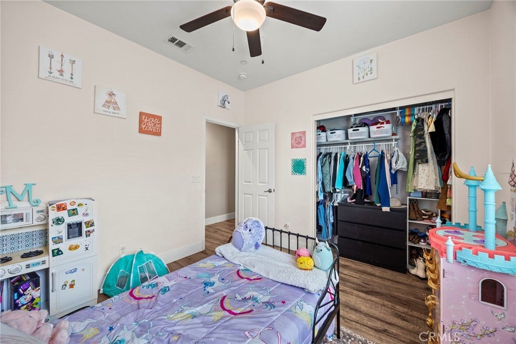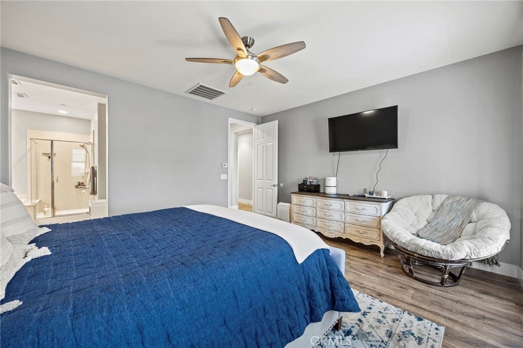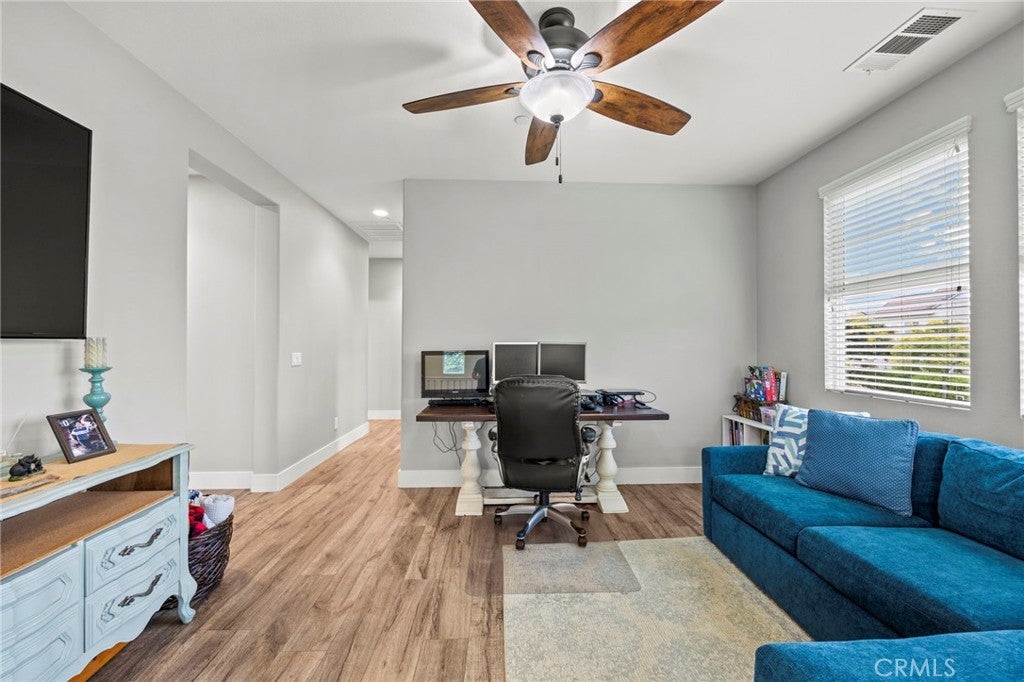 Welcome to this stunning 5 bedroom, 3 bath home nestled in the highly desirable Chino Preserve community. This light-filled, open-plan residence features vaulted ceilings and wood plank tile flooring throughout the main level. The gourmet kitchen is a chef's delight, boasting sleek granite countertops, stainless steel appliances, a sprawling bar style countertop and a walk-in pantry. A custom wood-paneled accent wall with built-in shelving flanks the cozy fireplace in living room, creating an elegant focal point. A versatile bedroom downstairs is perfect for guests, a home office or multi-generational living, while the upstairs laundry room adds daily convenience. Retreat to the generous master suite, complete with a private balcony, scenic views and a massive walk-in closet with custom shelving. Situated next door to a tranquil greenbelt park and just minutes from new schools and a recently developed shopping center. As part of the Preserve community, you'll also have access to resort style amenities including pools, tennis courts, parks, clubhouse and much more.