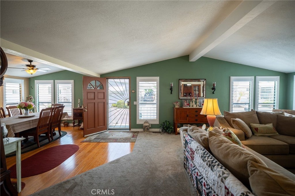 Nothing screams "Pride of Ownership" like this beautiful home in the highly desirable 55+ park that is Casitas La Verne! This gorgeous triple wide home would be a delight to anyone. Walk up a few stairs to the front patio, inside is a huge living space containing a dinning room and living room with space galore. Just on the other side of this formal dining you have a nice size kitchen. Laundry is just on the other side. Then a door to your outside oasis. Clean drive way and a storage shed next to the inviting backyard. One nice place to relax. Now on the other side of living room you see a connecting french door making your way to the first bedroom. Once to come out of the hall you step in a large bathroom. Next door to that is the large master bedroom and the master bathroom is amazing as well. Across the hall is another bedroom. High quality shutters on windows throughout the home provide privacy while drywall and insulation provide quality and comfort. Included in this well kept park is a swimming pool, saunas, and a big gathering room with connecting billiard room. This is a must see for all those looking for a nice home in a nice park.