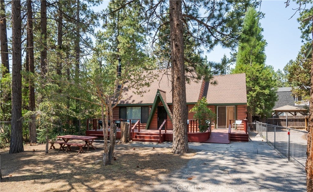 Every so often, a true classic cabin becomes available in Big Bear, and when they do, they’re quickly sought after. Fall in love with this charming mountain retreat, situated on a fully fenced lot. Start your day with a cup of coffee on the spacious new deck, surrounded by lush trees, offering a serene and peaceful atmosphere. This beautiful Maltby cabin is located in a quiet, highly desirable neighborhood of Big Bear. Upon entering, you’re greeted by a cozy living room featuring the original Gold Mountain fireplace, providing warmth and comfort during the winter months. The cabin offers the perfect blend of charm and comfort with 2 bedrooms and 2 bathrooms. Preserving its timeless character, the home remains in its original condition, with stunning wood paneling in the bedrooms. Featuring: a flat 100% usable lot, room for 2 to 3 cars or a Boat or a combo of both, exterior paint recently weather proofed and Fully furnished! The backyard is a true retreat, offering endless possibilities for relaxation and enjoyment. Whether you're hosting summer barbecues, lounging under the stars, or simply soaking in the peaceful mountain atmosphere, this space is perfect for creating your own personal oasis. This is a rare opportunity to own a piece of Big Bear’s history—don’t miss out on making this iconic cabin your own!
