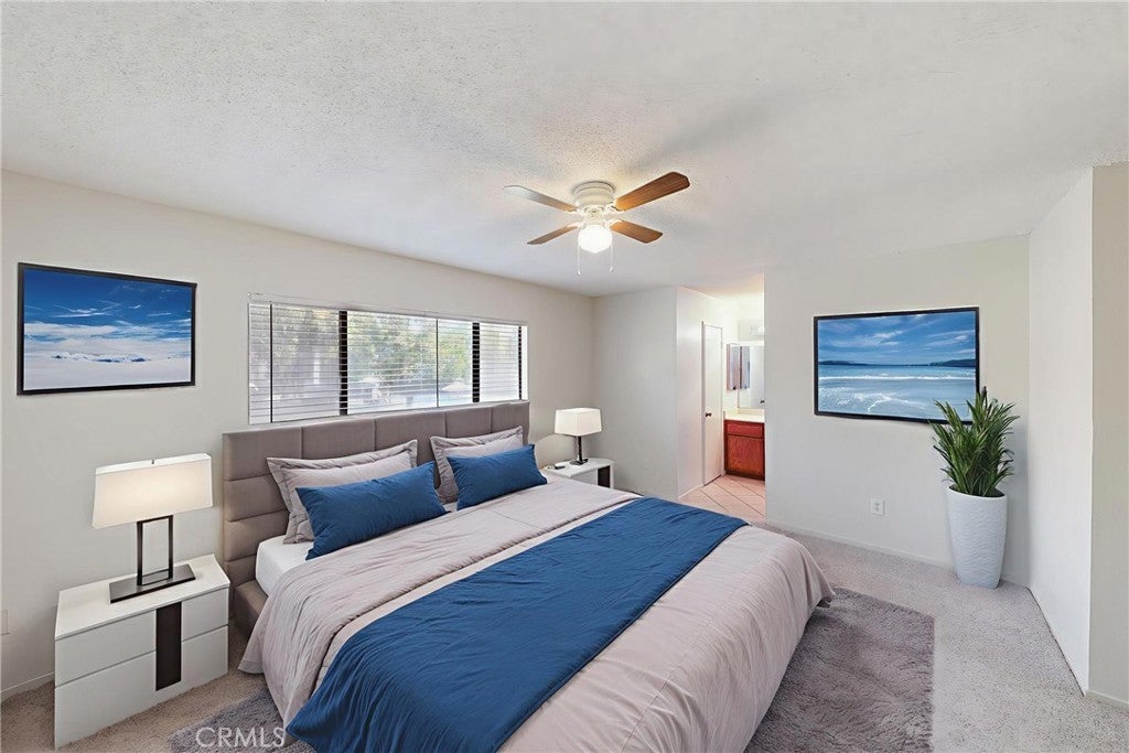 Welcome home to this beautiful, move-in ready townhome/condo that has lovely mountain & pool view. Desirable Park Hacienda community in Upland. FHA & VA buyers are welcomed. This two-story townhome has approximately 1,464 square feet of living space, 3 bedrooms & 2.5 bathrooms with the half bath downstairs for convenience. This lovely townhome is ready for your personal touch. Features: fenced-in nice size front patio area with a gate leads you to the front door, bright, light & airy floor plan with tile entryway, brand new carpeting throughout, fresh interior paint, new blinds, New Stove,ceiling fans & more! Lovely formal living room with a fireplace. Cozy kitchen with new refrigerator & new stove. Kitchen opens to large nook/dining area. A generous primary suite features walk-in closet & primary bathroom. Attached, finished 2 car garage with direct access & metal garage door. Tile roof. Association Includes: sparkling pool, spa, tennis/pickle ball court, club house, water, trash, pet friendly, ample guest parking & maintenance of community greenbelts grounds with some picnic area & lovely walkways. Upland Unified School District. This property is conveniently located close to parks, schools, shopping centers, grocery stores, Colonies Crossroad center that also offers more shopping & restaurants. Plus commuter friendly with 210 & 10 freeway near-by PLUS added bonus of the Metro Link station in the downtown Upland Village area. Hurry, this townhome will not last!