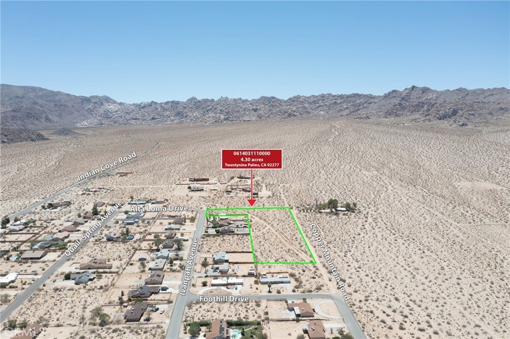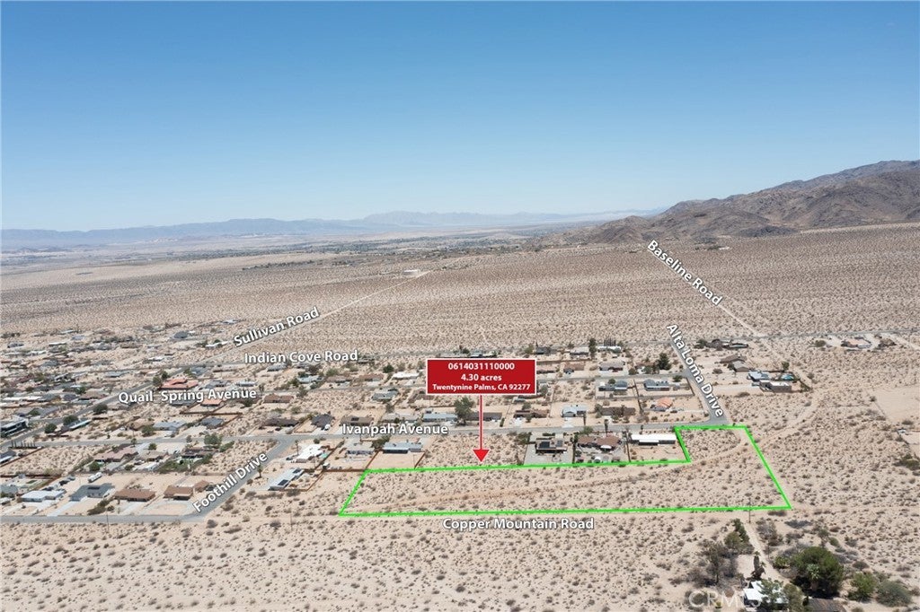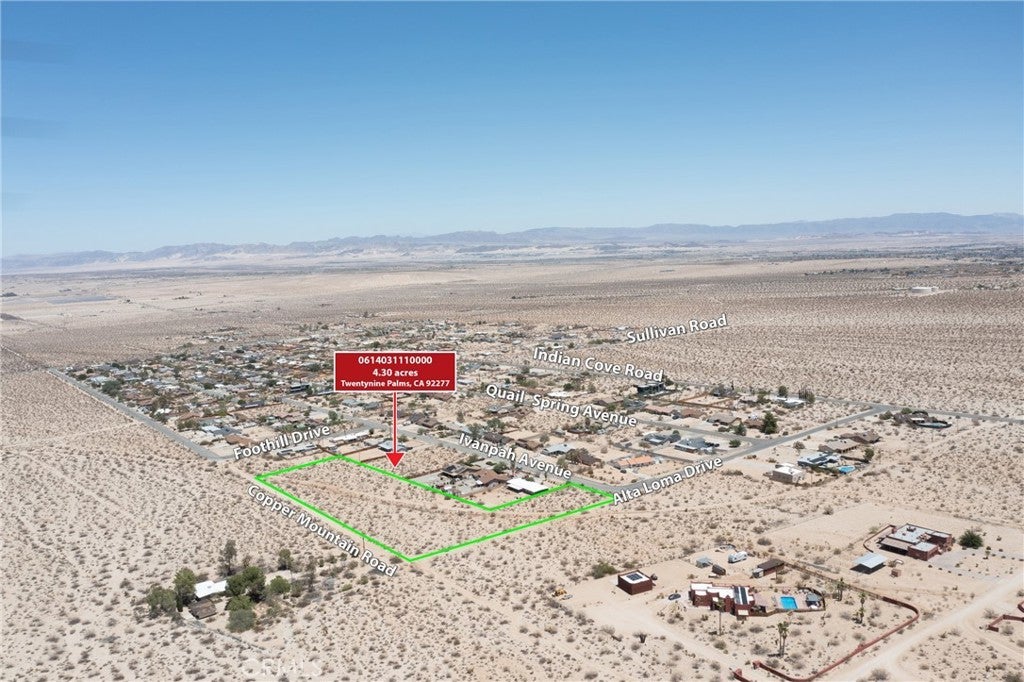 DON'T MISS THIS GREAT OPPORTUNITY ***PRICE REDUCTION*** ***PRICE REDUCTION*** ***PRICE REDUCTION*** BACK ON THE MARKET DUE TO BUYER ISSUES. We're ready to open escrow today! Vacant land in Twentynine Palms 187,308 sqft lot. 4.3 acers. The land is level ready to build or circulate a lot and leave it as an investment. The buyer is to investigate all matters regarding zoning, permits etc. Neighbors have a nice large house next door with water service, valued at $380,000 3 bed 2 bath 1500 sqft. To get there, take Freeway 62 passing these cities: Morongo Valley, Palms Wells, Yucca Valley, Joshua Tree, Panorama Heights and you'll arrive at Twenty-Nine Palms. Good luck, if you like it, don't miss this opportunity. The seller is very motivated.