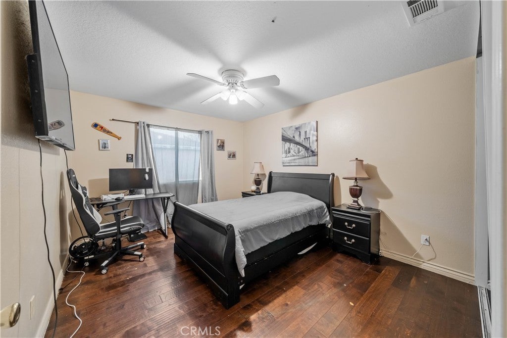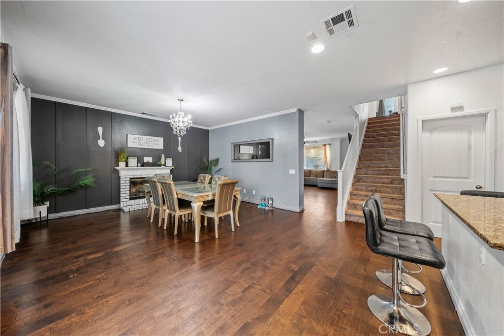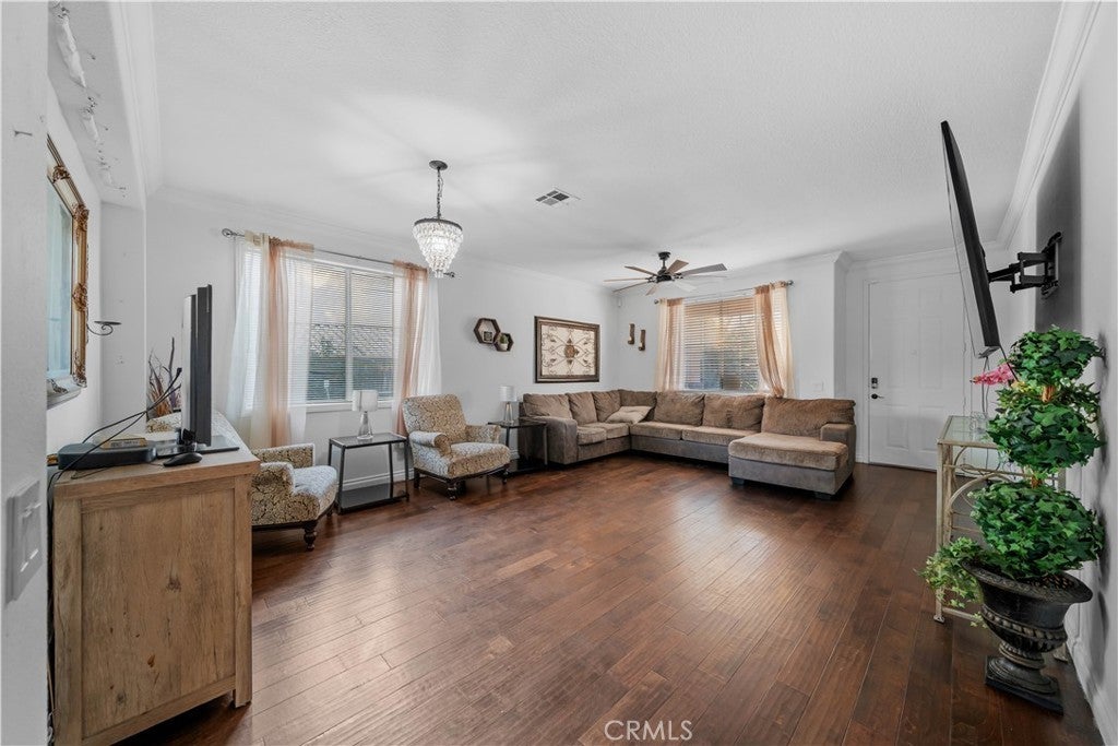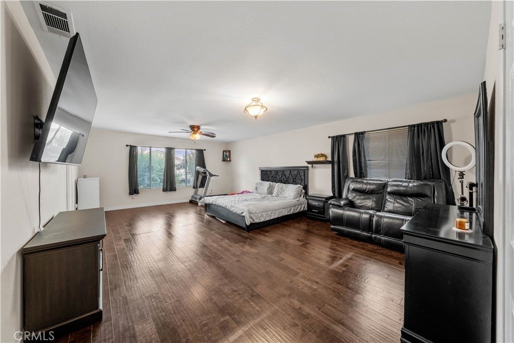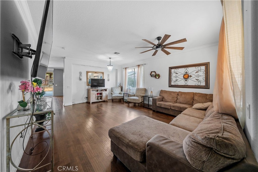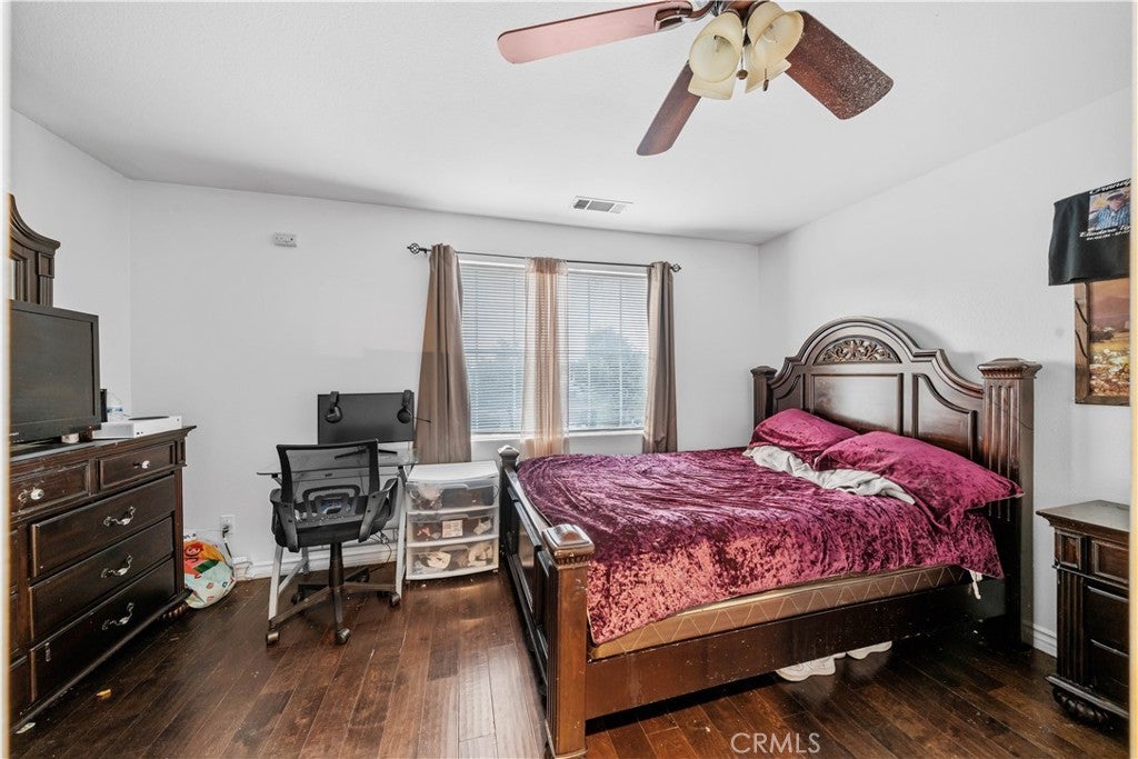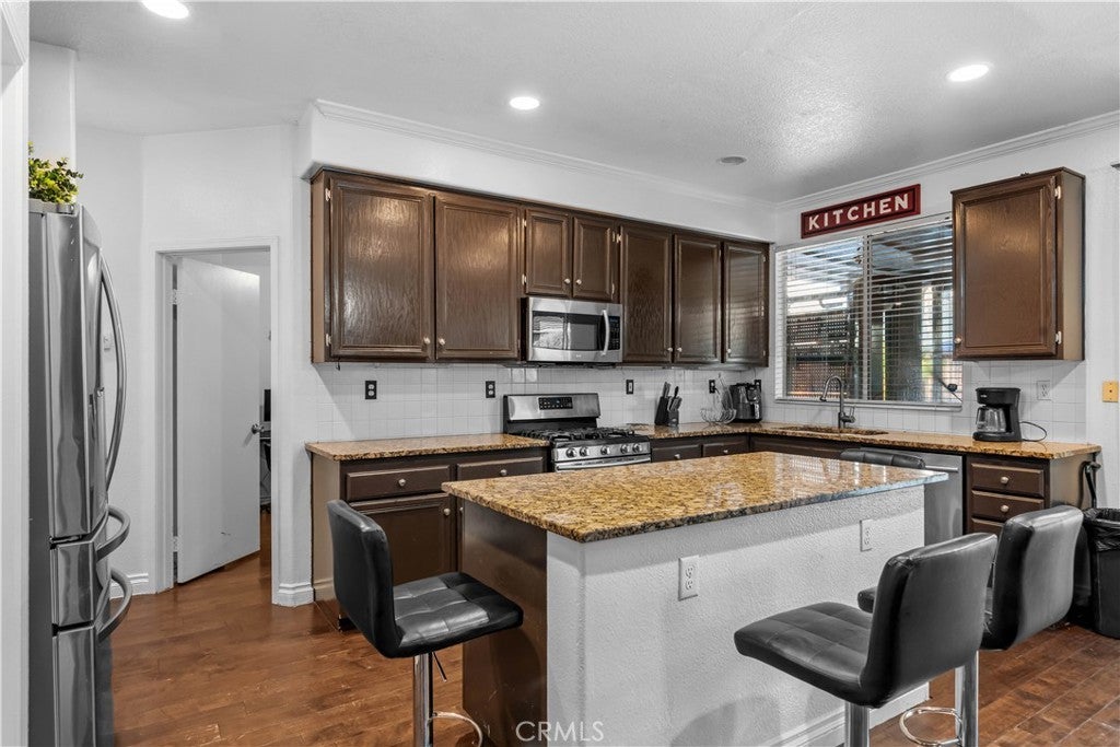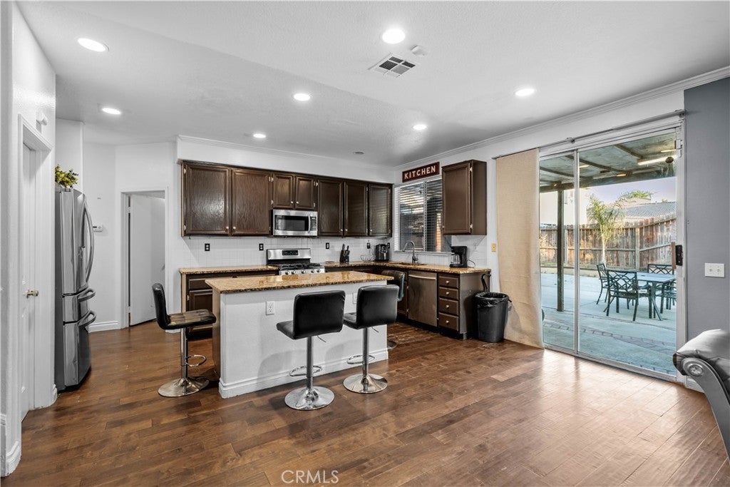 Welcome to 3807 Seattle Street in Hemet, a beautifully updated and spacious two-story home offering the perfect blend of comfort, functionality, and style. Featuring five bedrooms and three full bathrooms, this home has been thoughtfully enhanced with the addition of a 6th bedroom, providing extra space for a growing family, guests, or a home office. Fresh interior paint gives the home a clean and modern feel, creating a bright and inviting atmosphere from the moment you step inside. The main level boasts a warm and welcoming layout, highlighted by Pergo-style wood flooring that flows seamlessly throughout the living areas. The expansive kitchen is a true centerpiece, complete with granite countertops, a convenient center island with cooktop and breakfast bar, and ample cabinetry for storage. Perfect for gatherings, the open-concept design allows the kitchen to flow into the dining and living spaces, making entertaining both easy and enjoyable. A downstairs bedroom and full bathroom offer flexibility for multigenerational living or visiting guests. Situated across from a peaceful greenbelt, the property enjoys a sense of openness and privacy. The backyard features low-maintenance landscaping and a covered patio with brick accents, perfect for outdoor dining or quiet evenings. Additional highlights include a three-car garage, two AC units, and Tesla chargers. Located in a desirable neighborhood close to schools, shopping, and commuter routes, this home is move-in ready and offers the space, updates, and location today’s buyers are looking for. Don't miss the opportunity to make this home yours!