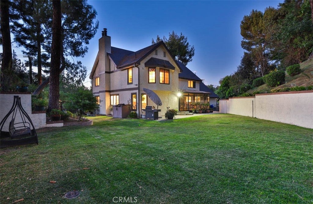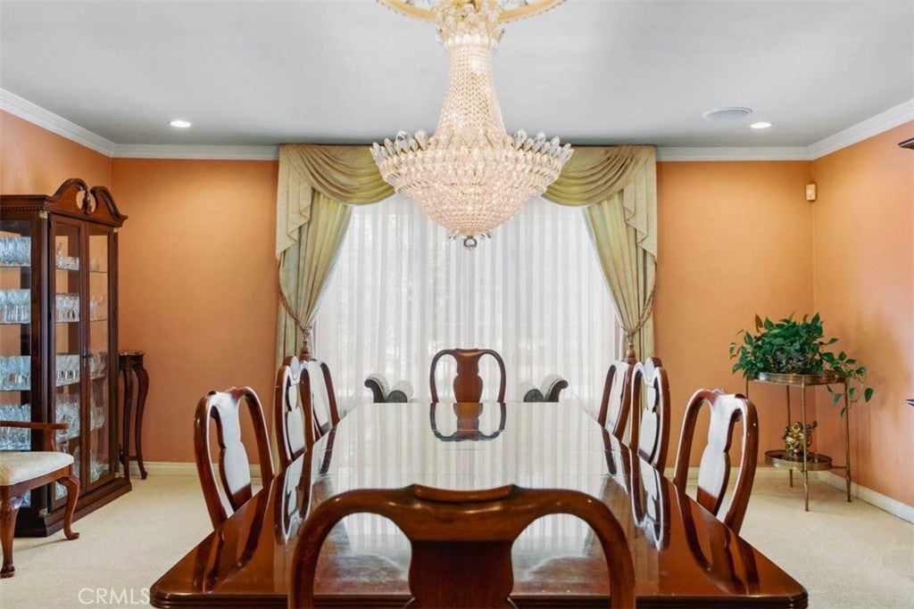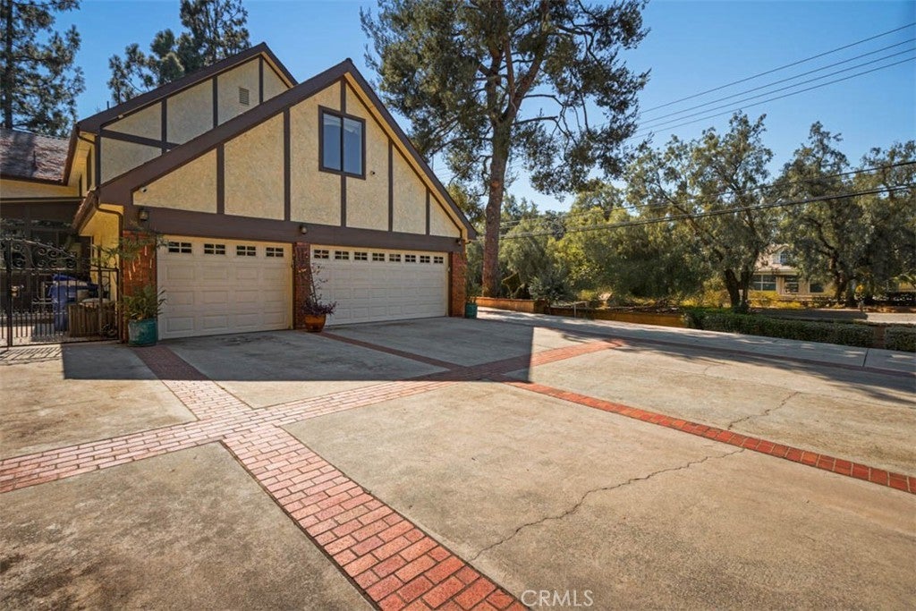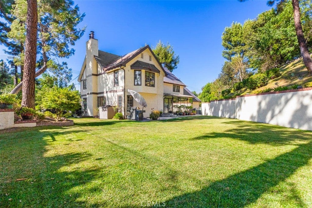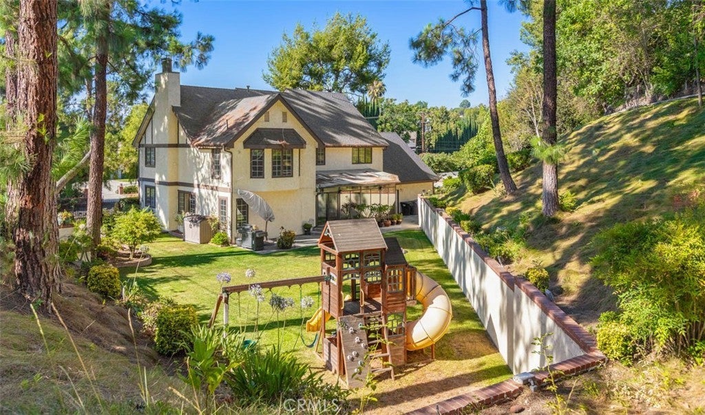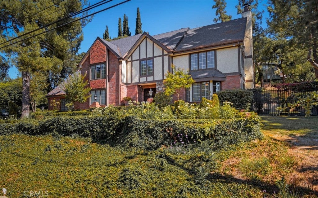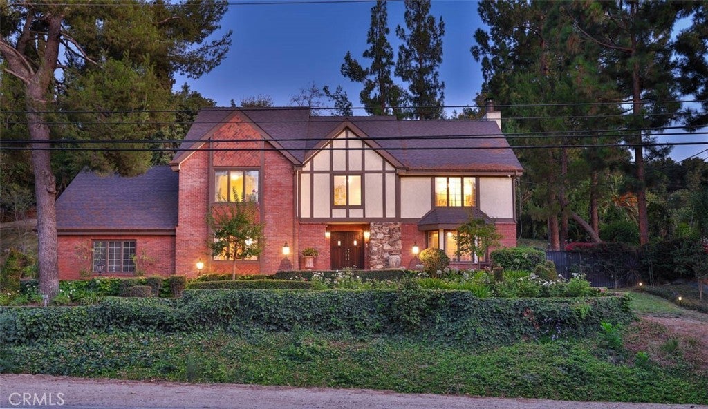 NEW PRICE! Located in one of Covina Hills sought after neighborhoods, this stately English Tudor home offers generously sized living spaces and beautiful maintained grounds. Inside you'll find a formal living room, a separate dining room with a magnificent crystal chandelier and a bright, spacious kitchen equipped with granite counters, built-in appliances, such as a 6 burner WOLF range and a breakfast island. The adjoining family room is designed for entertainment and comfort. There is a grand bar with bar stools and French doors that open to a private covered patio. Upstairs, the primary suite is a standout with a corner fireplace, walk-in closet, and an oversized bathroom with an luxurious tub and views of the back yard. There are 3 additional bedrooms and a bonus room. Set on an oversized lot, the property includes mature landscaping and tall trees. Additional highlights include newer roof, alarm system, large attic, and ample parking. Come and see this property!
