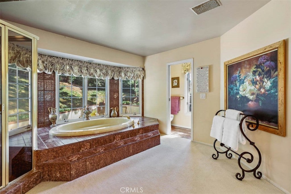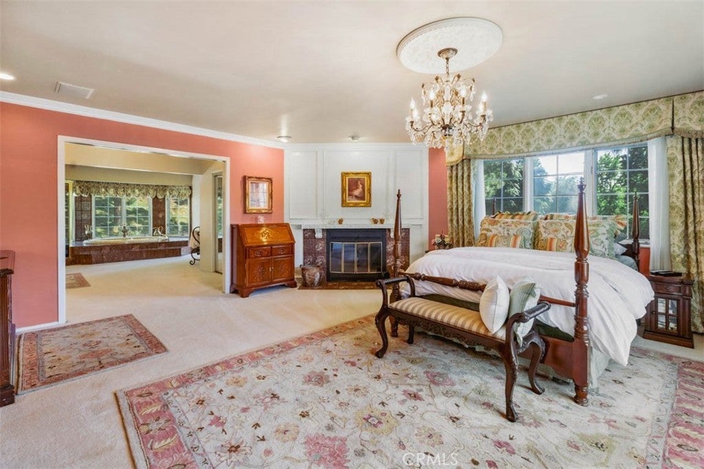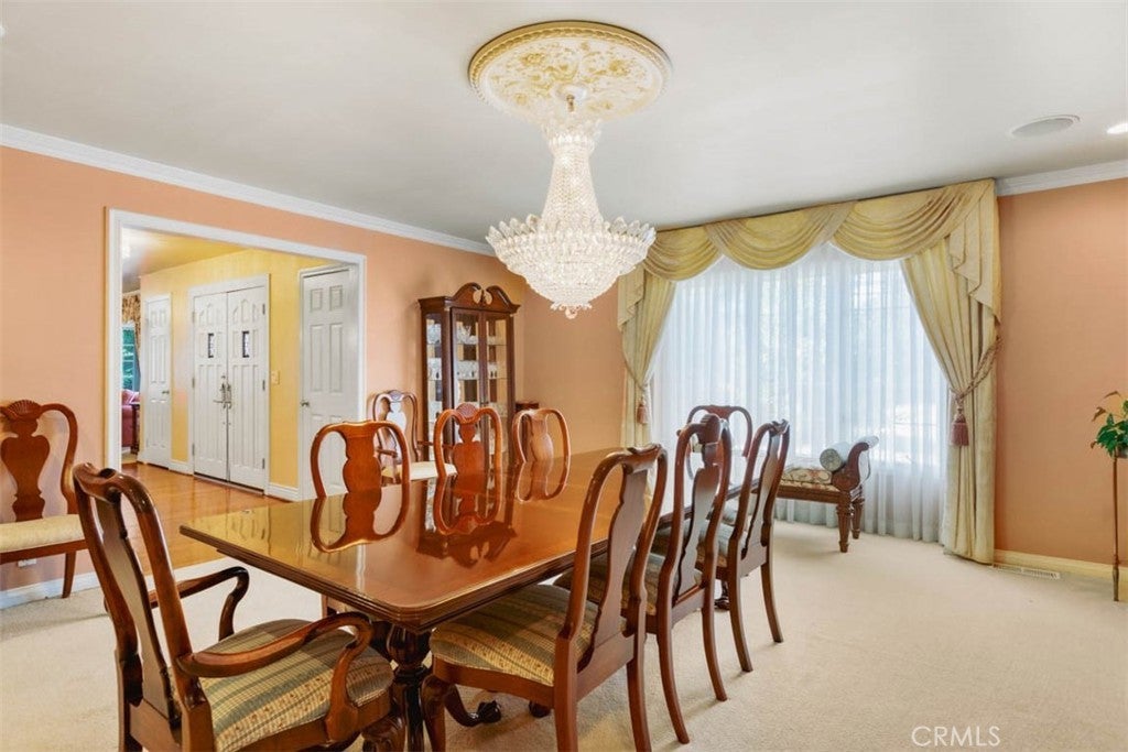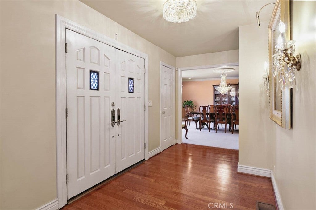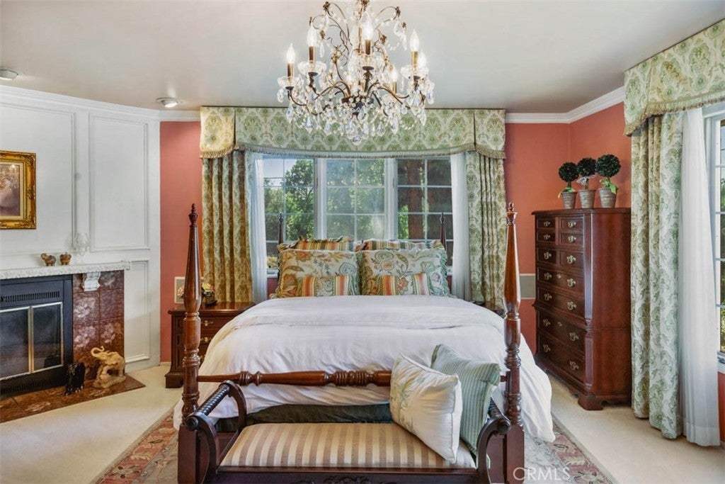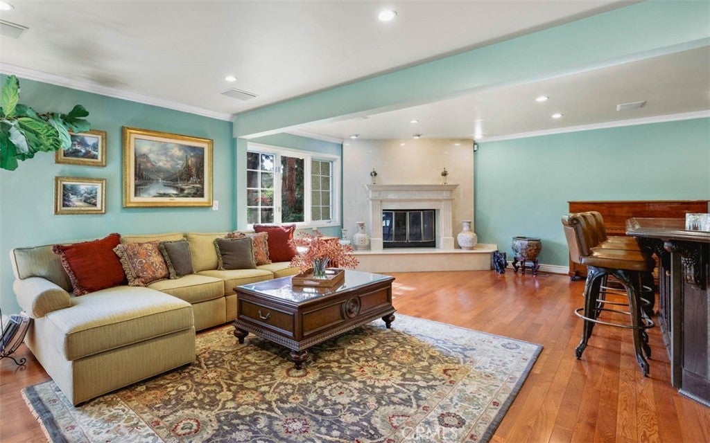 NEW PRICE! Located in one of Covina Hills sought after neighborhoods, this stately English Tudor home offers generously sized living spaces and beautiful maintained grounds. Inside you'll find a formal living room, a separate dining room with a magnificent crystal chandelier and a bright, spacious kitchen equipped with granite counters, built-in appliances, such as a 6 burner WOLF range and a breakfast island. The adjoining family room is designed for entertainment and comfort. There is a grand bar with bar stools and French doors that open to a private covered patio. Upstairs, the primary suite is a standout with a corner fireplace, walk-in closet, and an oversized bathroom with an luxurious tub and views of the back yard. There are 3 additional bedrooms and a bonus room. Set on an oversized lot, the property includes mature landscaping and tall trees. Additional highlights include newer roof, alarm system, large attic, and ample parking. Come and see this property!