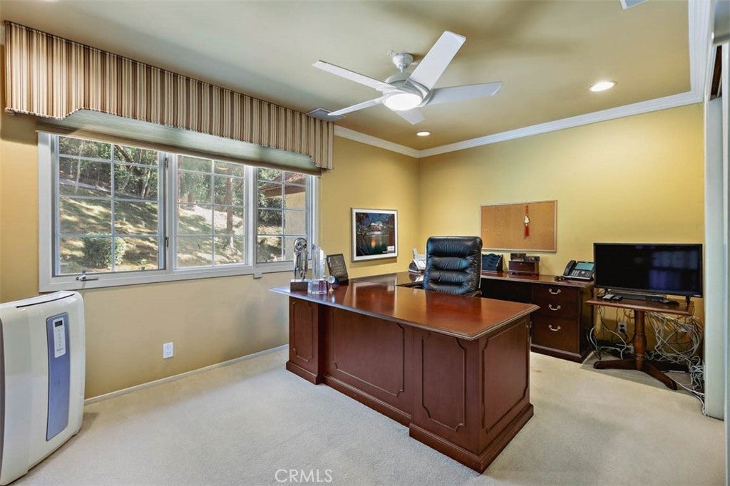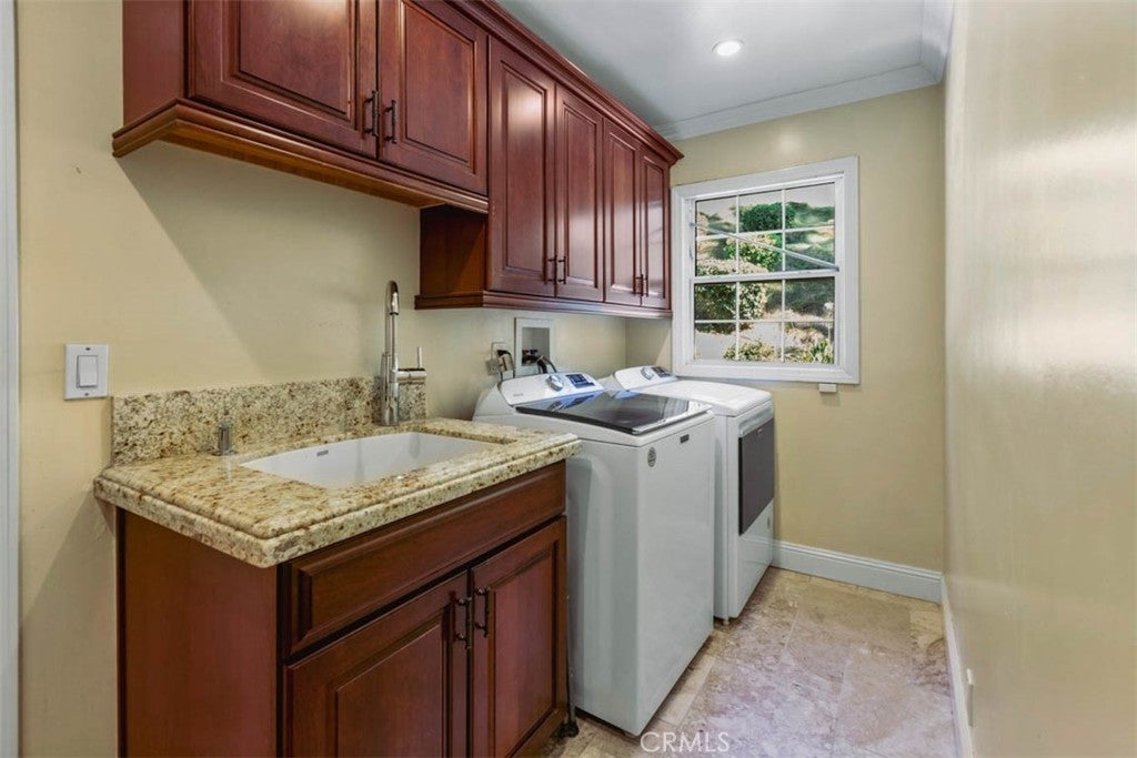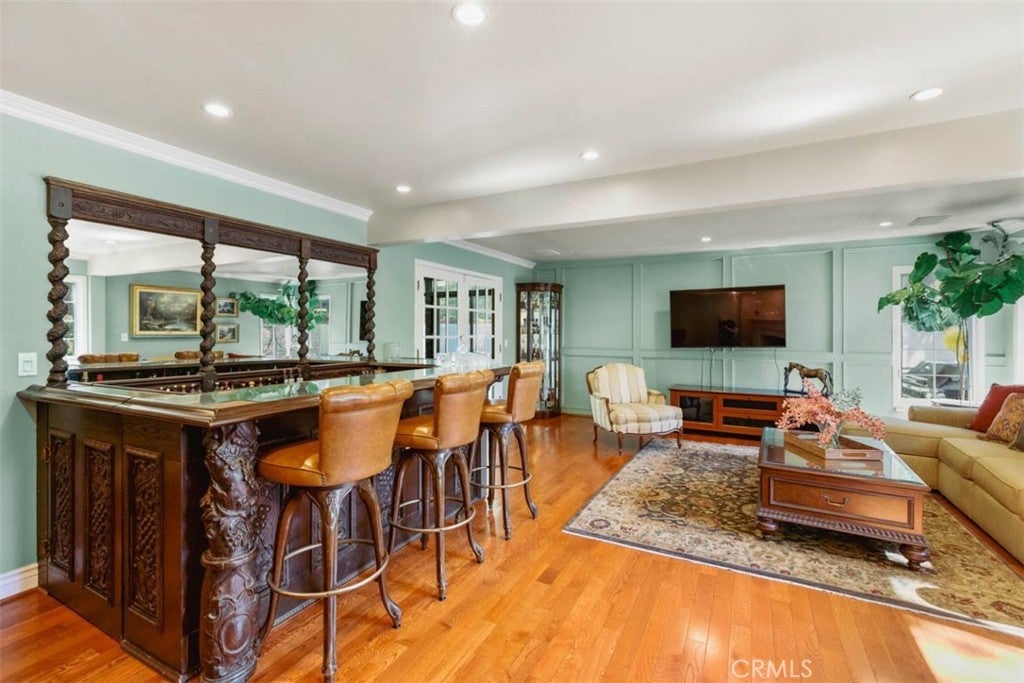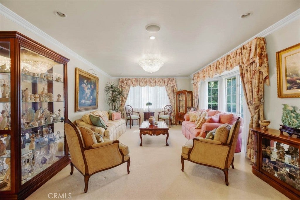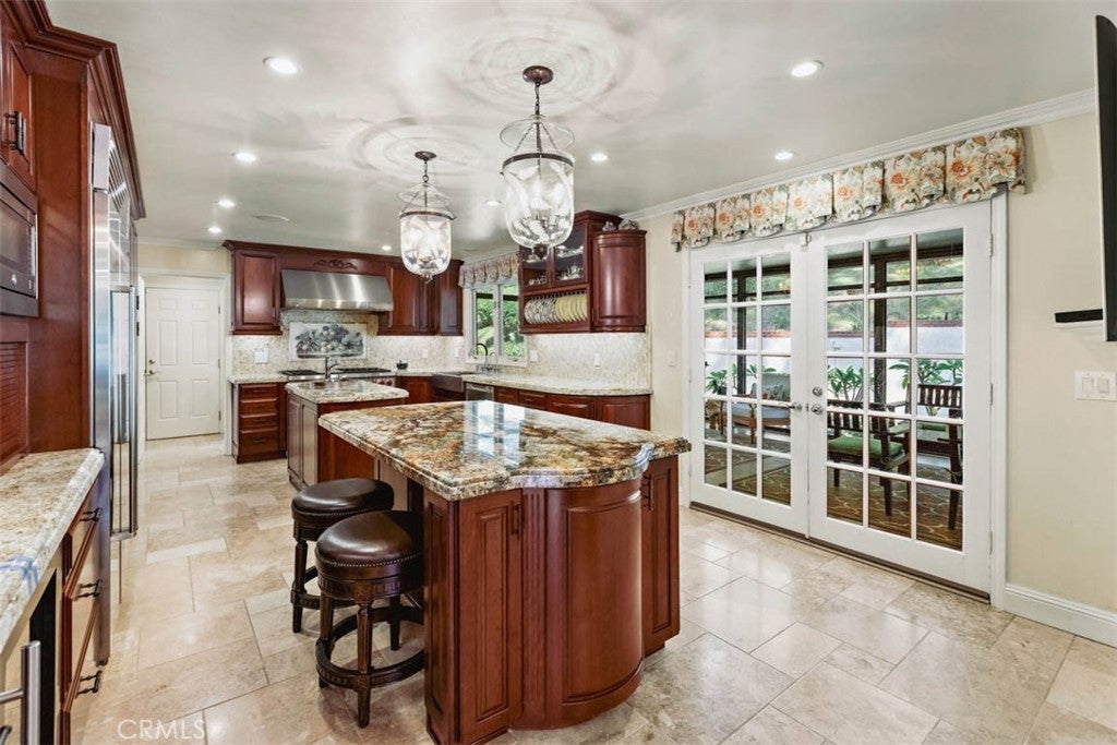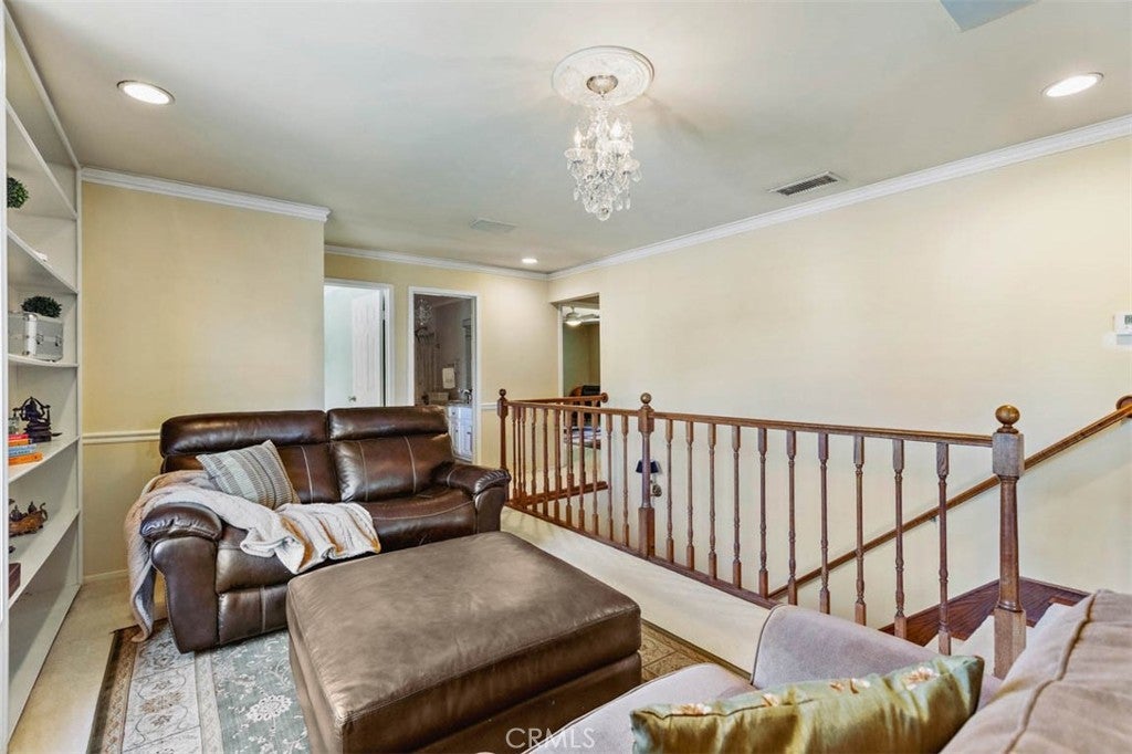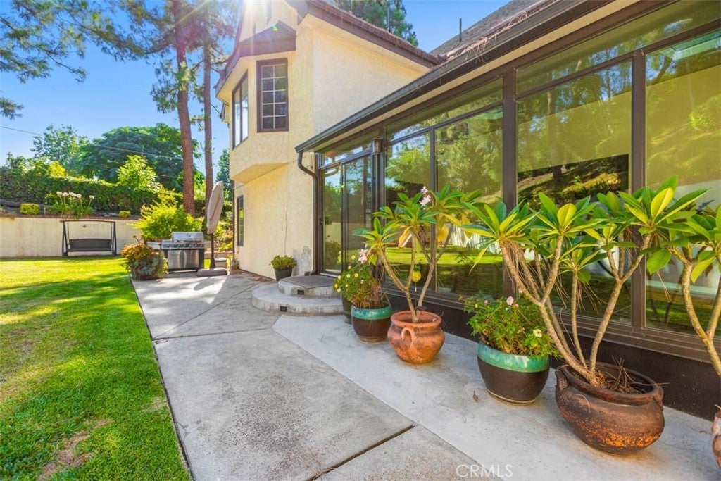 NEW PRICE! Located in one of Covina Hills sought after neighborhoods, this stately English Tudor home offers generously sized living spaces and beautiful maintained grounds. Inside you'll find a formal living room, a separate dining room with a magnificent crystal chandelier and a bright, spacious kitchen equipped with granite counters, built-in appliances, such as a 6 burner WOLF range and a breakfast island. The adjoining family room is designed for entertainment and comfort. There is a grand bar with bar stools and French doors that open to a private covered patio. Upstairs, the primary suite is a standout with a corner fireplace, walk-in closet, and an oversized bathroom with an luxurious tub and views of the back yard. There are 3 additional bedrooms and a bonus room. Set on an oversized lot, the property includes mature landscaping and tall trees. Additional highlights include newer roof, alarm system, large attic, and ample parking. Come and see this property!
