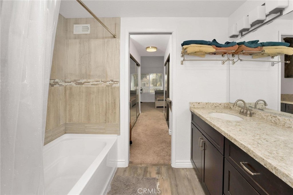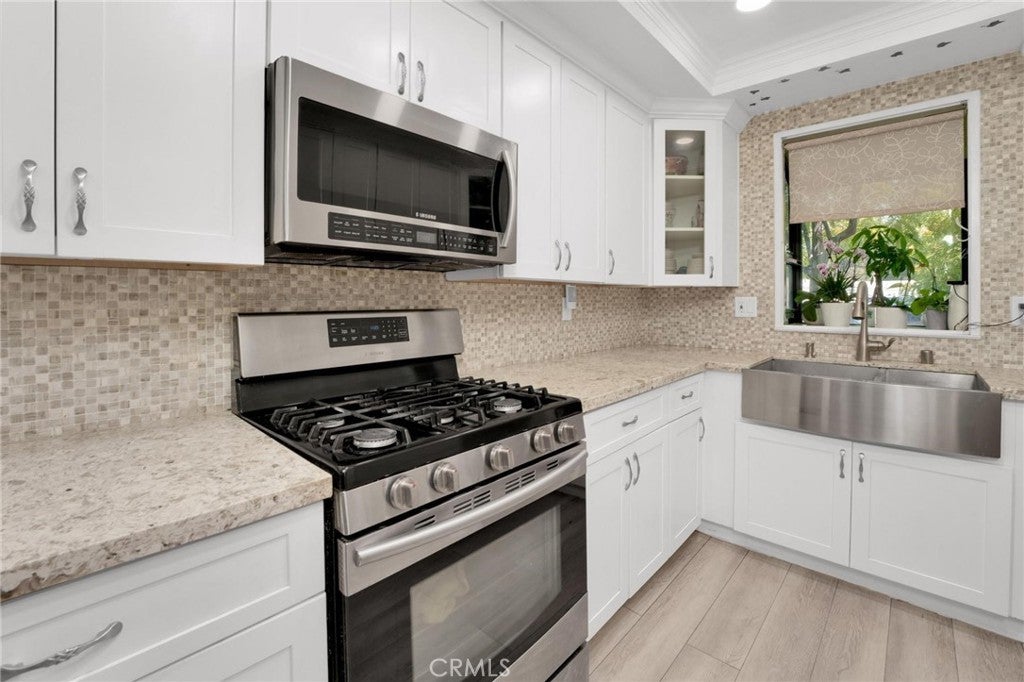 Welcome to The Brooks of Claremont! This beautifully updated end-unit condo is located in a highly desirable gated community, just minutes from the prestigious Claremont Colleges and Claremont Unified schools. Inside, you’ll discover the largest model offered at The Brooks, featuring a bright and open floor plan with luxury vinyl plank flooring, fresh neutral paint, recessed lighting, crown molding, updated baseboards, and a cozy fireplace. The spacious living room is enhanced by double sliding glass doors that flood the home with natural light and lead to a private patio—perfect for relaxing or entertaining. The modern kitchen is a true highlight with crisp white cabinetry, granite countertops, stainless steel appliances (stove, refrigerator, dishwasher, and microwave), recessed lighting, and a breakfast bar for casual dining. For added convenience, this home includes an indoor laundry room and a beautifully remodeled powder room downstairs. Upstairs, the expansive primary suite offers a large walk-in closet and tranquil views of the community pool. The hallway bathroom has been tastefully remodeled with Quartz countertops, dual sinks, new lighting, and an updated shower. A secondary bedroom provides comfort and versatility, ideal for family, guests, or a home office. Community amenities include a sparkling pool and spa, all within a beautifully maintained and secure gated setting. Additional highlights include a two-car detached garage, upgraded staircase, and countless other modern touches. With its prime location, location, location, this move-in ready home blends style, comfort, and convenience—just minutes from shopping, dining, parks, and top-rated schools in one of Claremont’s most sought-after neighborhoods.