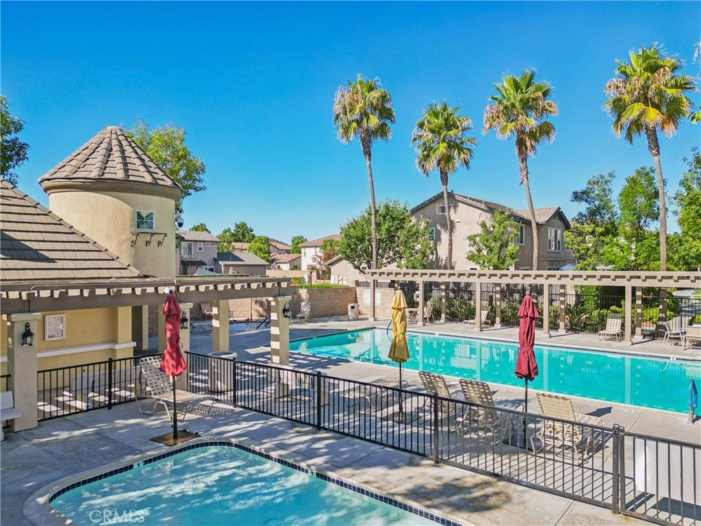 FANTASTIC SKYVIEW RIDGE HOME W/ UPGRADES! This is the one you've been looking for! Built by DR Horton in 2005, this well designed home & complex has so much to offer! The entry has a spacious patio with room for a BBQ, table, and is perfect for outdoor entertaining. The downstairs living space boasts an open concept, tying together the dining, living area and kitchen seamlessly. You're sure to appreciate the open feel that the high ceilings create. The living area has an entertainment nook, crown molding and an upgraded gas fireplace. The kitchen has tile counters, plenty of cabinetry w/ storage and gas appliances. There's direct access to the 2-car garage as well! The downstairs bathroom has been upgraded w/ a newer vanity, mirror and stylish light fixture. Upstairs you'll find all three spacious bedrooms. The secondary rooms are both larger than you'd expect and have plenty of natural light. The primary suite is a great size and has direct access to a private bath w/ a dual vanity and shower/tub combo. ***Other upgrades to note*** A whole-house IQ Air Purifier was installed this year, the A/C condenser & coil were upgraded late last year, the garage door has a new motor & springs and there is a custom glass entry door. Skyview Ridge offers access to two pools, a playground, a grass area and there's plenty of guest parking throughout the community. There's also a trailer storage area which is just a little extra per month. Talk about a convenient location!!! Costco, Aldi and several dining options are all a short walk away! Looking for something to do in the area? The Temecula wineries are close or go enjoy Los Alamos Hills Sports Park! Set up a tour to see this great home now!!! ***VA & FHA Approved Complex***
