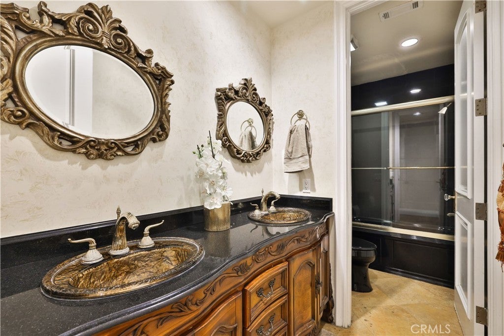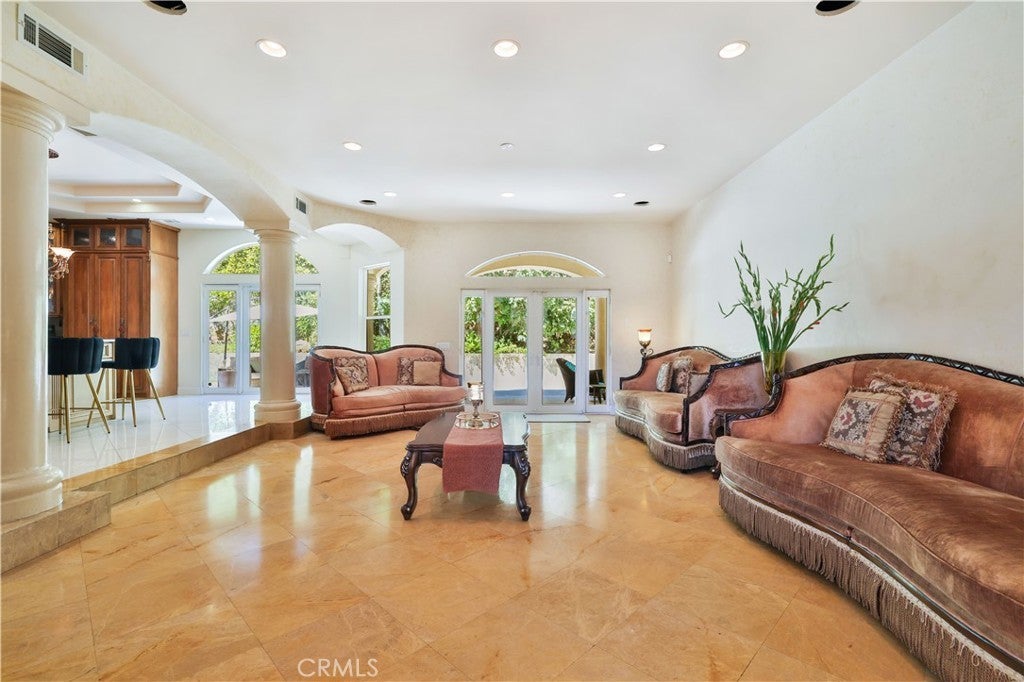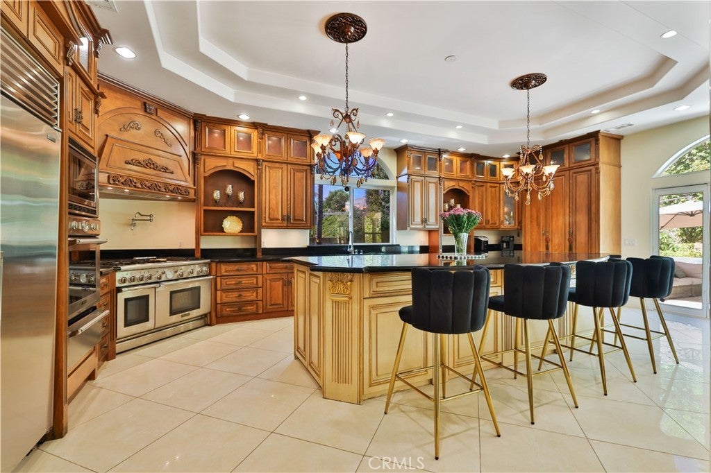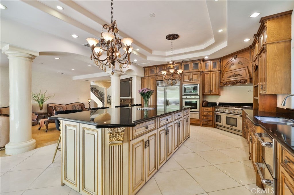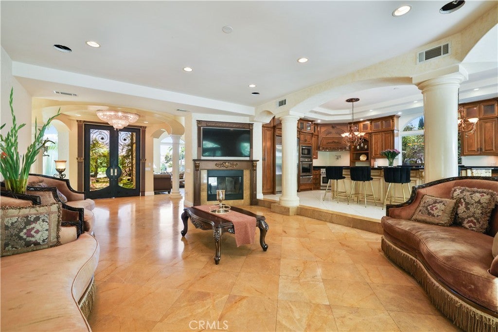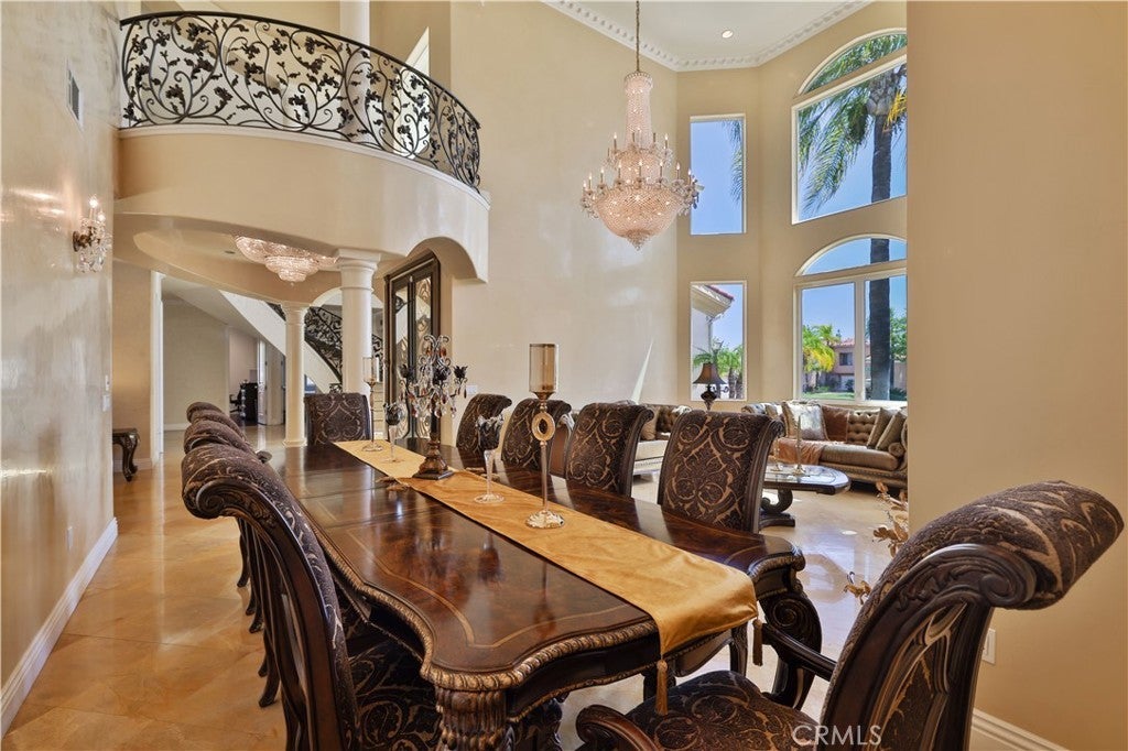 This stunning Mediterranean designed home features stucco walls, red-tile roofs, arched doorways, wrought iron details, and warm, earthy color palettes. An aesthetically impressive and visually appealing residence with high-end finishes, elegant details and a remarkable overall appearance. The home was completely rebuilt in 2009 and consist of 5,617 square feet of living space. When entering through the designer glass & wrought iron entry doors, you are instantly taken back by the marble flooring, Venetian plaster, 20' ceilings, custom chandeliers & staircase with wrought iron railings. This estate home features 6 bedrooms with 6 baths. It's ideal for accommodating large families or multiple guests. You'll enjoy the huge living room with massive high ceilings and warm fireplace. Formal dining room large enough to host dinner parties and holiday feast. Adjacent to the entry you'll find the massive family room with fireplace and open to the kitchen. The kitchen is a chef's delight with an abundance of kitchen cabinets, granite counters, built-in commercial grade stainless steel Thermador appliances and large center island for entertaining your family and guests. On the main floor you'll find 3 bedrooms with a secondary primary suite and bath, that includes a walk-in shower, closet and jacuzzi tub. Upstairs you'll find 3 additional bedrooms including the master suite. The sprawling master bedroom includes a two way fireplace, sitting room, EnSuite bath with walk-in closet, shower, separate tub, dual sinks with designer sinks and fixtures. The long driveway will accommodate multiple vehicles and the rear yard is ideal for entertaining. Overall, this estate is very luxurious, and beautifully designed with Mediterranean architectural charm and ample space for comfort!