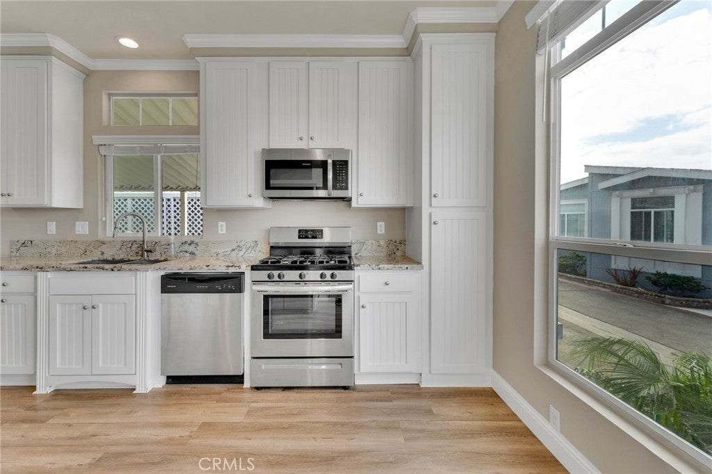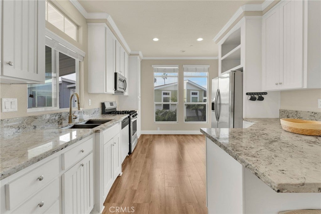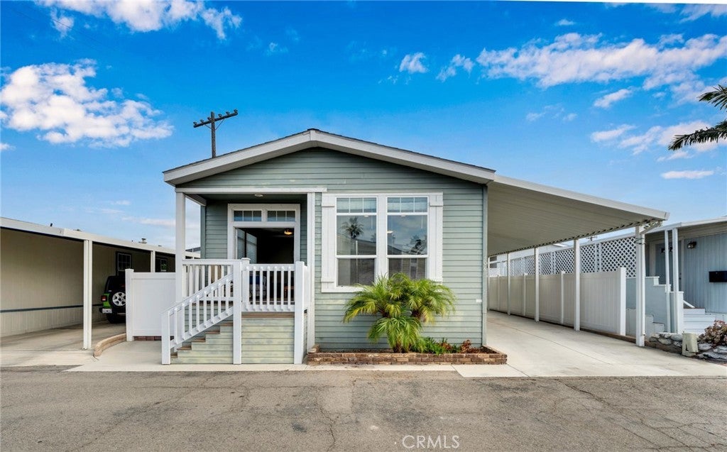 Welcome to coastal living in the heart of San Clemente! This charming two-bedroom, two-bathroom manufactured home is located in the highly sought-after Capo Beach Cottages, just a short walk from the Pacific Ocean. Step inside the home to find an inviting open-concept layout, where natural light pours through the many doors and windows. The kitchen features crisp white cabinetry, granite countertops, stainless steel appliances, and a convenient bar seating area! This makes it the perfect spot for casual meals or entertaining. The crown molding and matching finishes throughout the home create a cohesive, polished look that showcases the pride of ownership! French-style tandem doors open to a front patio area, an ideal spot to sip your morning coffee or enjoy the cool ocean breeze. The primary suite offers its own ensuite bathroom with a walk-in shower, plenty of counter space, and double closets for ample storage. The second bedroom and bath provide the perfect setup for guests or a home office. A separate laundry/mudroom provides extra storage and easy access to the exterior, making everyday living simple and efficient. This vibrant 55+ community offers resort-style amenities including a sparkling pool, clubhouse, BBQ area, and more—all surrounded by swaying palm trees and the unmistakable California sunshine. With two covered parking spaces and an unbeatable location near the beach, this home truly captures the best of coastal retirement living. Be sure to check out the 3D tour and experience this beautiful home for yourself!