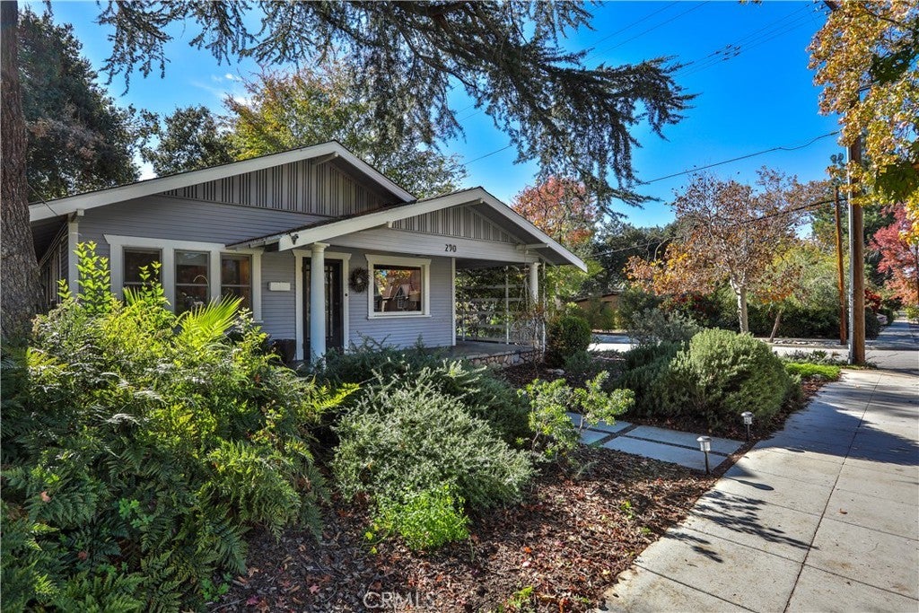 CRAFTSMAN BUNGALOW WITH PRIME LOCATION & ADU POTENTIAL IN THE HEART OF CLAREMONT VILLAGE. Located in a great neighborhood just a couple blocks from the Claremont Colleges, Memorial Park, and Trader Joe's, and a short walk from the Village’s charming shops and cafés, this beautifully preserved Craftsman bungalow offers the best of Claremont living. Perfectly positioned on the desirable east side of Indian Hill Ave, the home blends historic character with thoughtful modern upgrades. Light-filled living spaces with abundant windows showcase this home's rich woodwork and original built-ins. The remodeled kitchen features Viking appliances and stone counters. The remodeled bathrooms, built-in sound system, central heating and air conditioning, copper plumbing, and a retrofitted, reinforced foundation provide comfort and peace of mind. The front porch is a wonderful place to sit and drink your morning coffee while enjoying a view of the San Gabriel Mountains. The professionally designed backyard by HartmanBaldwin is a private sanctuary—ideal for outdoor dining, entertaining, or quiet relaxation—complete with an expansive patio and lush, mature landscaping. The equally charming front and side yards showcase sustainable plantings, mature citrus and oak trees, vegetable garden boxes, and a convenient drip irrigation system. An oversized detached two-car garage and spacious driveway offer generous parking options, while the attached bonus room makes an excellent home office, studio, or creative space. With its large corner lot, bonus room, and flexible layout, this property also presents exceptional potential for an addition or ADU conversion. This is a rare opportunity to own a beautifully maintained piece of Claremont history—updated for modern living and surrounded by the very best the Village has to offer. Be sure to view the 3D property tour!