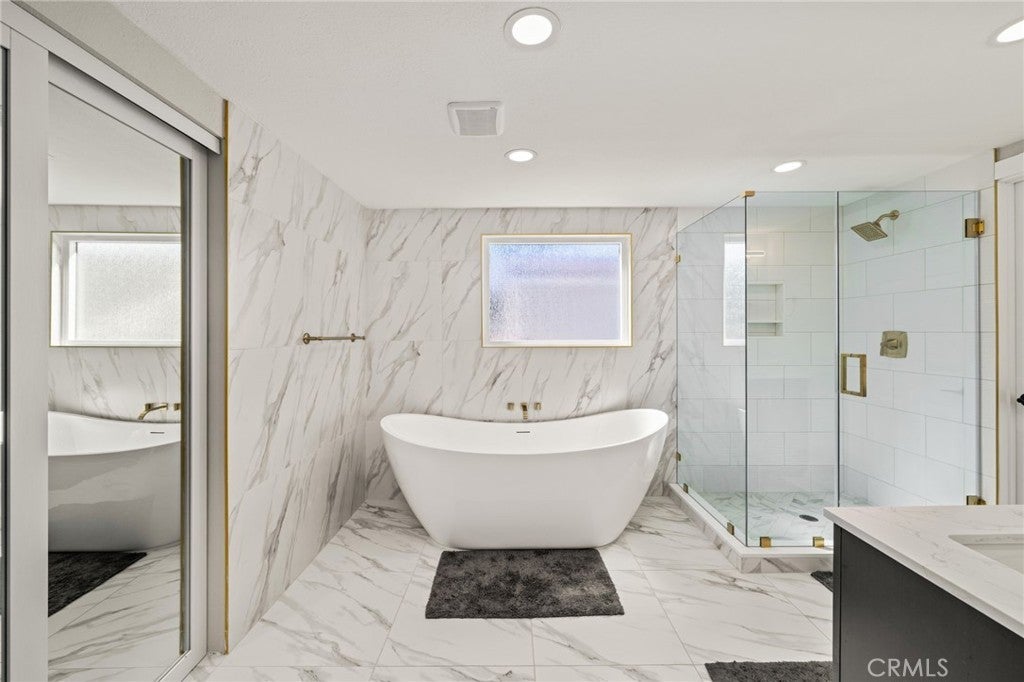 Step into a beautifully renovated home where every detail has been thoughtfully designed for style, comfort and convenience. This home blends modern design with energy efficiency, creating a rare opportunity that's truly move in ready. You are greeted with a new double entry door that leads right into a spacious open-concept layout filled with abundant natural light creating a bright and inviting atmosphere. Enjoy a modern kitchen with quartz counters, waterfall breakfast bar, and new appliances. Bathrooms are fully renovated with upgraded plumbing. Additional highlights include new dual tone windows, recessed lighting, luxury vinyl plank flooring, and custom fireplace surround. A new contemporary garage door with epoxy flooring, a new electrical panel solar ready and Tesla Universal EV charger. Outdoor living shines with a new paver patio with matching garden wall with accent lighting, a new Rachio irrigation system that automatically optimize watering to maintain a healthy lawn. This stunning home has both beauty and functionality and is ready for its next chapter!