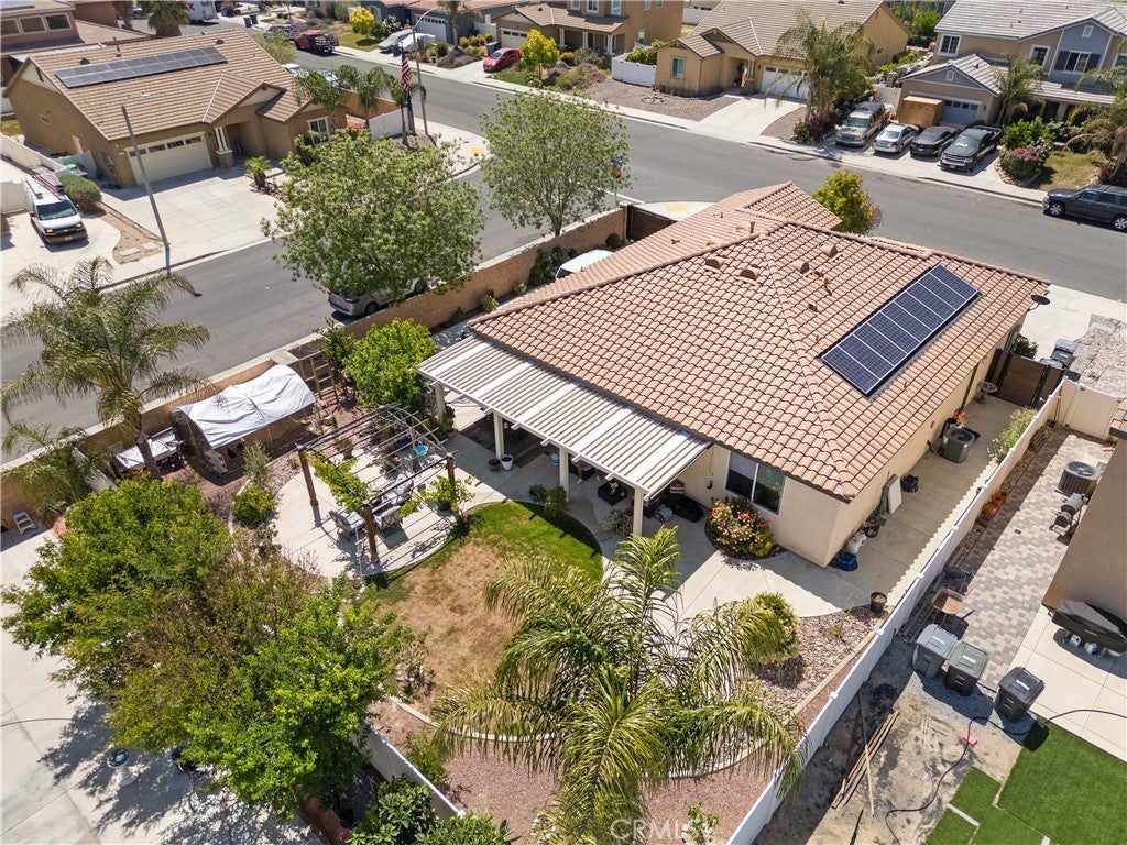 Step into this stunning single-story ranch-style home in San Jacinto, featuring paid-off solar, RV parking, and no HOA! Built in 2017, this 1,935 sq. ft. residence offers three spacious bedrooms, two full bathrooms, and an open-concept floor plan designed for modern living. The gourmet kitchen boasts granite countertops, white shaker cabinets, a large island with sink, and a walk-in pantry, perfect for meal prep and entertaining. Enjoy luxury vinyl plank flooring, inside laundry, and ample storage throughout. Outside, the low-maintenance backyard is beautifully landscaped, complete with a gas hookup for a BBQ, and street-access RV parking deal for all your outdoor toys. Nestled in a prime location near parks and amenities, this turnkey home is ready for its next owner.