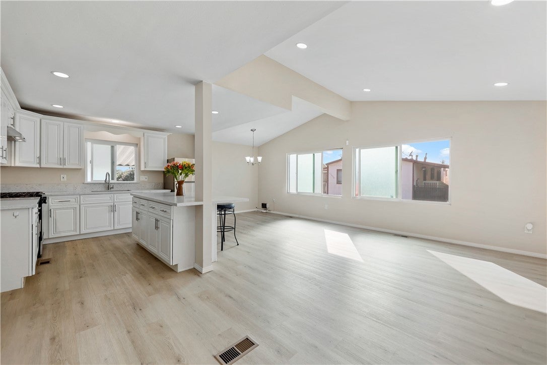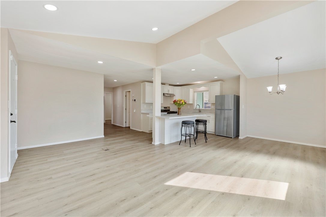 • Interior FeaturesCathedral Ceiling(s), Separate/Formal Dining Room, Eat-in Kitchen, Granite Counters, Open Floorplan, Quartz Counters, Recessed Lighting, All Bedrooms Down