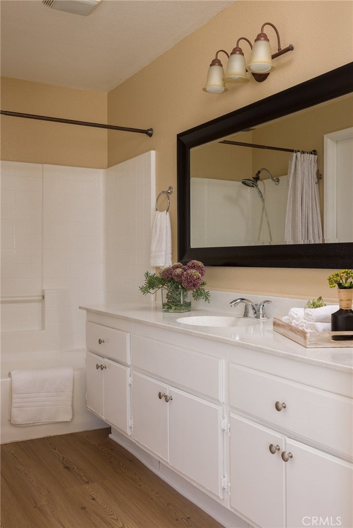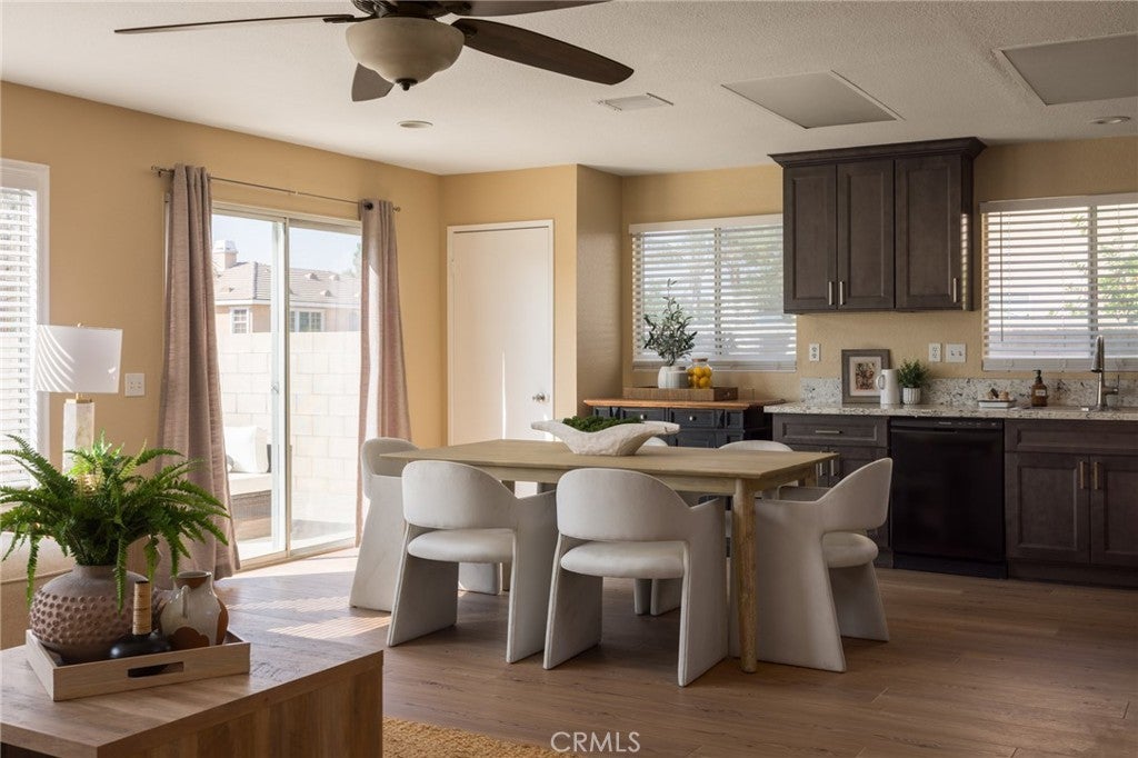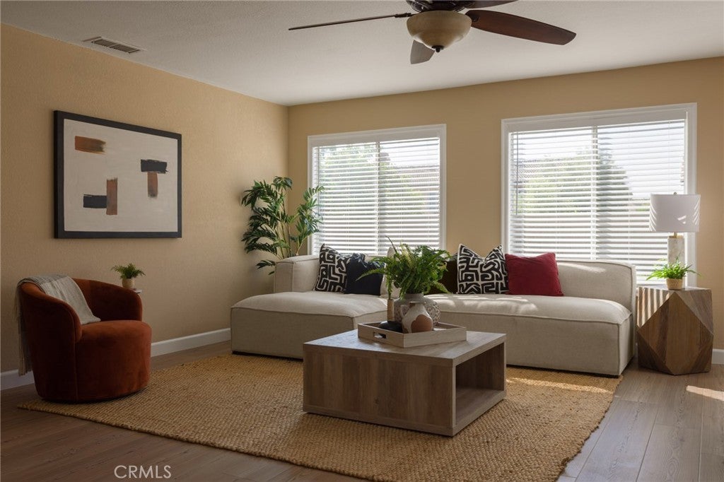 UPDATED & MOVE-IN-READY SINGLE STORY cul-de-sac home, in a wonderful enclave of Fontana & Etiwanda school district! Enter this spacious 4 bedrooms & 2 bathrooms home into a living room which leads into an open "Great Room", bathed with windows overlooking the backyard, combining the Family Room, Dining Area & Kitchen which features new custom cabinets and quartz counters. Adjacent to the "Great Room" are 4 bedrooms, including a spacious Master Bedroom with an en-suite bath and walk-in closet and 3 bedrooms and a hallway bath. New custom paint throughout interior. New vinyl plank flooring throughout. Other amenities include : portable island, over the range microwave, dual pane windows throughout, new faux wood window blinds, newer fixtures, ceiling fans, recessed lights, central HVAC & alarm system ready. Landscaped front & back yards incl. automatic sprinklers system & stamped concrete patio. Laundry hookups in the laundry room adjacent to garage. Direct access from house to a 2-car garage w/automatic garage door (w/access door to/from side yard). RECENT UPGRADES : HVAC system with new furnace, AC condenser & ducting (2022). Plenty of space for RV parking. Conveniently located & within minutes to Etiwanda District schools, eateries, shopping, business & entertainment centers, local park & freeways. ~ Welcome home!