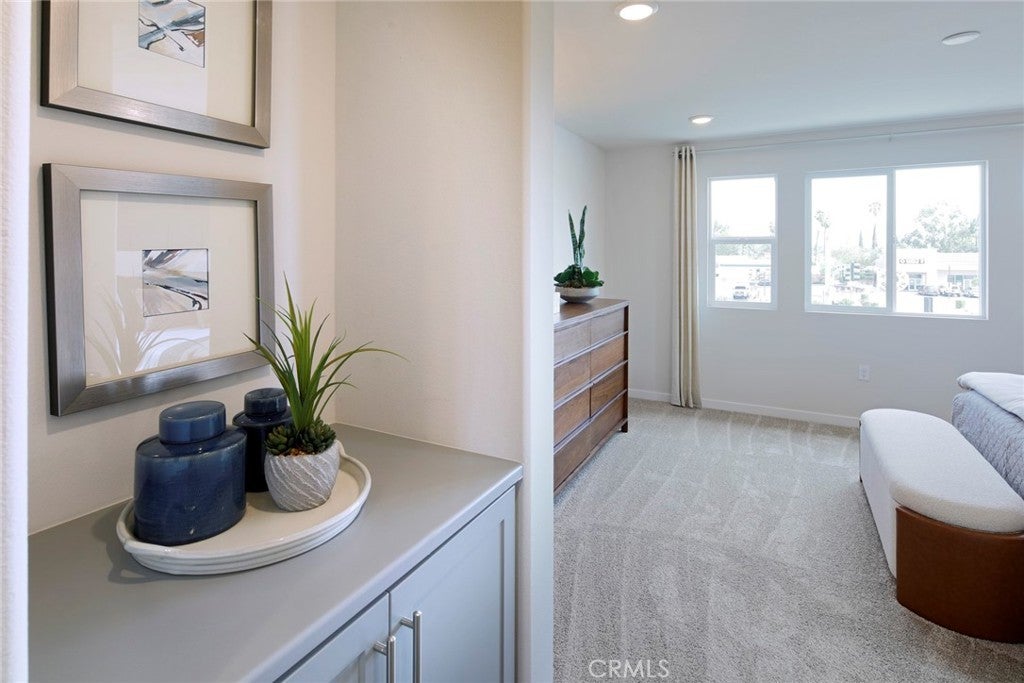 Welcome to Sagecrest by Century Communities! This beautiful Tri-level Gated townhome community is located in the heart of Riverside close by the 91 freeway right off Van Buren Blvd. very close to shopping, restaurants and California Baptist University as well as UC Riverside. After walking through your private patio, you will enter to the first floor you will find a jr. suite with its own walk-in closet and full bathroom. Heading up to the second floor you enter a spacious Kitchen with a large island and dining area open to living room which has a large private balcony with city views. The kitchen features " Aria Stone Gray" cabinets, quartz counters and a stylish backsplash. The second level also includes a bedroom and full bathroom. Going up to the third level you will find a spacious Owner's Suite which includes large bathroom with double sinks, walk-in shower and walk-in closet. Finishing the 3rd level there's an additional bedroom with its own private bathroom and walk-in closet. Laundry room is also on third level. Come see this amazing community, Sagecrest is a Gated Community and will include a playground, dog park, shade structures and BBQs and more!