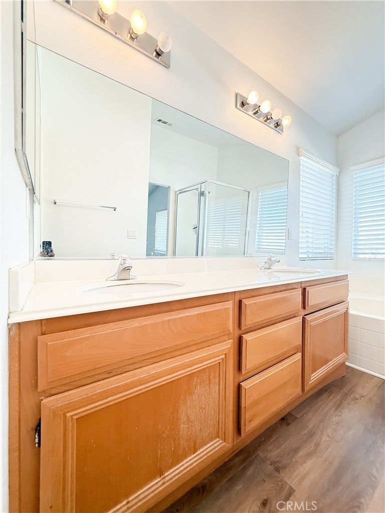 Large two-story home! The property boasts 4 bedrooms and 3 bathrooms, a living room, a family room with a fireplace, an eating area, an open-concept kitchen, a laundry room, a downstairs bedroom and full bathroom, garage access, a large master bedroom with a soaking tub, double sinks, a standalone shower, a walk-in closet, and must-see features.