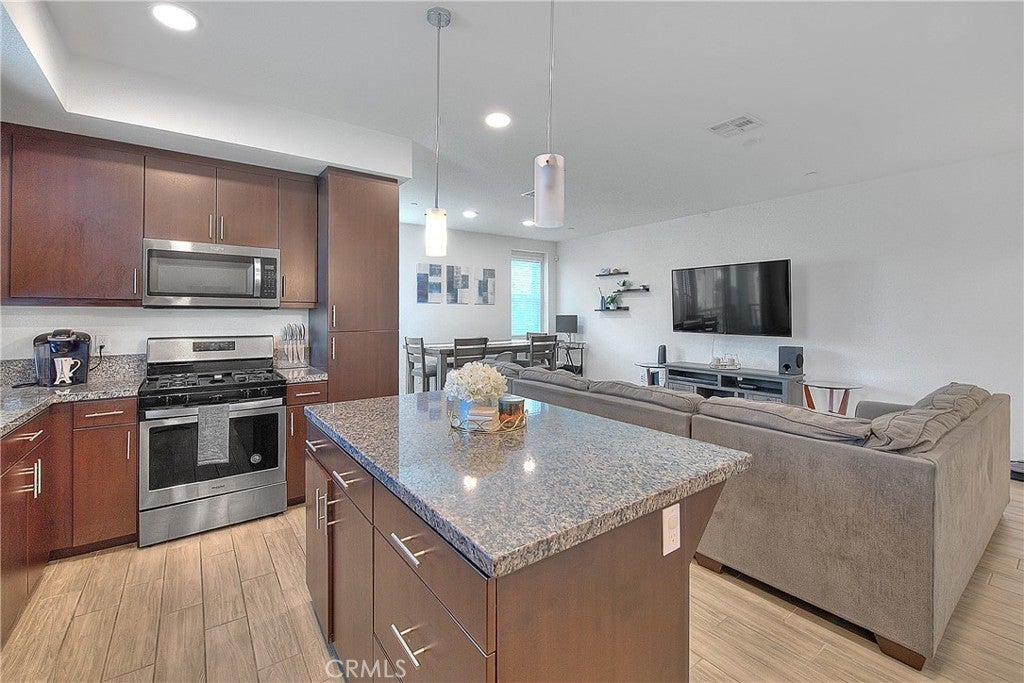 Welcome to 7718 Haywood Place, a stunning 4-bedroom, 4-bathroom home located in The Row and Bungalows at Terra Vista, one of Rancho Cucamonga’s most desirable newer communities. Built in 2019, this beautifully designed 1,870 sq. ft. residence blends modern comfort, functionality, and style. Step inside to discover a bright, open-concept floor plan featuring sleek finishes, recessed lighting, and thoughtfully designed living spaces perfect for entertaining or relaxing. The gourmet kitchen boasts contemporary cabinetry, stainless steel appliances, a large island with seating, and elegant granite countertops. The luxurious primary suite accommodates the most lavish furnishings with a walk-in closet and an en-suite bath featuring dual vanities and a glass-enclosed shower. Each additional bedroom is generously sized and includes access to well-appointed bathrooms, making this home ideal for families or guests. Enjoy the convenience of an attached two-car garage and a private outdoor patio, perfect for morning coffee or evening gatherings. The community offers resort-style amenities, including a sparkling pool, spa, clubhouse, and beautifully landscaped common areas. Ideally situated near Terra Vista Town Center, Victoria Gardens, parks, and top-rated Cucamonga School District schools, this home provides the perfect blend of suburban tranquility and urban accessibility. Don’t miss this opportunity to own a turnkey, low-maintenance home in one of Rancho Cucamonga’s most sought-after neighborhoods — where modern living meets community charm.