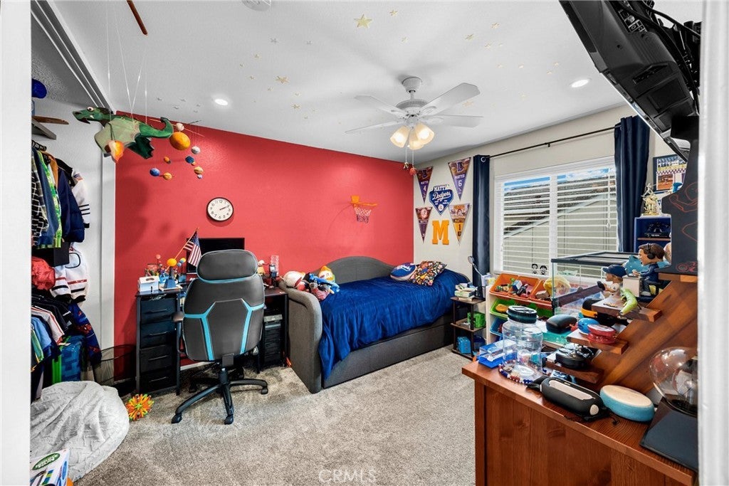 • Interior FeaturesBreakfast Bar, Ceiling Fan(s), High Ceilings, Open Floorplan, Recessed Lighting, Bedroom on Main Level, Primary Suite, Walk-In Closet(s), All Bedrooms Up, Block Walls, Entrance Foyer, Pantry, Quartz Counters