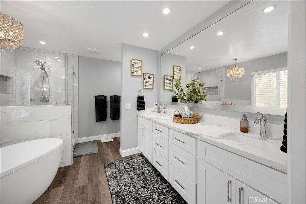 WELCOME HOME TO YOUR FULLY REMODELED NORTH UPLAND HOME. NESTLED RIGHT UP AGAINST THE FOOTHILLS OF UPLAND. STUNNING MOUNTAIN VIEWS, PEACEFUL SURROUNDINGS, EASY ACCESS TO LOCAL PARKS AND SHOPPING, AND TOP RATED SCHOOLS. THIS FULLY REMODELED 2918 SQ. FT. HOME PERFECTLY BLENDS MODERN FARMHOUSE COMFORT WITH TIMELESS STYLE. OFFERING 5 BEDROOMS 4 BATHROOMS, WITH TWO PRIMARY SUITES WITH FULL BATHS AND WALK-IN CLOSETS. STEP INSIDE TO FIND GLEAMING HARDWOOD FLOORS, A GORGEOUSLY REMODELED STAIRCASE, AN UPDATED INVITING FIREPLACE THAT CREATES A WARM FOCAL POINT IN THE LIVING AREA. THE KITCHEN FEATURES NEW QUARTZ COUNTERTOPS A STRIKING RANGE HOOD AND PREMIUM STOVE. NOT TO MENTION THE DUAL CLIMATE WINE FRIDGE. ADDITIONAL HIGHLIGHTS INCLUDE A TWO-CAR GARAGE, AMPLE LAUNDRY SPACE AND EXTRA LINEN STORAGE UPSTAIRS. EVERY DETAIL OF THIS REMODEL HAS BEEN THOUGHTFULLY EXECUTED, ENSURING A MOVE IN READY CONVENIENCE AND LASTING QUALITY. HOME OFFERS ACCESS TO TWO POOLS AND TENNIS COURTS. ALSO INCLUDES 220 OUTLET FOR VEHICLE CHARGING. SOLAR IS PAID IN FULL. AND LAST BUT NOT LEAST, NEW HVAC SYSTEM AND DUCTING, NEW WATER HEATER AND FILTER AND NEW DUAL PANE WINDOWS.