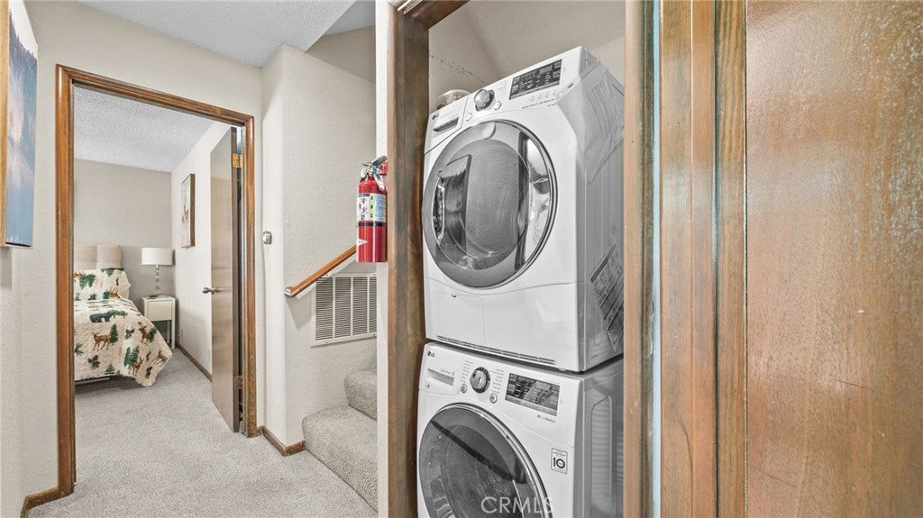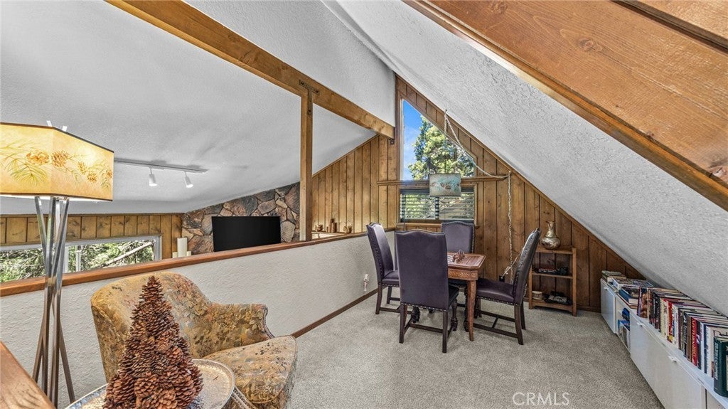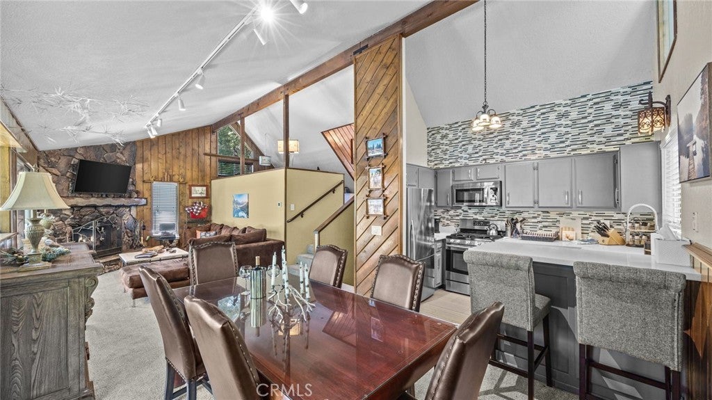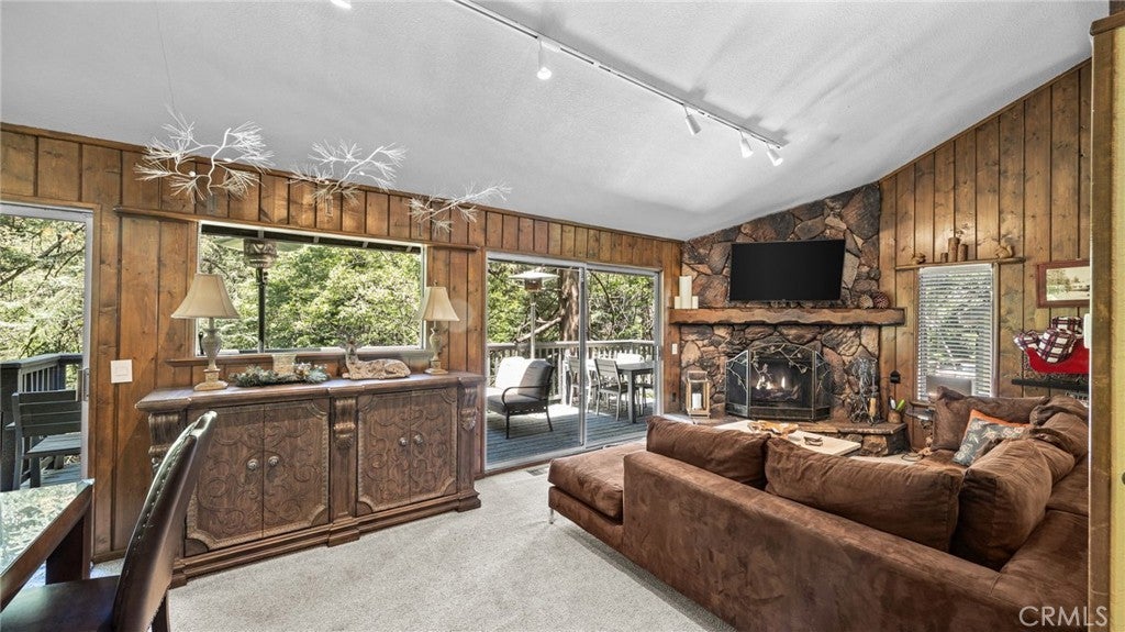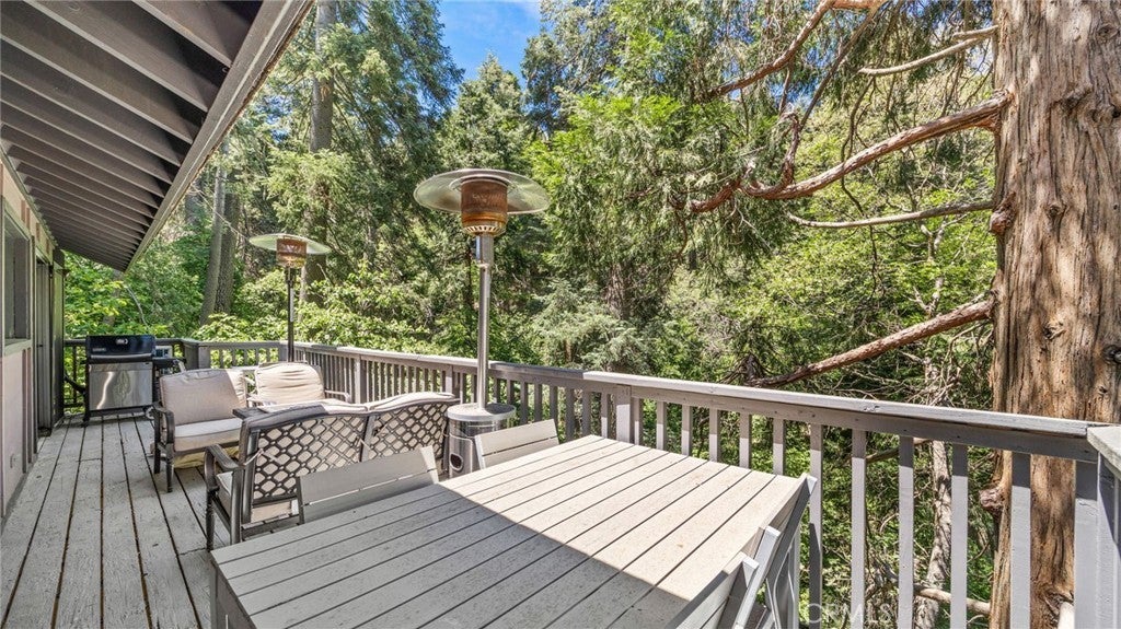 MOTIVATED SELLER! Welcome to your dream cabin in the desirable Arrowhead Villas! This charming 3-bedroom, 2-bath home is nestled on a downslope side of the mountain, surrounded by acres of protected natural forest. Enjoy easy entry-level access and level parking for 3 cars on a newly updated parking deck. Step inside to find vaulted ceilings and a large stone fireplace in the living room, perfect for cozy nights. The recently updated kitchen boasts stainless steel appliances and an eat-at bar area. Two sliding glass doors lead outside to a deck that runs the full length of the house, perfect for enjoying the beautiful forest views. A secret loft/game room provides a fun hideaway for kids. The home also features a convenient laundry area with a washer and dryer, and dual-zoned heating and air conditioning for year-round comfort. Enjoy stunning forest views and abundant wildlife from your backyard, complete with a seasonal stream. The west-facing position ensures spectacular sunsets. The roof has been recently inspected for your peace of mind. Blueprints are available at no cost for adding a 4th bedroom with a bath and additional decking, offering plenty of room to expand. Sold with all furniture and appliances, this cabin is move-in ready. With county-plowed roads in the winter, you’ll have easy access year-round. Located close to Lake Arrowhead Village and Santa's Skypark Village, and with quick access to Rim Highway 18. Don’t miss this opportunity – schedule a showing today!