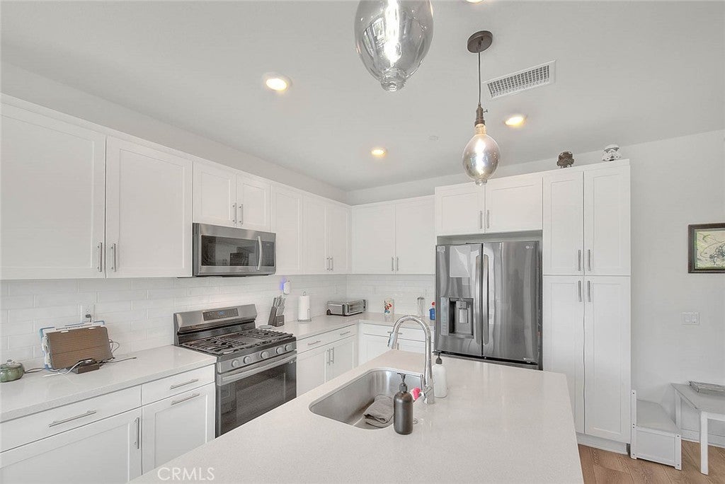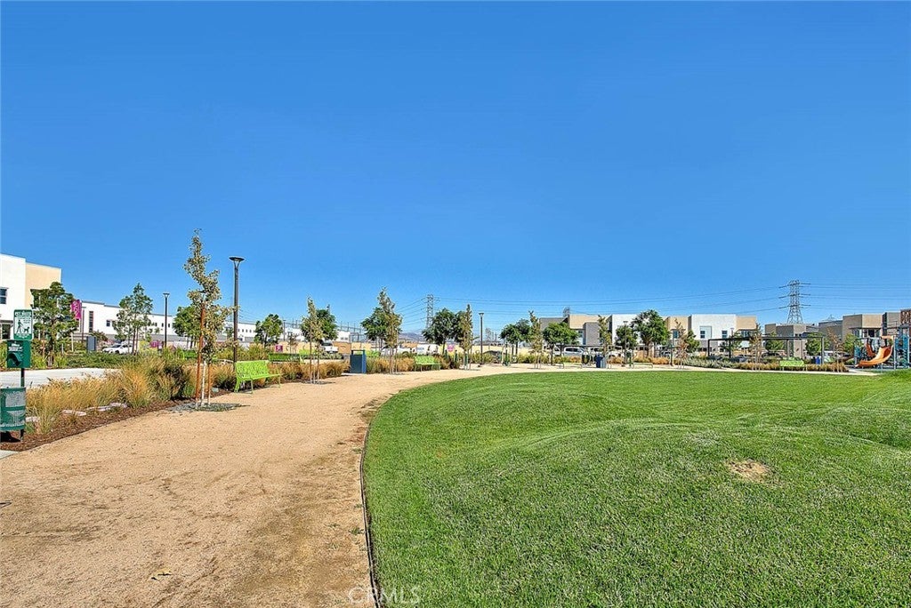 Modern floor-plan with modern design and lifestyle. This open concept 2 bedroom, 2 bathroom, Laundry Closet, 2-car garage Condo, was built in 2022 in the up and coming city of Ontario, and Ontario Ranch neighborhood. Wood laminate flooring, custom window coverings, stainless steel appliances, quartz countertops, washer & dryer included. Energy efficiency: leased solar panels and tankless water heater. Community features: pool, spa, clubhouse, playground and gated dog park. Close in proximity to new Ontario Dodger TowerBuzzer Stadium, Ontario Airport, 10, 15 & 60 freeways and more!