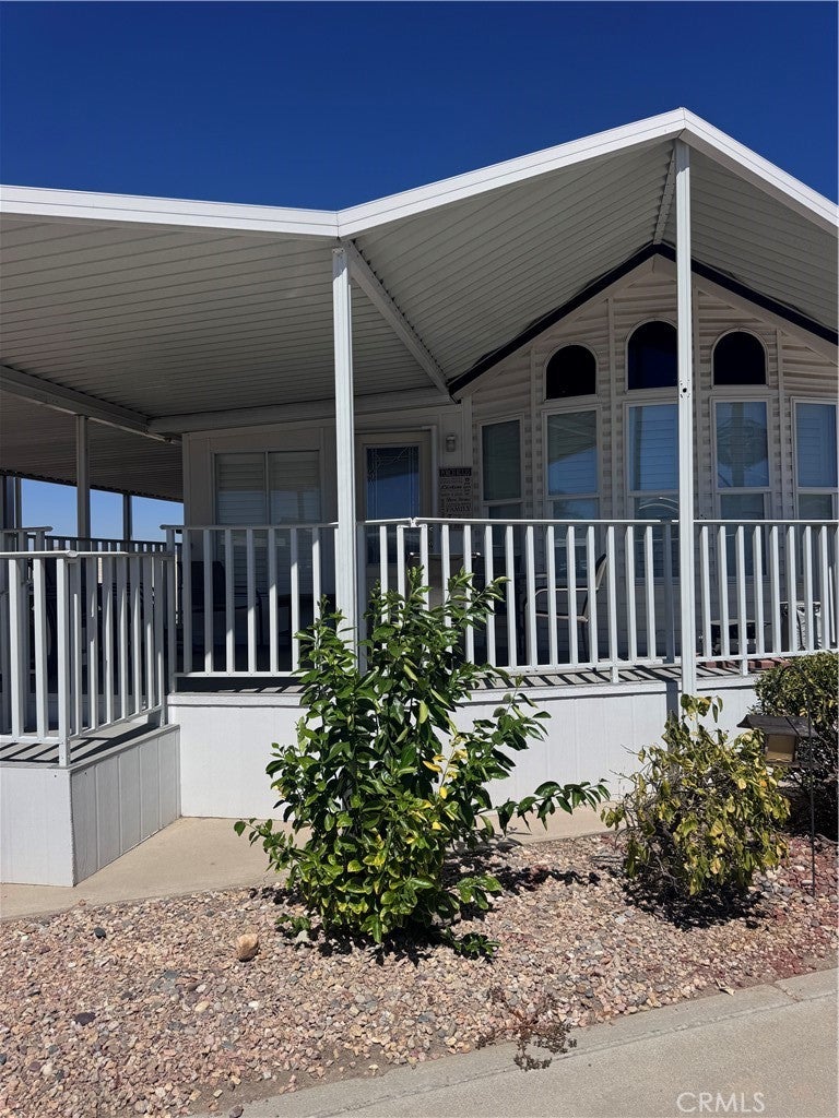 Welcome to Mountain Shadows 55+ Resort Community! You own the land with this beautifully updated park model home featuring partial utilities included. Recently remodeled with newer quartz vanity, walk-in shower, wood flooring, and more. The bright kitchen offers custom countertops, backsplash, and a full-size gas stove. Enjoy the spacious California Room, perfect for relaxing or entertaining. Outside features an extended shed with stackable washer & dryer, easy-care landscaping, and a large awning—ideal for outdoor gatherings. Mountain Shadows offers resort-style amenities including a pool, spa, clubhouse, community dinners, dances, and Saturday breakfasts. HOA is $210/month and covers water, sewer, trash, and cable. Experience resort living in this scenic, gated 55+ community—move-in ready and waiting for you!