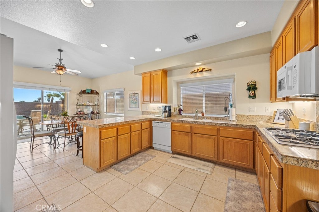 Welcome to Indian Springs, a guard-gated community, where you can enjoy golf course amenities while maintaining privacy in this beautiful pool home. This is a single-level home with 3 bedrooms 2 bathrooms and sits on a large lot and offers the perfect blend of comfort, functionality, & relaxation. Step inside to a spacious open floor plan, perfect for entertaining friends & family. A beautiful oversized bar area attached to the great room is the perfect centerpiece for the big game or movie nights! As you walk through the front door you will notice the upgraded fireplace with natural stone pillars to match. The large primary suite features an attached bath with a separate soaking tub, shower. The two guest bedrooms are good size. The low HOA dues include front landscaping, making this home even more appealing for low-maintenance living. Outside, the pool & spa are the centerpiece of the backyard oasis, where you can enjoy the beautiful weather and relax on the patio while taking in the breathtaking sunsets. For a change of pace, head over to the Indian Springs Clubhouse & Restaurant, where you can watch the golfers, savor a delicious meal, or dance the night away to live music. The community also offers two pools with BBQ areas for hosting larger gatherings, hot tubs, exercise rooms, & meeting spaces. Located just minutes from world-class golf, tennis, pickleball, shopping, dining, hiking, biking, & the Acrisure Arena for sports & entertainment, this home offers everything you need to embrace the desert lifestyle.