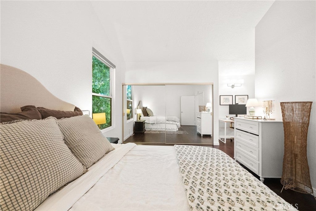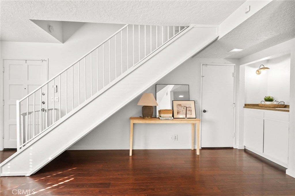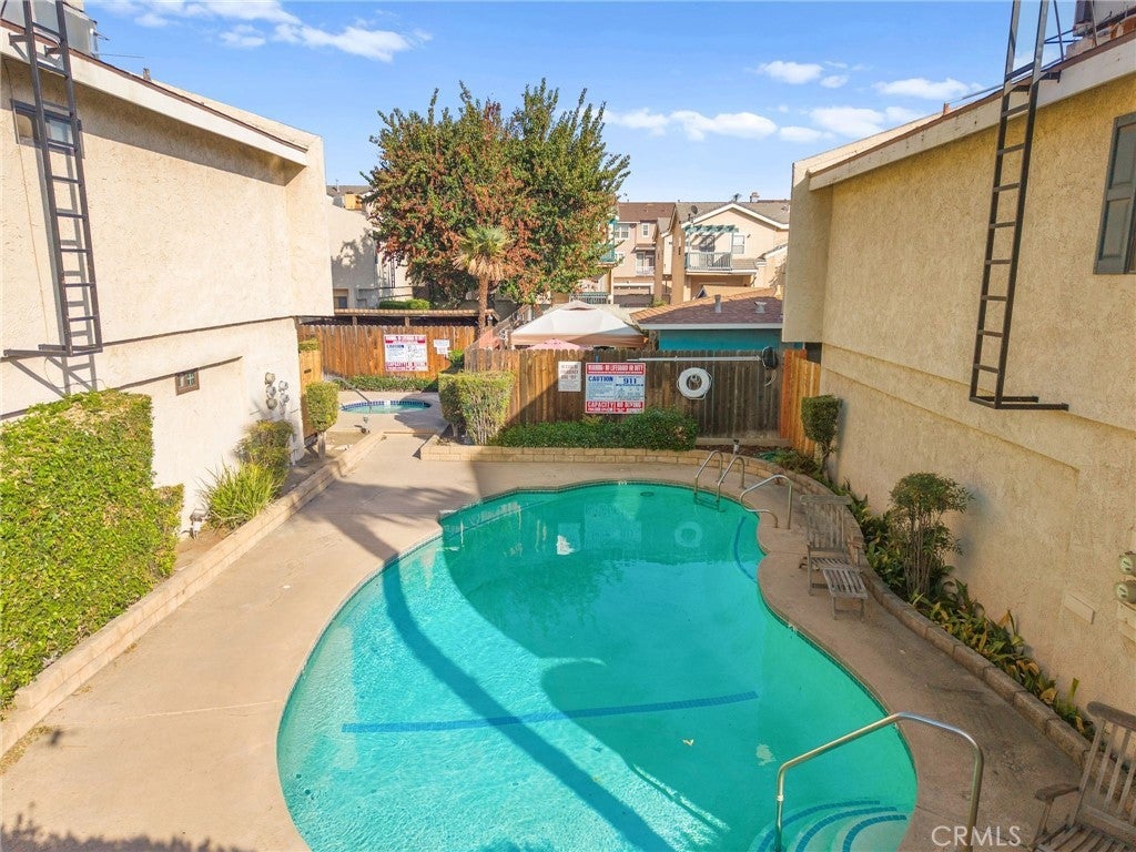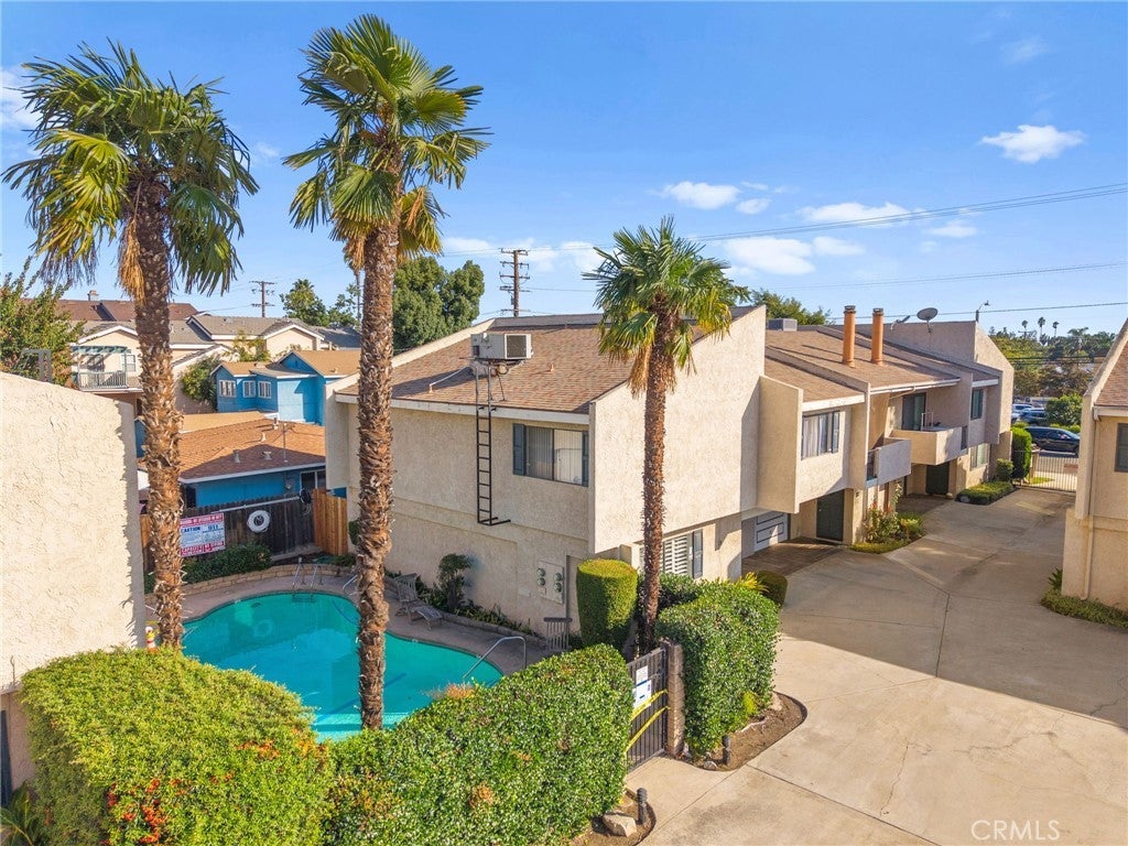 This bright, beautiful end-unit home is completely move-in ready and perfectly positioned for your vibrant Monrovia lifestyle. Step inside to a sunny, spacious living room, perfect for hosting with its convenient built-in wet bar. Beyond the living area, you'll find the updated guest powder room, and a roomy, refreshed kitchen flowing seamlessly into a dining area that opens to your own peaceful, tree-shaded patio—ideal for morning coffee or unwinding in the evenings. The second-floor features two generous bedrooms with vaulted ceilings and abundant closet space, in addition to a full bathroom. The attached garage provides the convenience of covered parking and the practicality of a washer and dryer, along with plenty of storage space. Fresh paint, beautiful flooring throughout, and newer dual-pane windows complete this turn-key space. Just steps from the door awaits the sparkling community pool and spa. With the perfect blend of comfort and charm, all while being minutes from the wonderful shops, delicious restaurants, and fun events of Old Town Monrovia, along with easy access to freeways and the Metro Gold Line, this is the perfect place for you to call home!