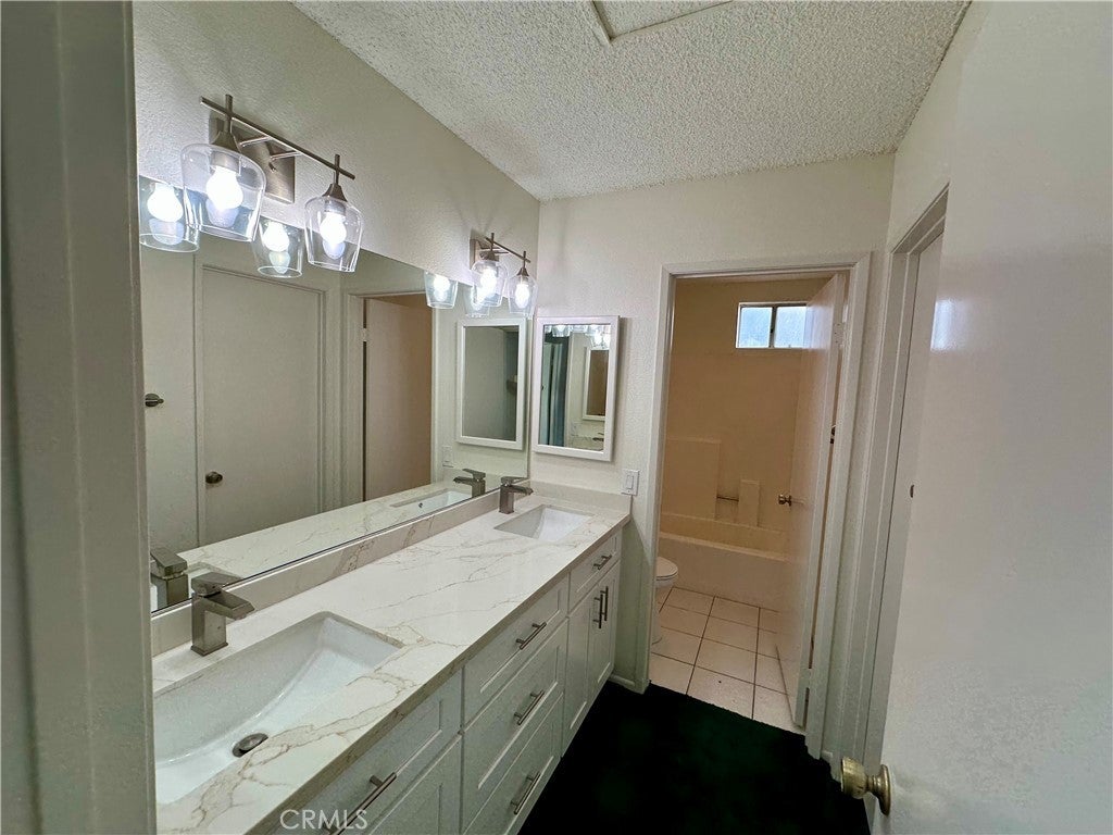 Click on link to walk this home in 3-D from your mobile device right now! This stylishly updated condo is tucked away in a quiet, gated 13-unit community and offers a clean, modern feel with well-kept flooring, fresh interior paint, updated lighting, and a remodeled kitchen featuring sleek cabinetry and counters. The home includes two bathrooms—one full upstairs and a convenient half bath downstairs for guests—both featuring all-new cabinets and faucets, with matching stone surfaces that flow beautifully through the kitchen and the storage area countertop at the top of the stairs. The layout offers generous closet and storage space, along with the rare convenience of a one-car garage plus an additional carport located right outside your front door. The building is secure and well-maintained, with a welcoming atmosphere and an on-site laundry room. Ideally located near shopping, dining, and freeway access, this home blends comfort, style, and everyday convenience.