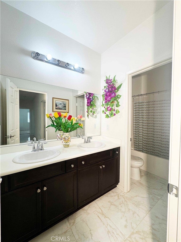 ~~~ Welcome to your Dream Home ~~~ to the peaceful and desirable community of Rancho Del Sol. Open the main door to a large hallway with high ceilings, connecting to a beautiful open plan living room, seamlessly flowing into the living, dining and kitchen areas - perfect for entertaining or relaxing with family. 5 bedrooms and 3 full bathrooms, including a guest bedroom, all bedrooms are carpeted. Spacious kitchen with large island, granite countertops, pantry. Partially upgraded tiled main floor and hallway, separate laundry room. Master bathroom has double sinks with white countertops, walk in shower, closet. Walk to the private backyard, spacious patio, you can arrange anything you like, besides there are a few guava trees, grapefruit trees and a storage shed. One block from Rancho Del Sol Park. **You can enjoy a great summer with your family** Conveniently located near top schools, Jurupa Valley Sports Park, Skyview Event Center, Vernola Family Park, as well as popular shopping areas Costco, Ontario Mills, Easy access to I-15 and I-60