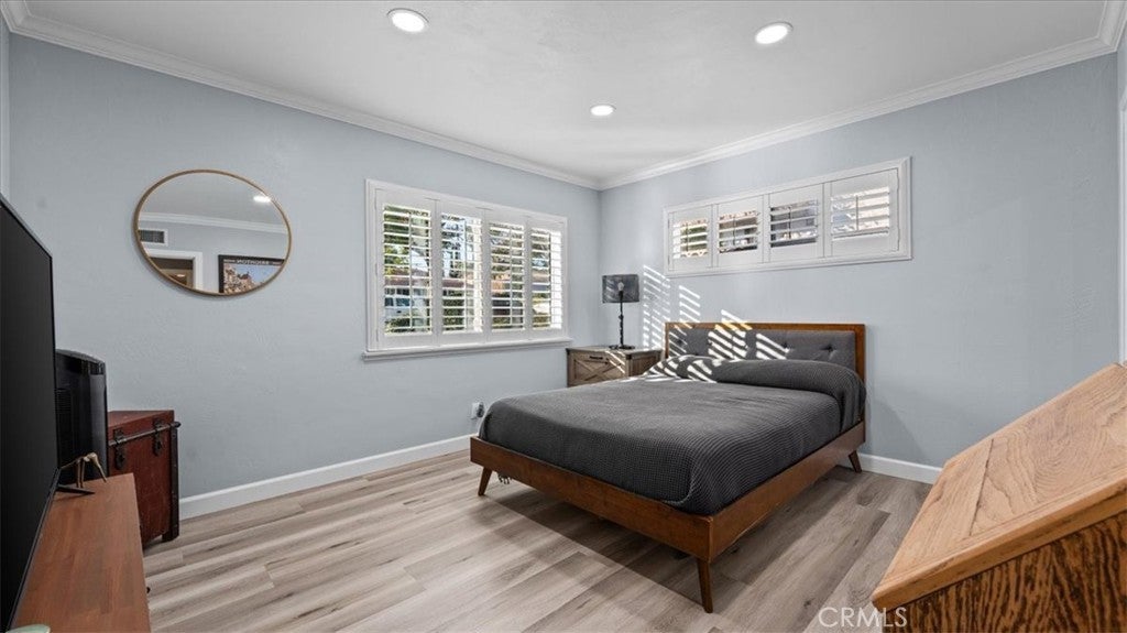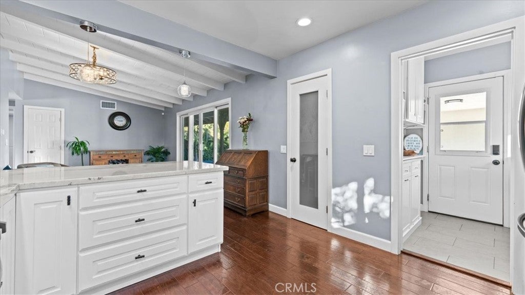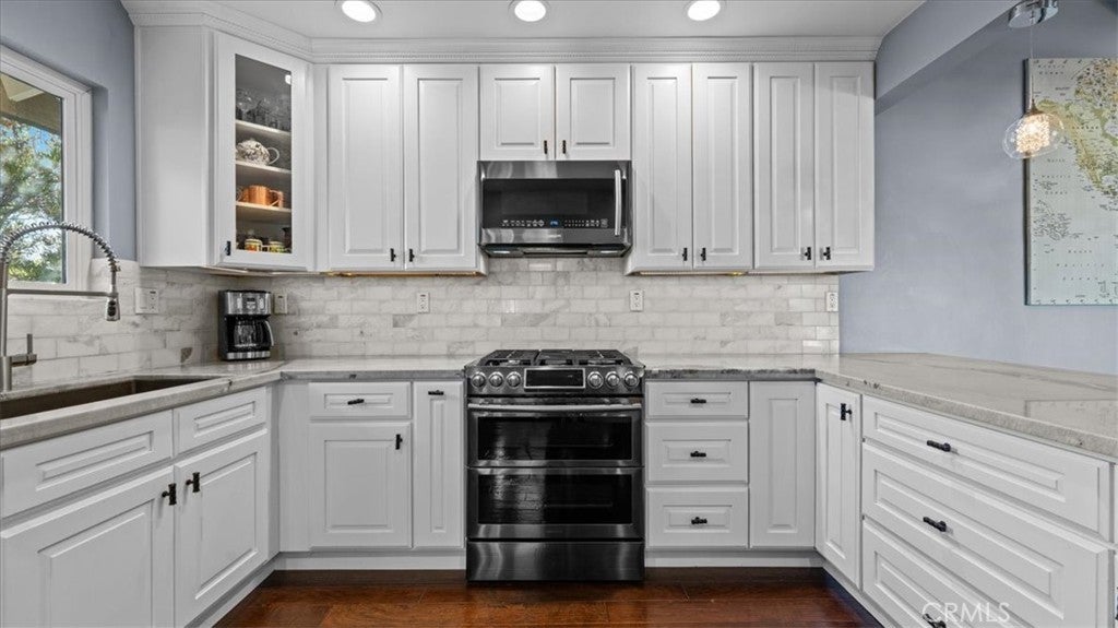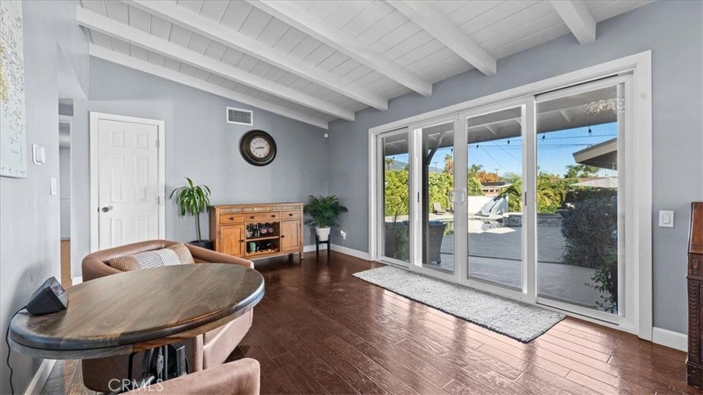 Set within the desirable foothills of Upland, this impeccably remodeled single-story residence offers a refined balance of contemporary design, thoughtful functionality, and gracious living. Every detail has been carefully curated to enhance daily life, starting with a bright, open floor plan filled with natural light that flows seamlessly from room to room. The living room serves as a warm and sophisticated gathering space, anchored by a striking fireplace and expansive windows that frame the surrounding light and views. The thoughtfully reimagined kitchen blends style and performance, featuring quartz countertops, stainless steel appliances, a walk-in pantry, and effortless connectivity to the dining area, which is ideal for both intimate meals and gracious entertaining. The primary suite is a tranquil retreat, offering privacy and comfort complemented by a beautifully appointed en-suite bath. Two additional bedrooms and a stylishly updated hall bath complete the living quarters, providing flexibility for guests, family, or a dedicated home office. Throughout the home, premium upgrades reflect the quality of craftsmanship, including engineered hardwood flooring, vinyl dual-pane windows, LED recessed lighting, custom interior shutters, a Sonos sound system, PEX plumbing, a tankless water heater, and a whole-home water softening system. The exterior has been refreshed with new paint, enhancing the home's curb appeal and reinforcing its polished presentation. Outdoors, the property unfolds into a private backyard retreat designed for both relaxation and entertaining. A sparkling pool and spa create a serene focal point, while a covered patio and built-in firepit provide inviting spaces for gathering beneath the evening sky. The detached two-car garage has been fully finished with drywall, epoxy flooring, a custom garage door, and a mini-split heating and cooling system, offering exceptional versatility for a gym, workshop, or creative studio. Dedicated RV parking adds convenience for those with an active lifestyle. Ideally located near the historic Euclid Bridle Path, award-winning schools, and with easy access to the 210 Freeway, this exceptional residence presents a rare opportunity to enjoy luxury, comfort, and location in one of Upland’s most desirable neighborhoods. This is a home that delivers elevated living at every turn.