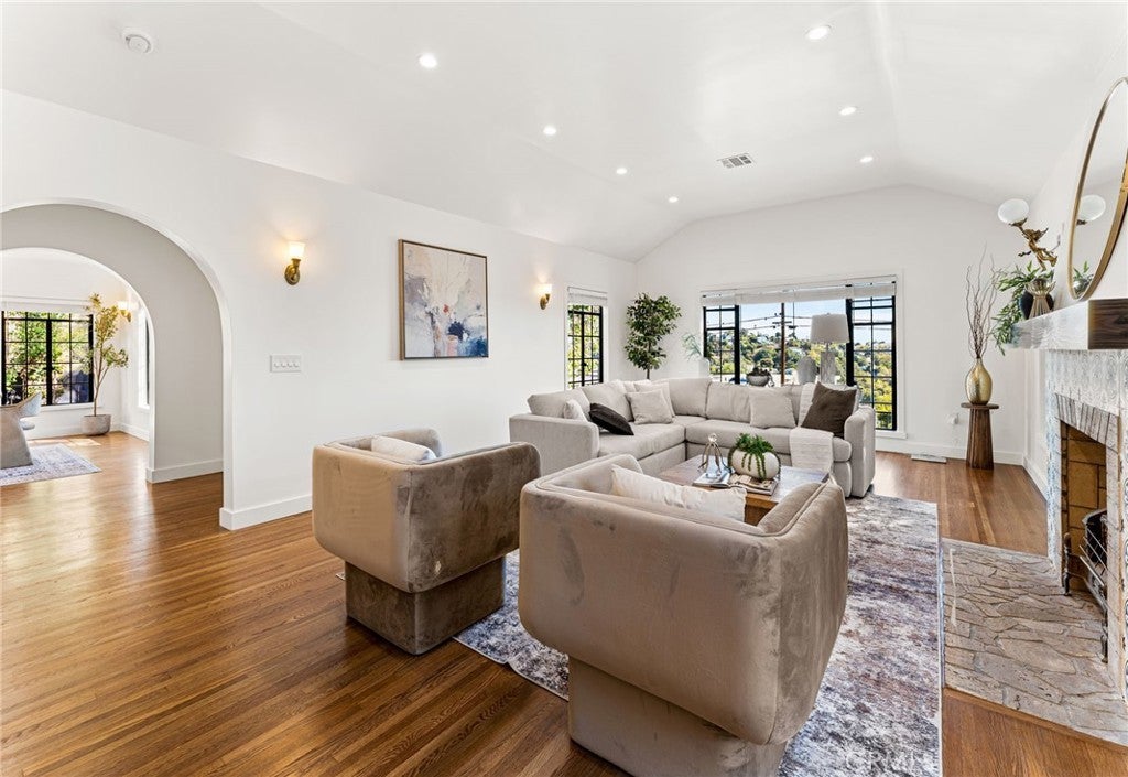Spanish Revival Reimagined | City Views | Dual Bonus Suites | Tasteful Finishes. Step into a timeless, architecture refreshed, bespoke luxury Spanish home. Nested behind tall wrought-iron gating, 1201 Montecito Dr securely rises above the street with terracotta terraces and panoramic skyline views. Inside, a sun-filled living room with vaulted ceilings and a hand tiled fireplace the layout flows through archways to a dining area crowned by a brass chandelier. The chef’s kitchen centers on a waterfall quartz island, Thermador 6 burner range, and a built in espresso/coffee machine. Brand New Appliances, finishes 9,132 sq ft large lot size, and bonus square footage make this a unique one-of-a-kind opportunity to secure your LA Dream spot! Downstairs offers two tasteful and generously sized, flexible suites with potentially private access and a walk in safe. The downstairs can offer income potential or extended-family space, alongside the hidden vault room and two-car garage, easily accessible off a paved road. Every surface in the home ranges from quartz, natural stone, marble-vein porcelain, and custom brass finishes. Minutes from Highland Park and DTLA, yet worlds apart. VALUEABLE 9,132 SQFT LOT Proximity to Dodger Stadium (2.5 mi) & Elysian Park (1.8 mi) Highland Park (shops/restaurants 2.2 miles| Downtown LA - 4.5 miles VIRTUAL TOUR: 2 VR TOUR LINKS PROVIDED FOR UPSTAIRS AND BASEMENT