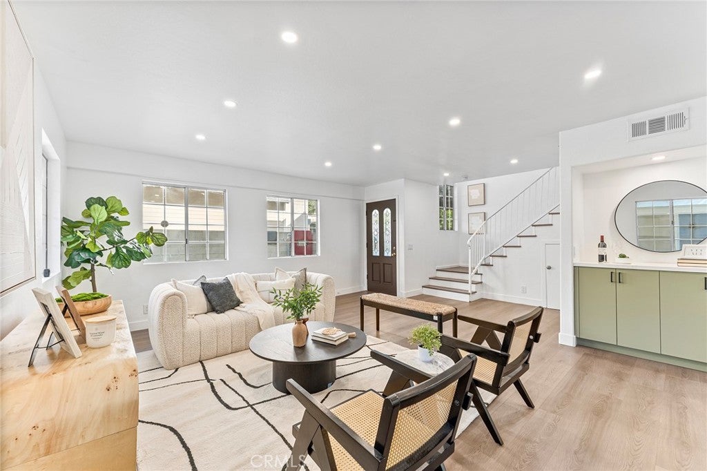 Experience contemporary Pasadena living, where modern updates, thoughtful design, and an unbeatable location come together. Step inside a light-filled open floor plan featuring recessed lighting, new flooring, and a spacious living area that flows effortlessly into the dining and kitchen spaces—perfect for both everyday comfort and entertainment. The remodeled kitchen showcases clean lines, fresh cabinetry, new stainless-steel appliances including a standalone stove and dishwasher, and a generous breakfast bar for casual dining or hosting guests. Sliding glass doors from the dining area lead to a private patio—ideal for morning coffee, relaxing afternoons, or dining al fresco. A convenient half bath completes the main level. Upstairs, a well-appointed primary suite offers a peaceful retreat with a full en suite bathroom featuring dual sinks, modern finishes, and a frameless glass shower panel. Two additional bedrooms share a stylish ¾ bath with a frameless glass panel, while one of the bedrooms includes its own private balcony perfect for enjoying the Pasadena sunshine. A dedicated laundry room is also located upstairs for added convenience. Recent improvements provide peace of mind, including a new 4-ton heat pump air conditioning system, new roofs on both the carport and the unit itself, and a one-year builder warranty against defects. Ideally situated within walking distance to the Metro Gold Line and major transit routes—and just minutes from Old Pasadena’s vibrant shopping, dining, and entertainment—this move-in ready home blends comfort, quality, and modern Pasadena living at its best.