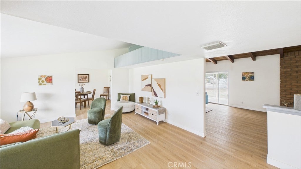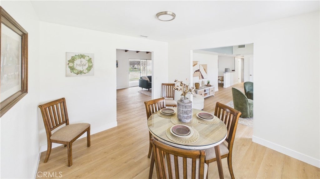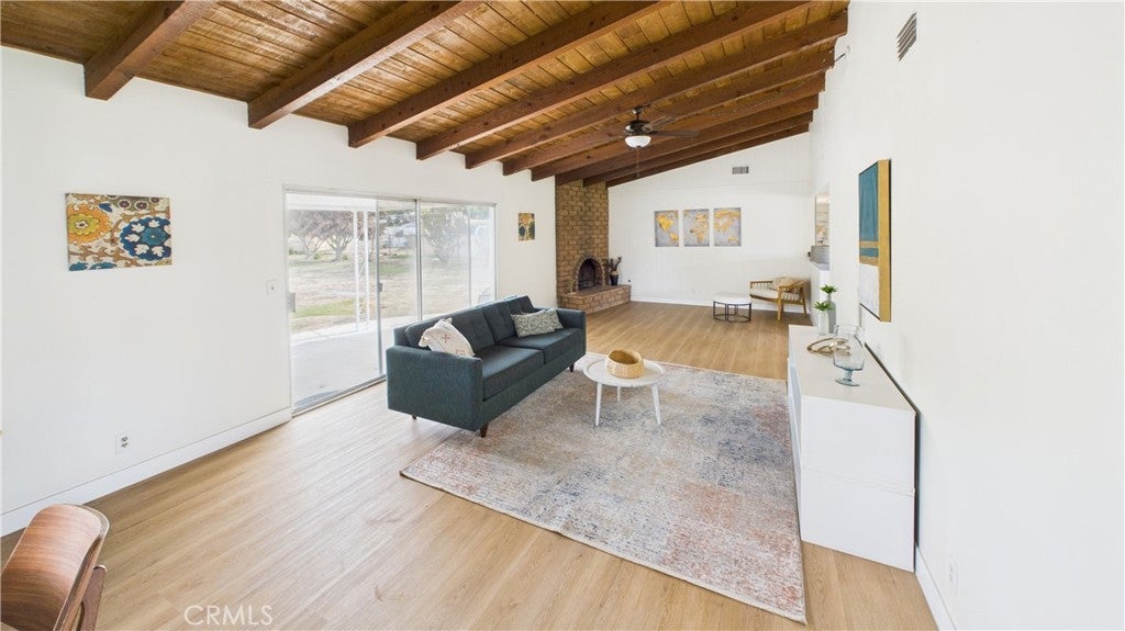 Back on the market with a price improvement! Return to market is no fault of the seller; the buyer was unable to perform. Welcome to 5726 Marlatt Street, Jurupa Valley, CA 91752! This charming single-story home, built in 1970, offers 1,891 square feet of comfortable living space on a generous 0.71-acre lot. Step inside to discover a freshly painted interior and exterior, complemented by new laminate flooring throughout. The spacious family room invites you to relax, while the adjacent dining area provides a perfect setting for gatherings. The open kitchen and living room feature vaulted ceilings, a cozy fireplace, and a large sliding door that leads to the expansive backyard. The master bedroom is a peaceful retreat with its own private bath, new vanity, and direct backyard access. Both bathrooms have been stylishly updated with brand new vanities and modern brushed nickel fixtures. Outside, you’ll find a fully insulated detached three-car garage with its own electrical system, RV parking, and plenty of fruit trees and open space for equestrian use. This home truly has it all—space, style, and a peaceful setting to call your own.