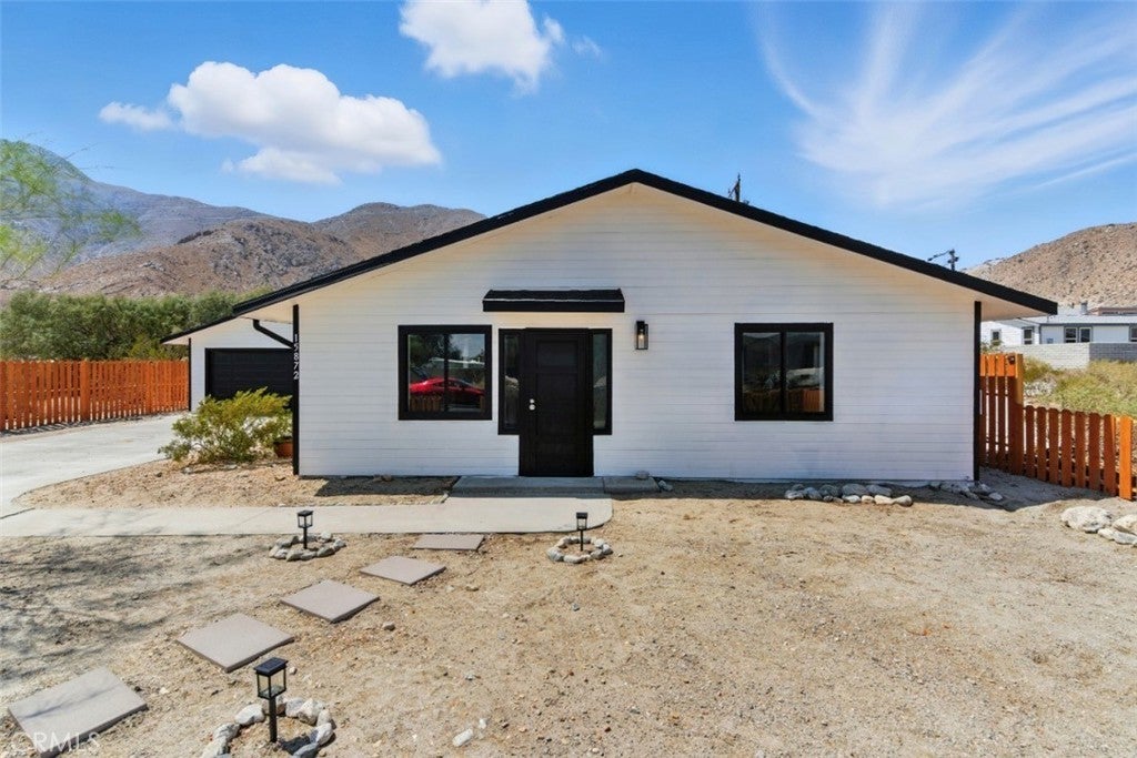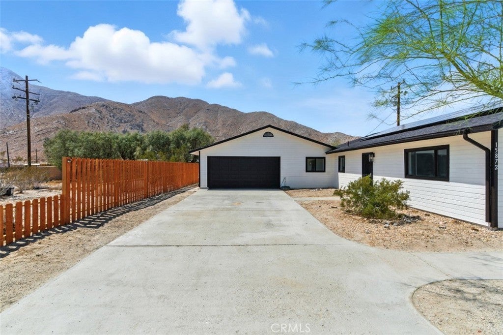 Welcome to 15872 Coral Street, a beautifully updated desert retreat nestled in the peaceful San Jacinto Cove neighborhood of Palm Springs. This single-story home offers 3 spacious bedrooms, 2 bathrooms, and approximately 1,426 square feet of open-concept living space on a generous 6,970 sq ft lot. Step inside to discover vaulted ceilings, stunning natural lighting, and a bright, airy layout that flows seamlessly from the living area to the dining and kitchen spaces—perfect for both entertaining and everyday comfort. The kitchen features sleek countertops, ample cabinetry, and a convenient breakfast bar. The primary suite provides a private escape with a large walk-in closet and an en-suite bathroom, while two additional bedrooms offer flexibility for guests, family, or a home office. Outside, enjoy a fully fenced yard with plenty of space to relax, entertain, or take in the stunning mountain views that define Palm Springs living. Built in 2001, this move-in-ready home includes central air and heat, durable flooring throughout, a 4-car garage, and timeless desert charm—all just minutes from downtown Palm Springs dining, shopping, attractions, and the iconic Palm Springs Aerial Tramway.