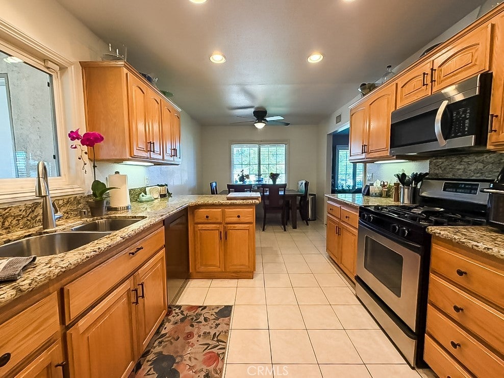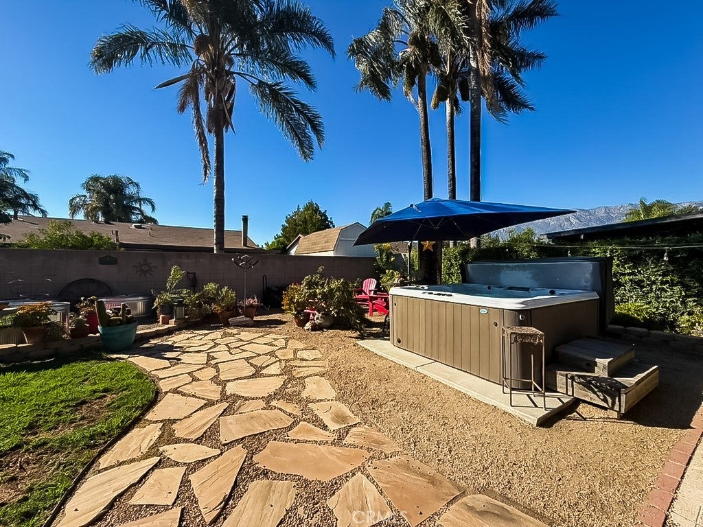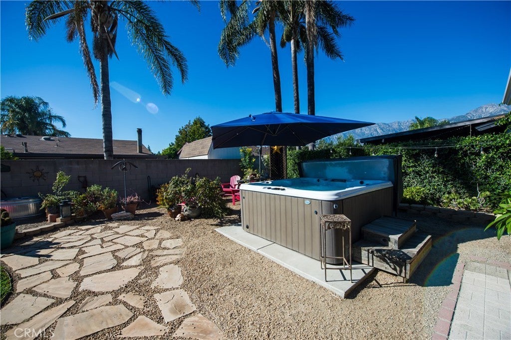 Welcome home to 7964 Elmhurst in beautiful Rancho Cucamonga! This gorgeous, move-in ready home has been thoughtfully upgraded throughout. The remodeled kitchen features granite countertops, upgraded cabinetry, and stainless steel appliances—perfect for cooking and entertaining. Enjoy elegant wood and tile flooring, along with beautifully remodeled bathrooms showcasing granite and custom tile finishes. Ceiling fans throughout. Stay cool with central air conditioning, and take advantage of the convenience of being wired for an electric car. Step outside to a private backyard oasis with a spacious covered patio that feels like an outdoor living room and an above-ground hot tub for relaxing under the stars. The large lot offers endless possibilities to make it your own. Located near great schools, shopping, and dining, this stunning home has it all—style, comfort, and location! Space for RV on the North side of the home approximately 10' x 30-40'