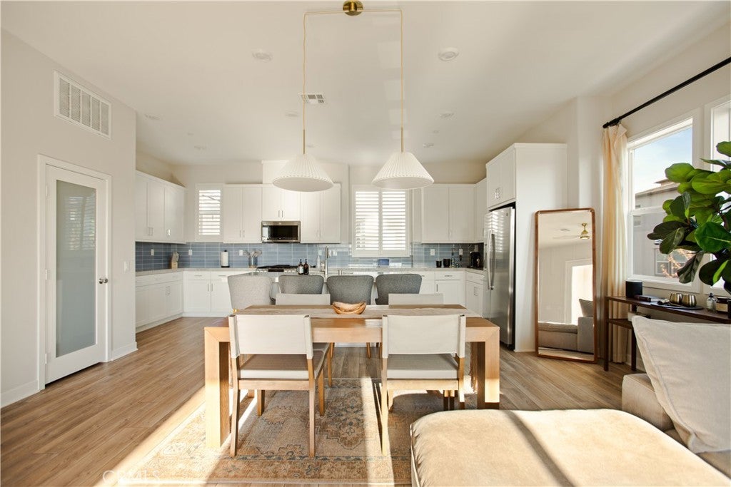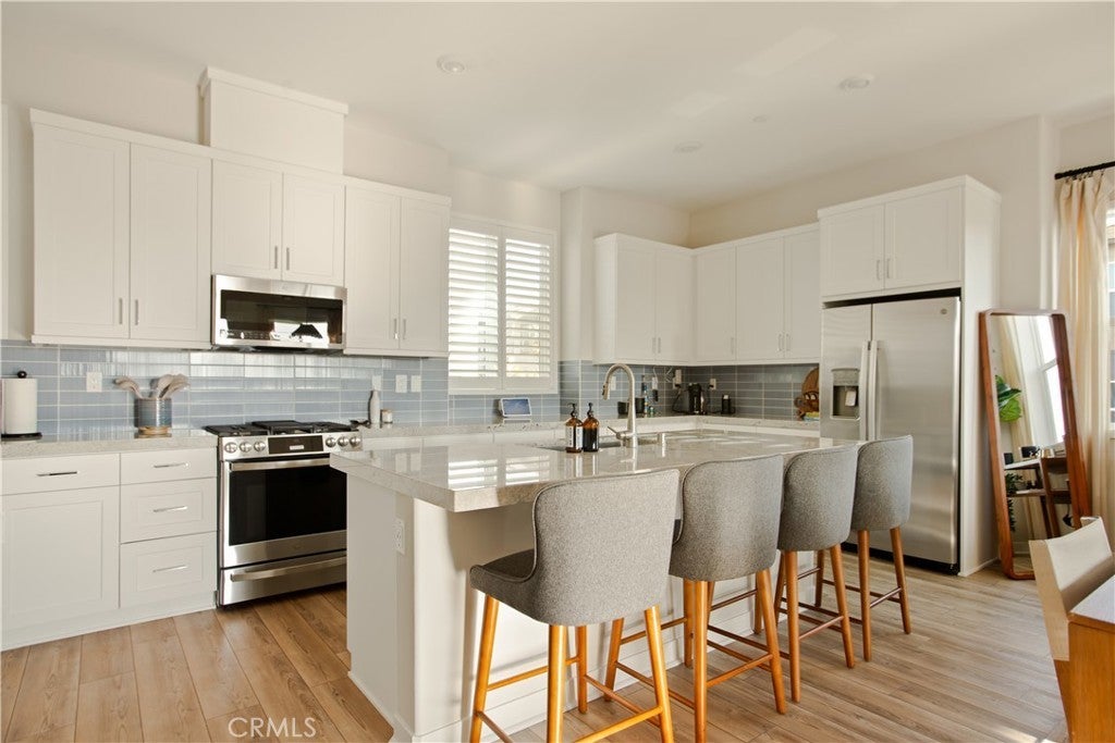 Former Model Home with PAID OFF SOLAR, showcasing thousands of dollars in designer-selected upgrades throughout. Perfectly positioned in one of Solis Park's most desirable locations with no front neighbors and unobstructed park and sunset views, this residence offers elevated living in every detail. The interior features custom designer flooring, upgraded cabinetry, premium lighting, sleek window treatments, and a gourmet chef's kitchen with high-end stainless steel appliances and an oversized island ideal for entertaining. The open-concept living space flows seamlessly for everyday comfort and hosting. Upstairs, the primary suite captures peaceful park views and evening light, complete with a spacious walk-in closet and a beautifully upgraded en-suite bathroom with dual vanities and an oversized glass shower. Additional highlights include upstairs laundry, smart home features, and an attached 2-car garage. Residents enjoy access to the brand-new Great Park amenities-resort-style pools, clubhouses, playgrounds, sports courts, and miles of walking and biking trails within the award-winning Irvine Unified School District. Portola High school is walking distance and close by elementary schools. A rare opportunity to own a former model home with PAID OFF solar and extensive upgrades