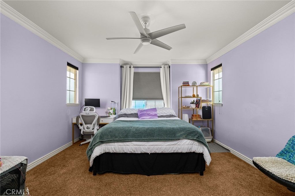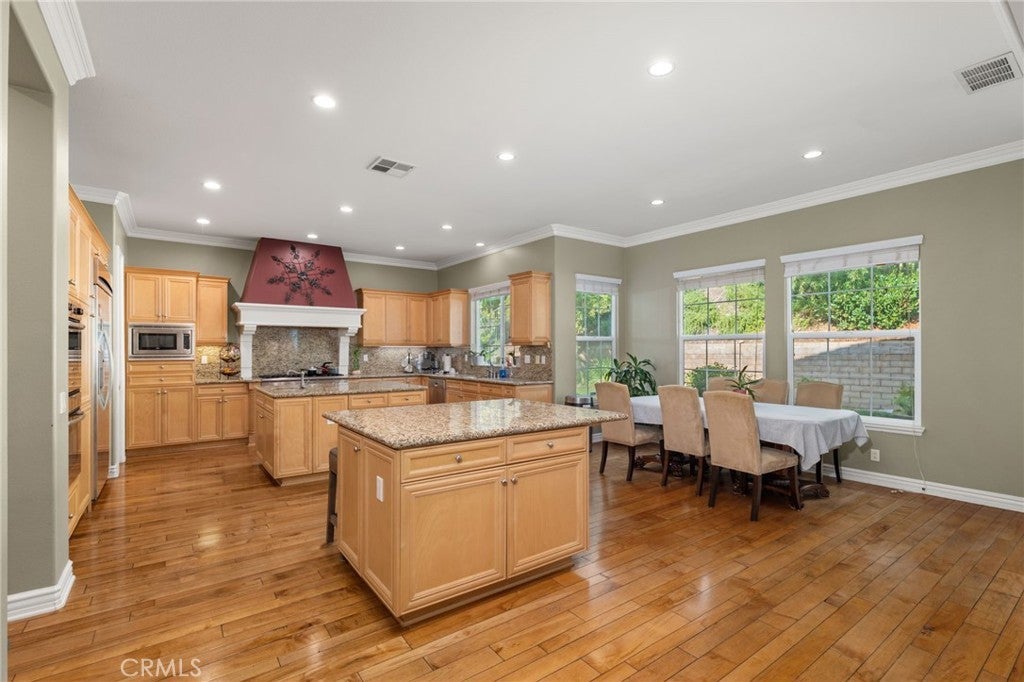 Welcome to 13812 Breeders Cup Drive — Luxury Living in the Foothills of Rancho Cucamonga. Tucked away in the prestigious foothills of Rancho Cucamonga, this remarkable 6-bedroom, 6-bathroom estate offers a perfect blend of elegance, comfort, and versatility. Designed for modern living, the spacious layout easily accommodates multi-generational households while maintaining a sense of warmth and privacy. From its manicured landscaping to the inviting front porch and beautiful brick-and-stucco exterior, every detail of this home exudes curb appeal. Step inside to a grand foyer with custom tray ceilings, hardwood flooring, and exquisite crown molding — a true showcase of craftsmanship and style. A private mother-in-law suite with its own private entrance, living area, bedroom, and bath provides the ideal setup for guests or extended family. Expansive living spaces throughout the main level are filled with natural light and accented by arched walkways, rich wood tones, and a dramatic staircase that anchors the heart of the home. The chef’s kitchen opens to a spacious family room, creating an effortless flow for entertaining or casual gatherings. Each bedroom is comfortably sized, while the bathrooms are thoughtfully updated with granite countertops, designer tile, and quality fixtures. Outdoors, enjoy a peaceful retreat surrounded by lush landscaping — perfect for morning coffee, weekend barbecues, or quiet evenings under the stars. Ideally situated near award-winning schools, scenic walking trails, and premier shopping and dining, this home captures the best of Rancho Cucamonga living — where sophistication meets everyday comfort.