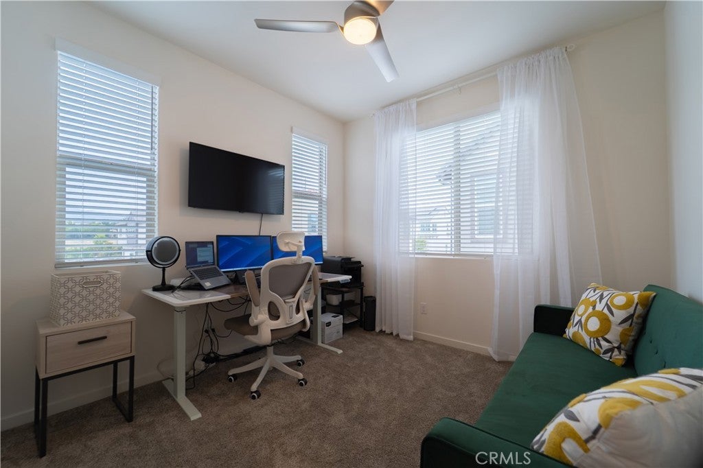 Welcome to this stunning, immaculate turnkey home located in the desirable Shady Trails community in Fontana, CA. THE BEST PART OF THE HOA FEE IS THE ZERO DEDUCTIBLE FIRE & HAZARD INSURANCE POLICY IS INCLUDED WITH THE SAME FEE, not to mention all of the resort style amenities like the full-size gym, meeting rooms, play parks, cafe, bar be ques, outdoor, fireplaces, pool, tennis, basketball and pickleball courts. This modern home, built in 2023, offers 1,475 square feet of living space with 3 bedrooms and 2 bathrooms, making it perfect for families or individuals seeking comfort and style. NO SHARED WALLS with neighbors! This home showcases upgraded flooring, window treatments, solid surface quartz countertops, stainless steel appliances, a custom backsplash, and custom built-ins. A tankless water heater and a "smart home" system add convenience and efficiency. The property includes a leased solar system, ensuring energy savings and environmental friendliness. The open floor plan offers spacious living and dining areas are complemented by a covered deck, perfect for entertaining or relaxing outdoors. The kitchen is equipped with modern stainless-steel appliances, including a range/oven, microwave, dishwasher, and disposal. Three well-appointed bedrooms with ample space and natural light. The primary bedroom offers large walk-in closets and an "en suite" spa like bathroom. Both full bathrooms have upgraded finishes and fixtures. A laundry room can be located upstairs and a two-car attached garage offers direct access to your fist floor entry. Enjoy the luxury resort style living year-round. Shady Trails offers resort-style living with access to a pool, spa/hot tub, gym/exercise room, clubhouse, barbecue areas, picnic area, playgrounds, dog park, sport courts, business center, free meeting and event rooms and security services. Enjoy the luxury resort style living year-round. Conveniently located near employment centers, shopping, schools, public transportation, and recreational facilities. The neighborhood features a suburban setting with stable property values and a balanced demand/supply ratio. This home is in excellent condition, with no deferred maintenance, and conforms to the neighborhood's style and quality. With its modern upgrades, energy-efficient features, and access to premium community amenities, this property is a rare find in Fontana. Don't miss the opportunity to own this exceptional home in a vibrant and well-maintained community.