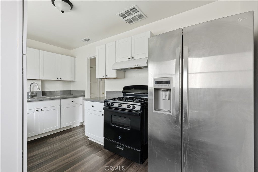 Welcome to this Modern Interior Style Home located in Barstow! This charming property features a kitchen that flows seamlessly into the living room, creating an open and connected space perfect for everyday living. The kitchen is equipped with modern appliances, including a stove and refrigerator. Crisp white cabinets provide a clean, fresh aesthetic, complemented by attractive laminate countertops. The inviting living room includes a cozy fireplace that adds warmth and ambiance. The home offers three bedrooms plus an additional bedroom (unpermitted), each featuring neutral-colored walls and beautiful wood flooring throughout. All bedrooms include a closet and a window, ensuring plenty of natural light and ventilation. The centrally located bathroom serves all bedrooms and features easy-to-maintain tile flooring, along with a standard bathtub and shower combination. Outside, the backyard offers a peaceful retreat enhanced by fruit trees, including peach, grapevines, and a pomegranate tree—perfect for relaxation or gardening. A sprinkler system services both the front and back yards, keeping the landscape lush and green year-round. Close to freeway 15