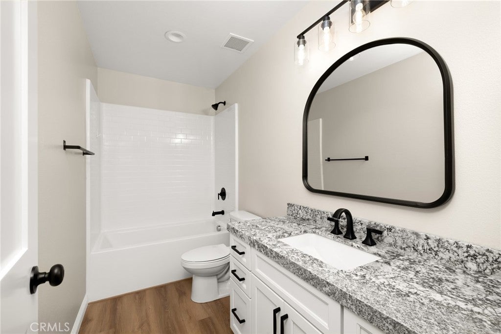 A newly renovated 2019-built and recently updated single-family home nestled on a peaceful cul-de-sac in a family-friendly neighborhood. This upgraded 3-bedroom, 2.5-bath residence offers 1,725 sq ft of modern living space on a generous 5,342 sq ft lot, with a standout larger-than-average backyard (see photos from above) perfect for entertaining, barbecues, or simply enjoying outdoor moments with loved ones. $61 monthly SOLAR lease covers the current electric bill(s). Step inside to experience a complete interior transformation with brand-new, high-end improvements throughout. All-new interior paint in a fresh, contemporary palette creates a bright, welcoming atmosphere that feels brand-new because a great deal of the home is exactly that. Upgraded solid-core 2-panel shaker doors with new door knobs and handles for a sleek, modern touch, enhanced durability, and superior sound insulation. All-new baseboards and door casings deliver crisp, clean lines from room to room, tying the design together. Luxurious flooring upgrades: Diamond Perspective Premium Laminate flows seamlessly through the downstairs, bathrooms, and laundry—durable, stylish, and easy to maintain. The heart of the home shines with fully remodeled bathrooms featuring: Shenandoah soft-close cabinetry — for style, function, and quiet, smooth operation. Elegant Granite Sonata Honed countertops and all-new sinks, fixtures, mirrors. The gourmet kitchen boasts Granite Silver Falls countertops, paired with the same high-quality Shenandoah cabinetry, making meal prep a joy in a space designed for both beauty and efficiency. Additional upgrades include a newly equipped attached garage with upgraded sensors for enhanced safety, security, and convenience. The open-concept layout is ideal for family gatherings or hosting friends, with generously sized bedrooms—including a walk-in closet for ample storage—and a design that maximizes natural light and livability. Location is everything: just minutes from grocery stores, restaurants, and major freeways, yet tucked away in a quiet, low-traffic enclave. Zoned for Mountain View Elementary, strong community ratings, and a Family Friendly neighborhood. Move-in ready and turnkey—this is more than a house; it’s a fully redone, modern sanctuary with every major interior element newly upgraded. Don’t miss this rare blend of newer construction paired with thoughtful high-end improvements and prime location!