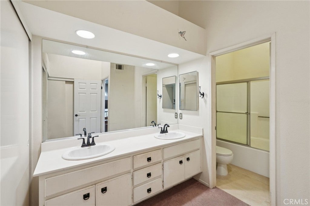 3 bed, 2.5 bath home located in the Sonrisa community is ready for it's new owner. The interior offers soaring ceilings with lots of natural light, newer interior paint, newer interior doors, and all new dual pane windows and sliding door installed in 2022. The living room opens to the dining area with wainscoting and a slider to the private, low maintenance, fully fenced, paved back patio oasis with views of nice surrounding trees and landscaping - a great space for relaxing and entertaining guests. The kitchen has a beautiful coffered ceiling, white cabinetry with lots of storage space, new backsplash, and a new microwave installed in 2023. The kitchen also features direct access to the attached Garage! A half bathroom completes the main floor. All bedrooms are located on the 2nd floor including the large primary suite with private bistro balcony offering backyard and citylight views. The primary suite also has 2 large closets as well as a private ensuite with dual sinks, and there is a full-size hall bathroom with newer tile for the 2 secondary bedrooms to share. The 2-Car Garage has built-in shelving, and the home features ADT Alarms with cameras. Residents also get to enjoy a community pool and spa, and this home is conveniently located near many shopping and dining options as well as schools, and not far from the 71 and 60 Fwys! This charming home is all set for its new owner to create a future full of cherished moments!