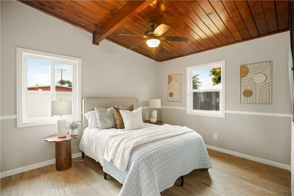 • Interior FeaturesCeiling Fan(s), Eat-in Kitchen, Quartz Counters, Recessed Lighting, All Bedrooms Down, Beamed Ceilings