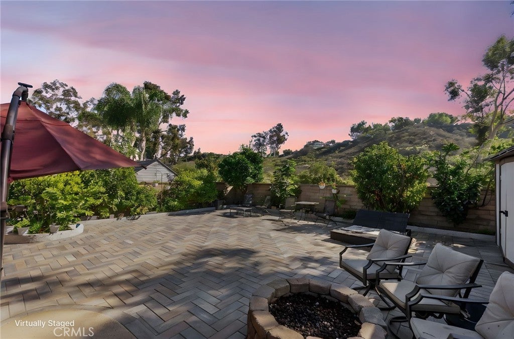 Welcome to 27423 Padilla! a charming single-level home tucked into one of Mission Viejo’s most desirable neighborhoods. This beautifully maintained 3-bedroom, 2-bath residence sits on a private 5,160 sq ft lot and delivers the perfect blend of comfort, style, and low-maintenance living. From the moment you arrive, you're greeted by a stunning paver-lined driveway that sets the tone for the quality and care inside. Step out back and you’ll find even more professionally installed pavers stretching across the yard, creating a clean, elegant outdoor space with unobstructed views of the surrounding hills. Several Fruit Trees & No neighbors staring down into your yard! Inside, the home features a practical single-story layout with a cozy fireplace, central heating and cooling, dual-pane windows, and an attached 2-car garage. The kitchen includes solid cabinetry and direct access to the yard, ideal for morning coffee or easy outdoor dining. The primary suite offers its own private bath, and all three bedrooms are well-sized with great natural light. BONUS VALUE: This home comes equipped with solar panels, helping keep monthly utility costs lower and offering long-term savings for the next owner. Whether you're a first-time buyer , someone ready to downsize into a manageable single-level home, or an investor seeking a solid long-term asset this property checks all the boxes. Located moments from top-rated Saddleback Valley schools, shopping, dining, parks, and Lake Mission Viejo amenities (think beaches, boating, concerts, fireworks, and year-round recreation). SCHEDULE YOUR APPOINTMENT TODAY!
