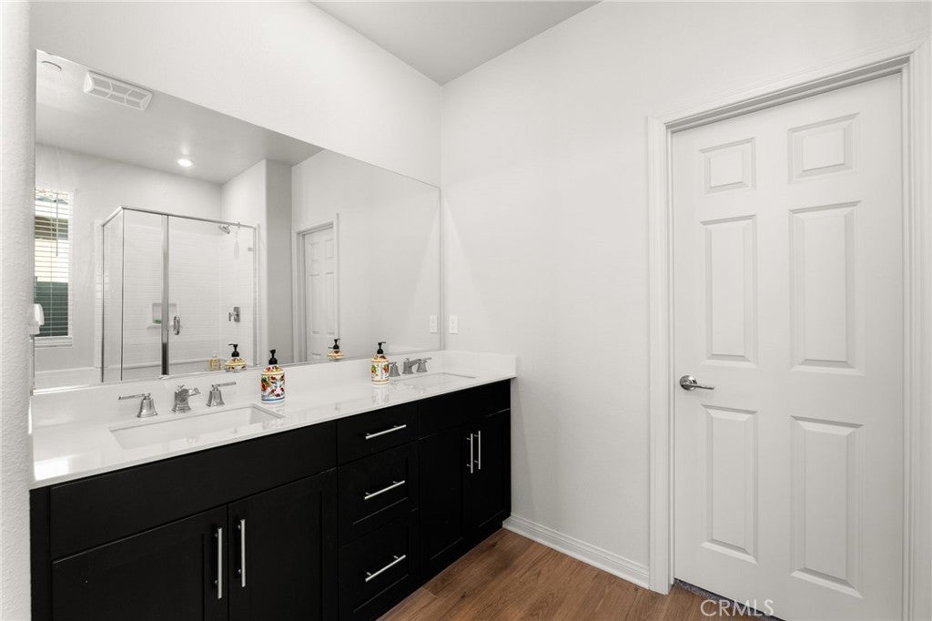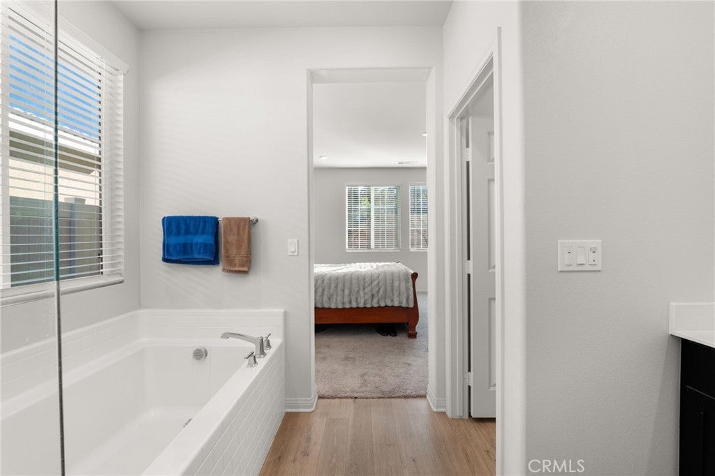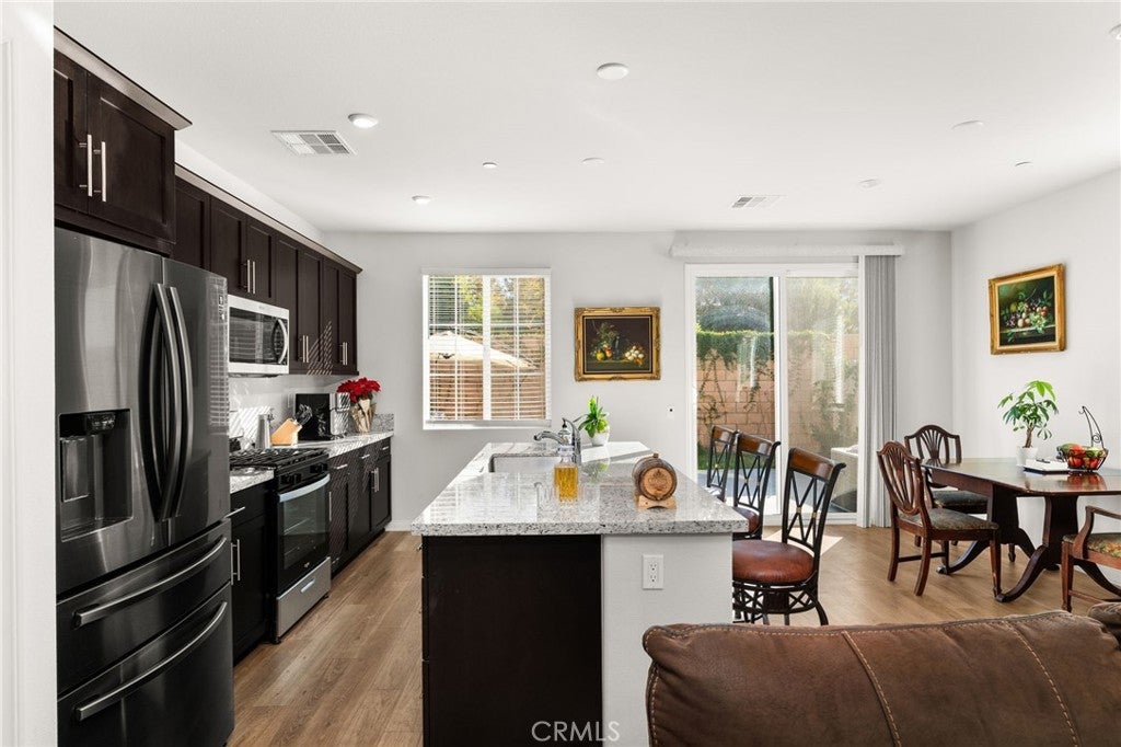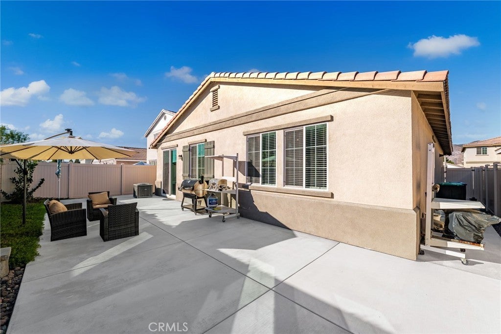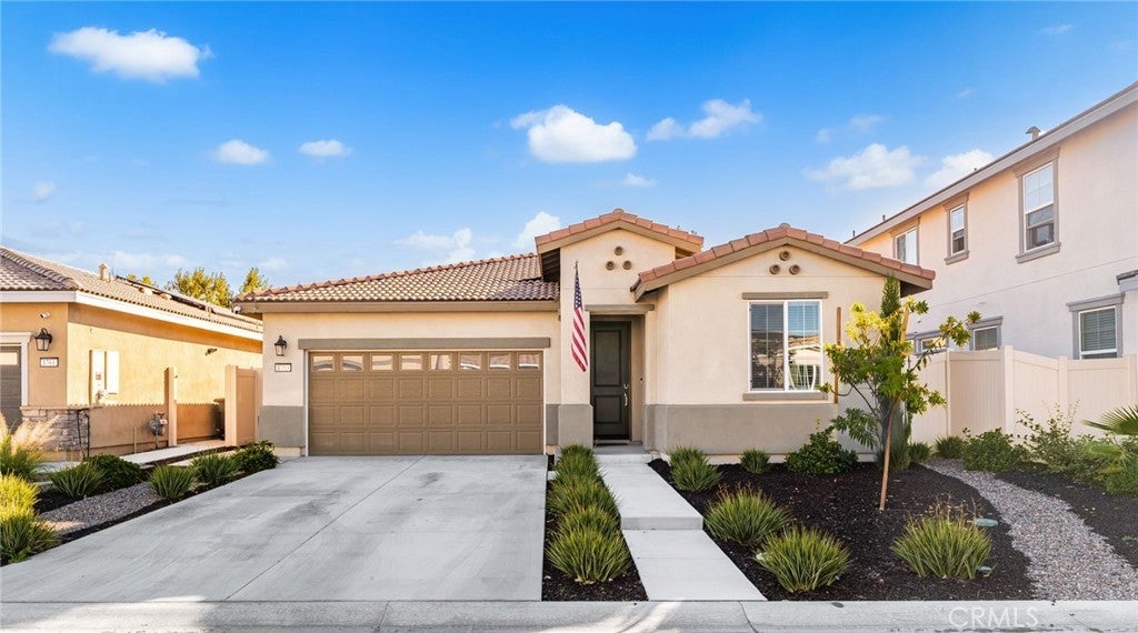 Your Dream Home awaits at Mountain Bridge North. Welcome to this beautiful single-story Plan One home in Mountain Bridge North. With solar included, this home offers energy-efficient living from day one. Inside, you’ll find a thoughtfully designed layout featuring two generous secondary bedrooms, a convenient laundry room, and an open-concept living area that blends comfort and functionality. The stylish kitchen includes a large center island, dark shaker cabinets, granite countertops, and durable LVP flooring—ideal for both everyday use and entertaining. The private primary suite offers a peaceful retreat with a spacious walk-in closet and a deluxe bathroom complete with dual sinks, a soaking tub, and a walk-in shower. This home is also equipped with Century Home Connect smart home features, including a Schlage electronic front door lock, IQ Panel, Ecobee smart thermostat, and Eero wireless router for modern convenience and peace of mind. Outside, the property has been enhanced with new concrete poured in the back and side yards, offering low-maintenance, clean, and functional outdoor living spaces. The front yard features drought-resistant landscaping designed to be both attractive and easy to maintain—perfect for California’s climate. Priced to sell and loaded with upgrades, this home is a fantastic opportunity you don’t want to miss. Schedule your tour today and experience the comfort of smart, efficient living! With a LOW HOA, residents of Mountain Bridge North enjoy access to private community amenities, including a tot lot, open green spaces with shaded seating, an outdoor workout station, picnic trellis, and BBQ area—everything you need to enjoy the outdoors close to home.