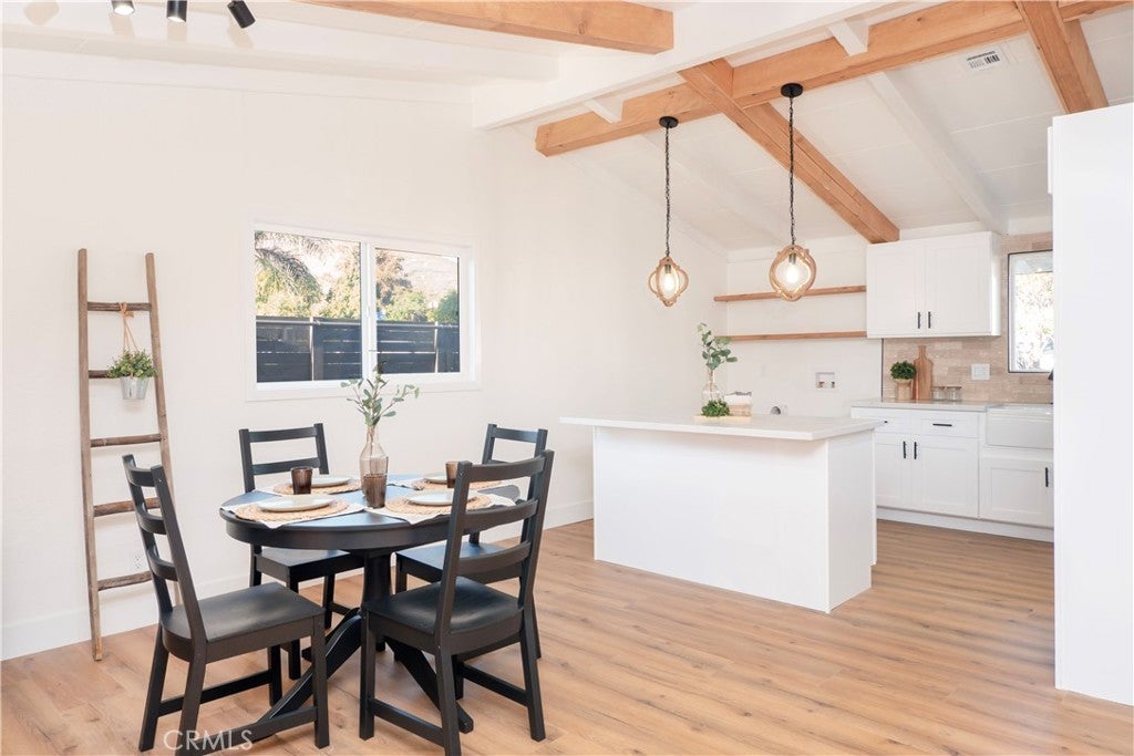 Fairplex Pocket Location! This stunning home OFFERS: the perfect blend of comfort, modern style, and farmhouse warmth.=As you step in, you’re welcomed by a bright open floor plan with high ceilings, and a spacious living area enhanced by oak wood color beams, oak accents, and a cozy fireplace. =The remodeled kitchen features clean modern finishes and plenty of room for gatherings.=The home shows 3 bedrooms and 2 baths in person (public record reflects 4), with fully remodeled bathrooms that feel fresh and inviting.=The front offers great curb appeal with a long driveway and detached garage, providing space for multiple vehicles and possible RV parking.=In the backyard, imagine your private retreat with a large open yard perfect for hosting, relaxing, and creating your ideal outdoor space.=Beautifully remodeled inside and out, this home shines with its modern farmhouse character and thoughtful oak touches.=Move-in ready with charm, and comfort, don’t miss it!