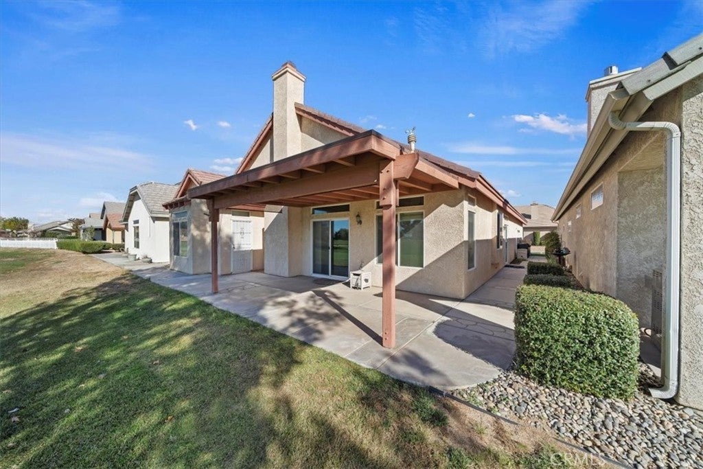 Just in Time for the Holidays! This pristine home is situated within the desirable 55+ gated community of Wyndham Rose. Located on the golf course with sensational views of the greens and gorgeous sunsets, this home shows a true PRIDE-OF-OWNERSHIP! You will enter through your own private courtyard and discover an upgraded kitchen that is sure to bring out the chef in you! Replete with granite counter tops, stainless steel appliances (including an upgraded refrigerator), and the kitchen faucet can be operated by motion detection. Ideally located right off the kitchen, the spacious laundry room offers extra cabinetry. The separate dining room leads to the beautiful back patio and connects to a cozy living room with a warm fireplace. The primary suite has been freshly painted and offers more of the gorgeous views of the golf course, dual sinks in the bathroom, a separate shower, and a jetted tub that is perfect for relaxing. Large 2nd bedroom with walk-in closet, and the 3rd bedroom has laminate flooring with additional cabinetry. The 2-car garage is adequately sized and features a newer garage door opener and water heater. Conveniently located near a variety of shopping options and dining establishments in the Jess Ranch Shopping Center. You will surely want to consider this property as your home, so act fast while this opportunity remains! Schedule your appointment today.