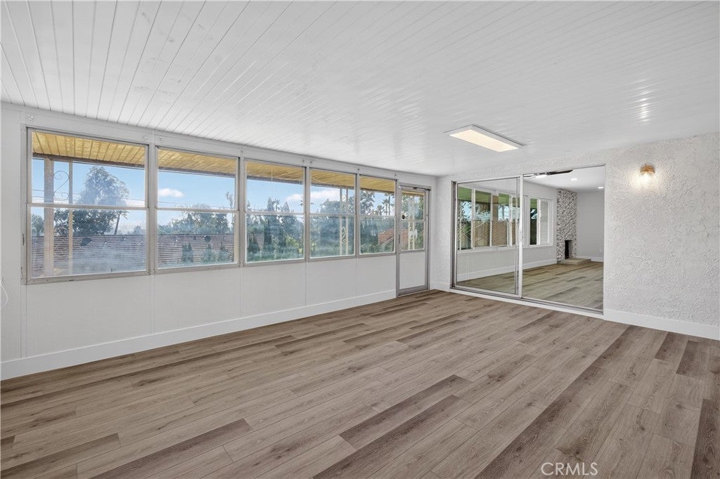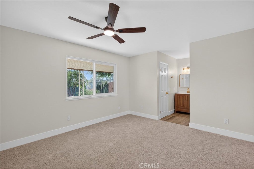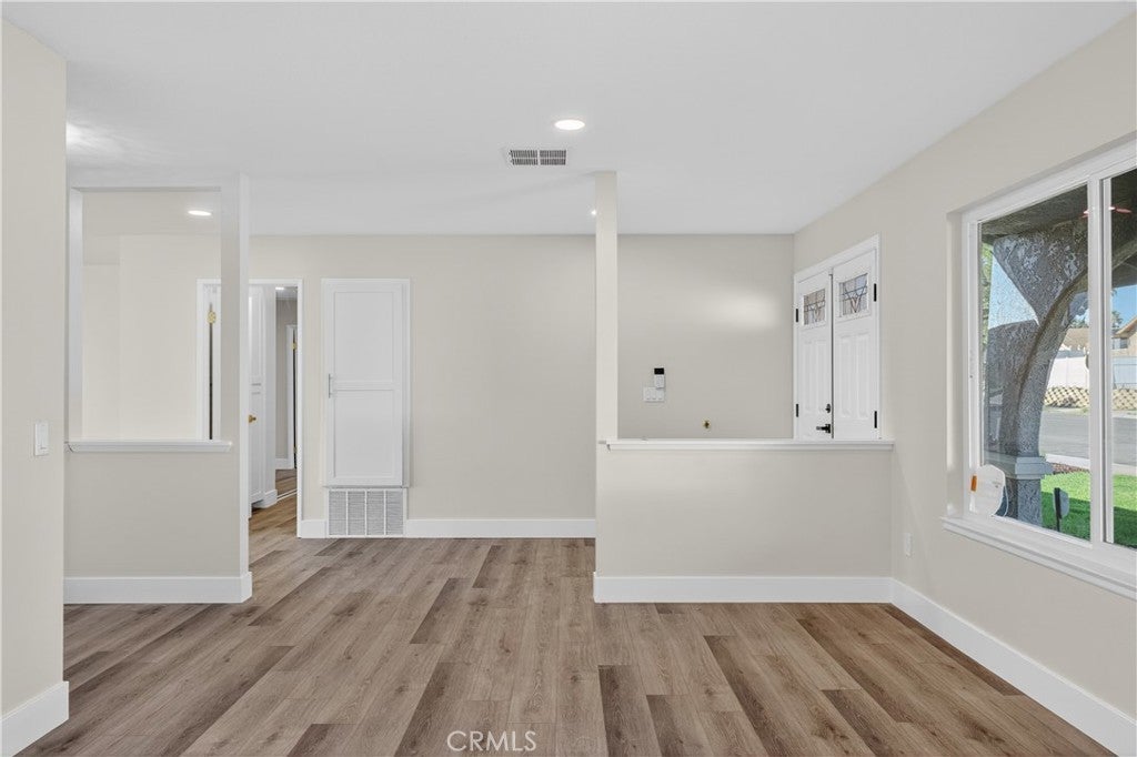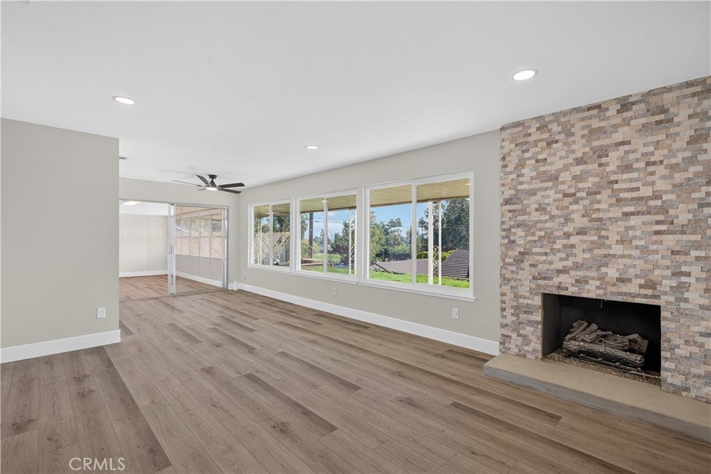 Welcome to this beautifully renovated single-story home perched above the Jurupa Hills Golf Course with expansive views overlooking Riverside. Offering 1,536 sq ft, this 3-bedroom, 2-bath residence sits on an approximately 8,000 sq ft lot and delivers modern upgrades, an open layout, and inviting spaces throughout. Step inside and be greeted by a stylish wet bar with a stunning backsplash and display shelving, setting the tone for a home designed for both comfort and entertaining. The spacious living area features a warm, beautifully finished fireplace and hearth—the perfect gathering spot to welcome family and guests. The open floor plan is enhanced by large new windows that flood the home with natural light. Upgrades include new flooring, fresh interior paint, new baseboards, new doors, and new dual-pane windows throughout. The fully redesigned kitchen showcases new cabinetry, quartz countertops, stainless-steel appliances, and a clean, modern design. Both bathrooms have been completely remodeled with contemporary finishes. All bedrooms include 8-foot mirrored closet doors, adding style and expanded visual space. The elevated lot provides stunning panoramic views—golf course greens, hillside scenes, and sparkling Riverside city lights. The backyard is a blank canvas with ample space to entertain, garden, or customize to your vision. Located just minutes from shopping, dining, schools, and easy freeway access, this turnkey home blends modern living with incredible views and a central Jurupa Valley location. A beautifully finished, truly move-in-ready home—this one is a must-see.